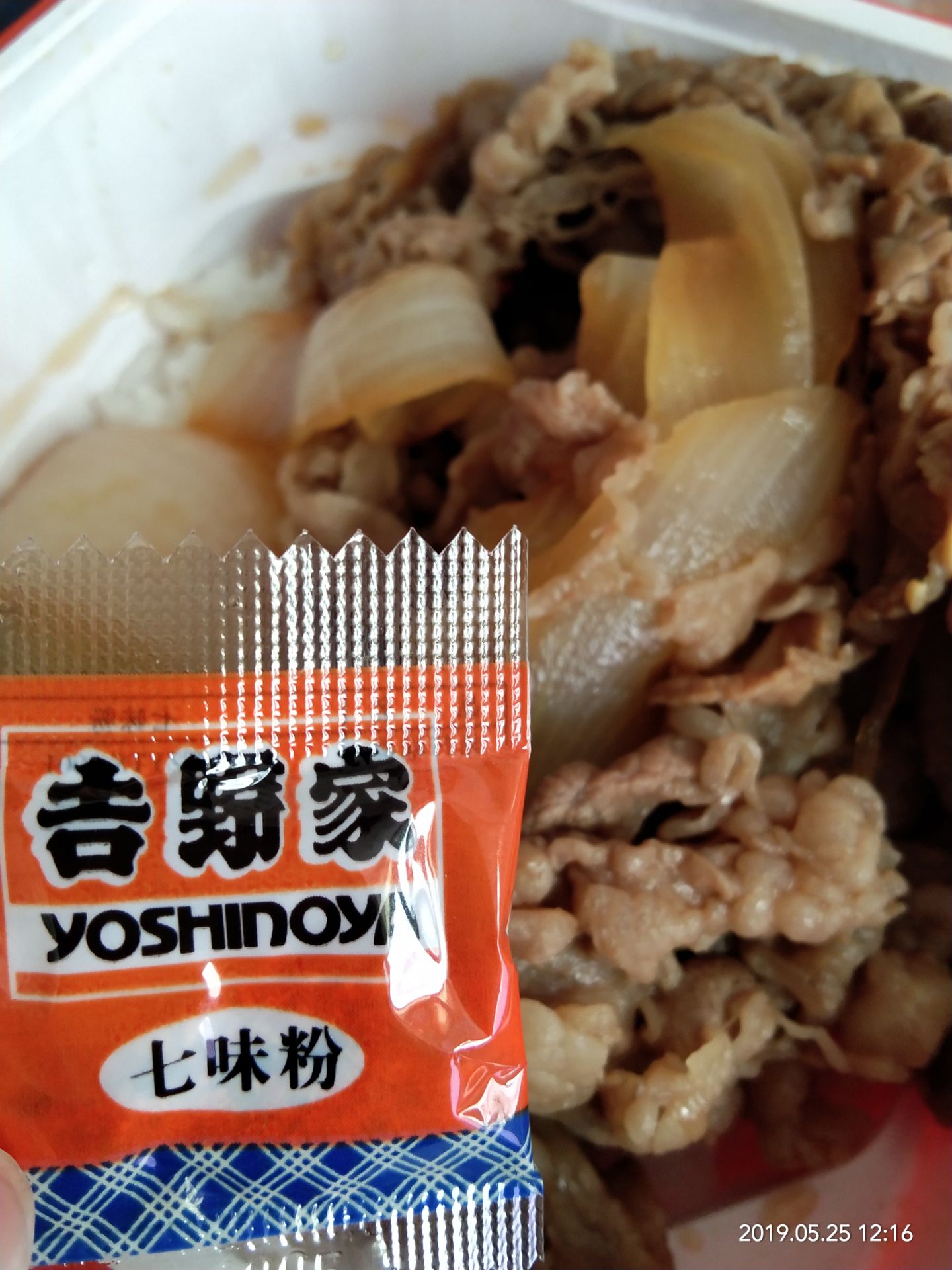 某次的外卖,孩子自己叫的,说是要的大份哒~从不知这附近还有吉野家,有点小惊喜,孩子喜欢吃这种的饭,哈哈,我不喜欢。 肉肉给力,蛮多的外卖盒相对来说精致,肉和饭是分别放的,蛮贴心。 还有小料包,可以根据自己口味调制搭配。