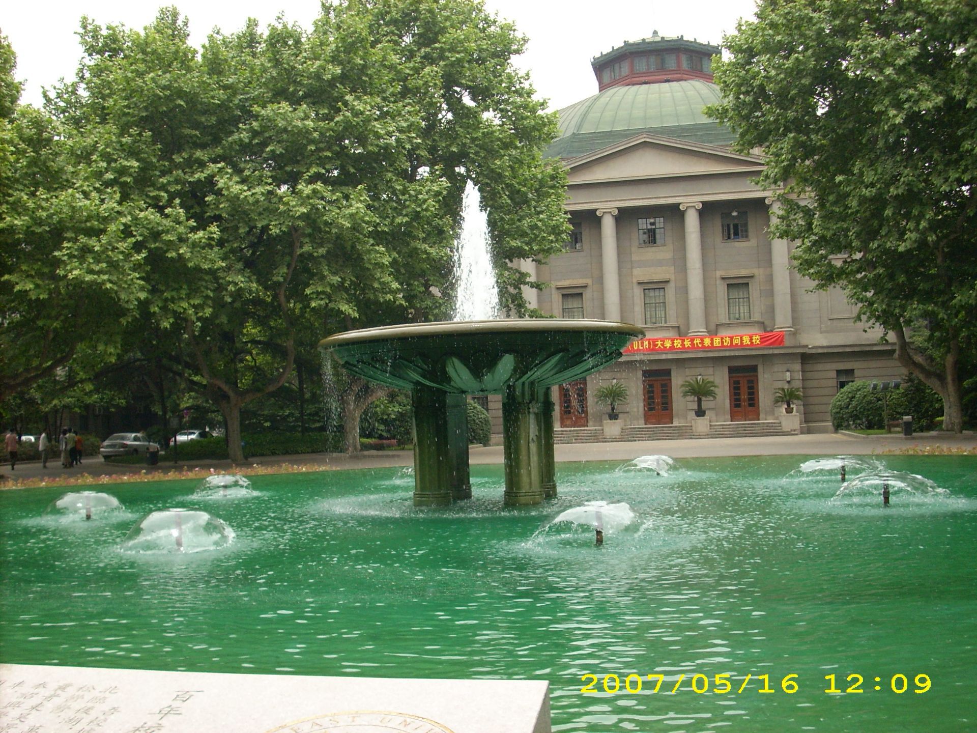 夜间配合灯光,礼堂的景色也很不错。礼堂前面有个喷泉,是校内合影的首选地点