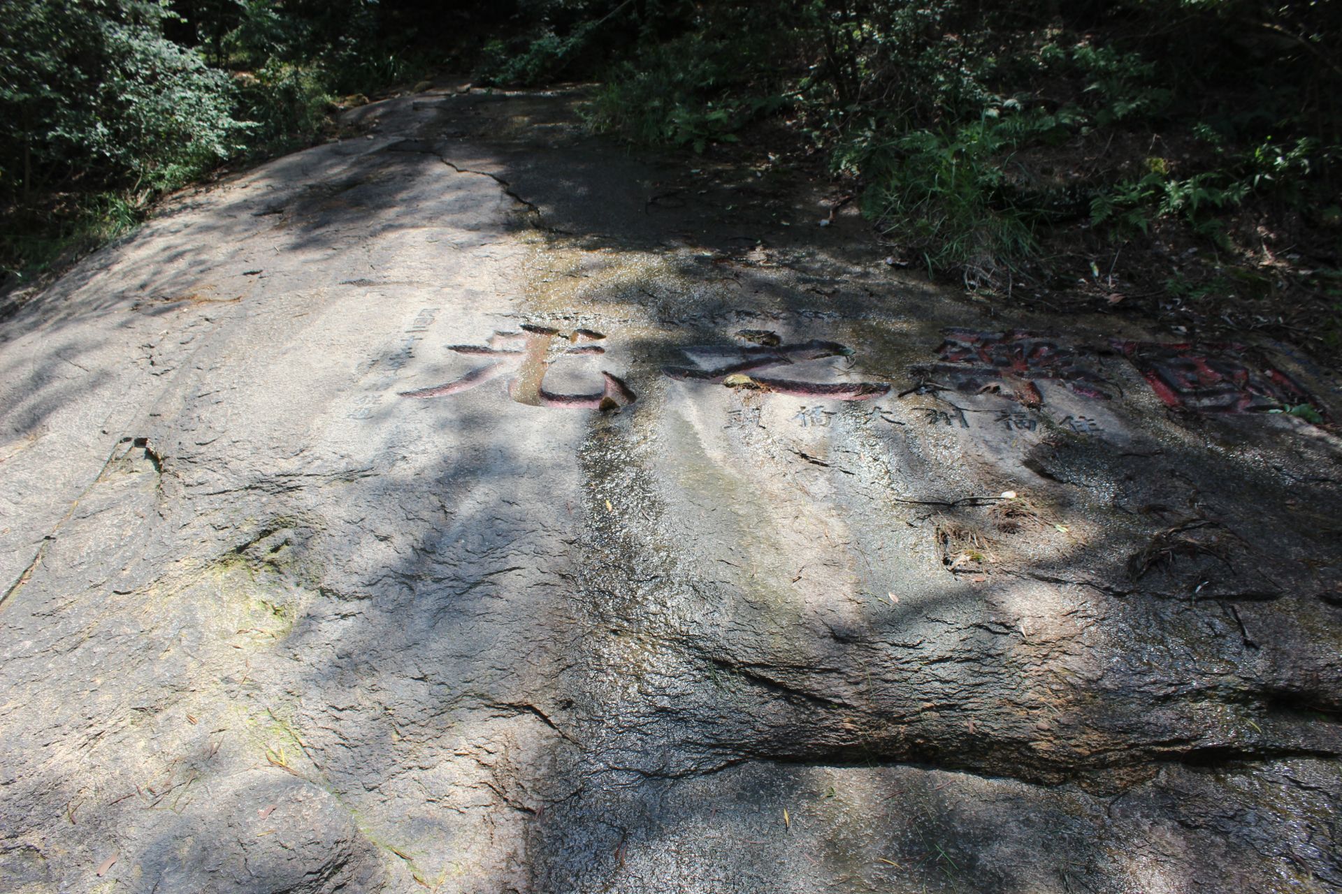 看看小径石阶和上面的苔痕,这条山间小路铺设绝不超过二十年,不知道这个古字有何而来,或许是因为这条路的年头太久了,只是近来进行了更新升级?不知道,也懒得为这个做什么考证,毕竟我不是专业的历史学者。主要景点几乎都分布在这条路的两侧,沿着它就可以直达山顶。