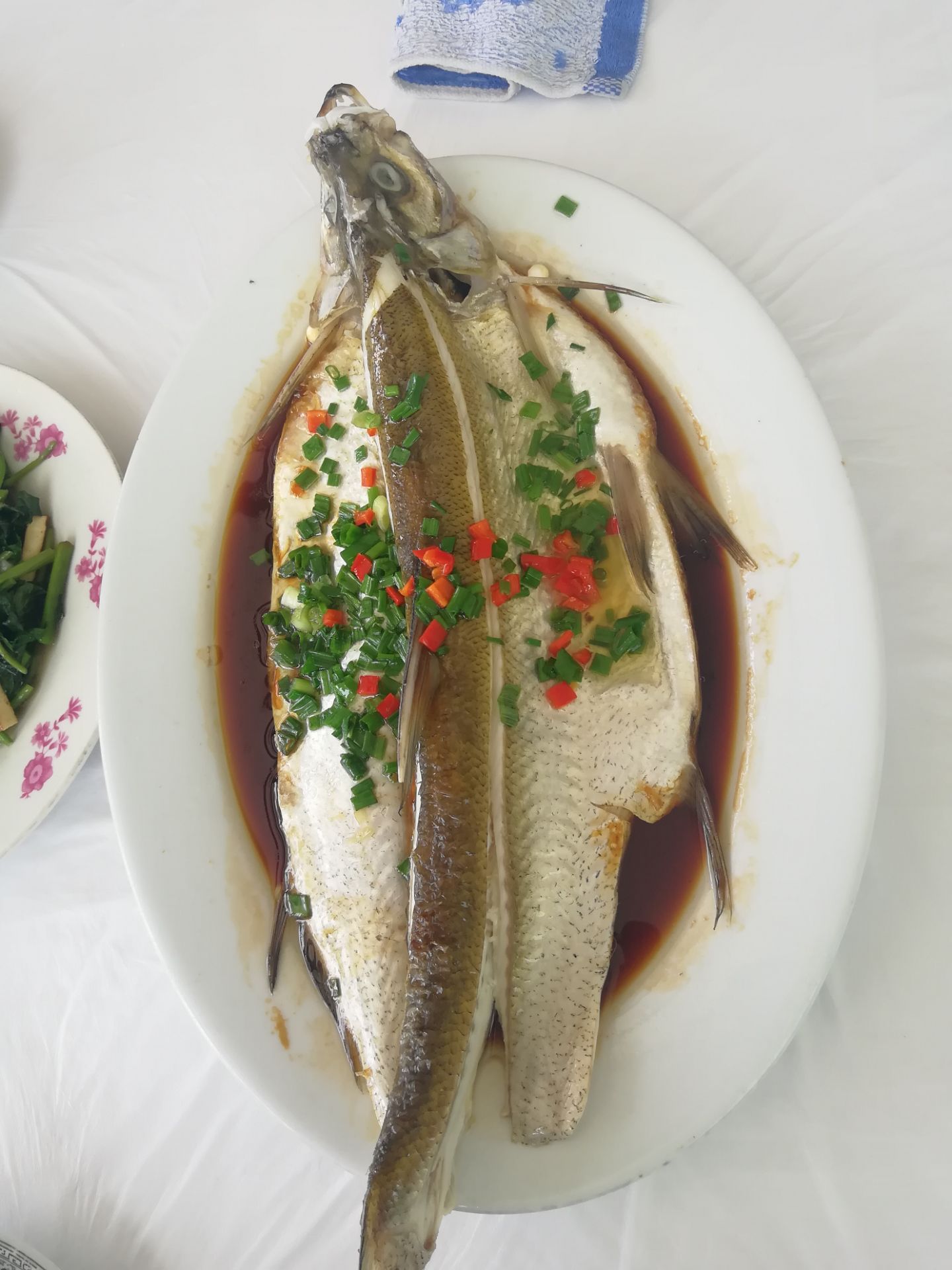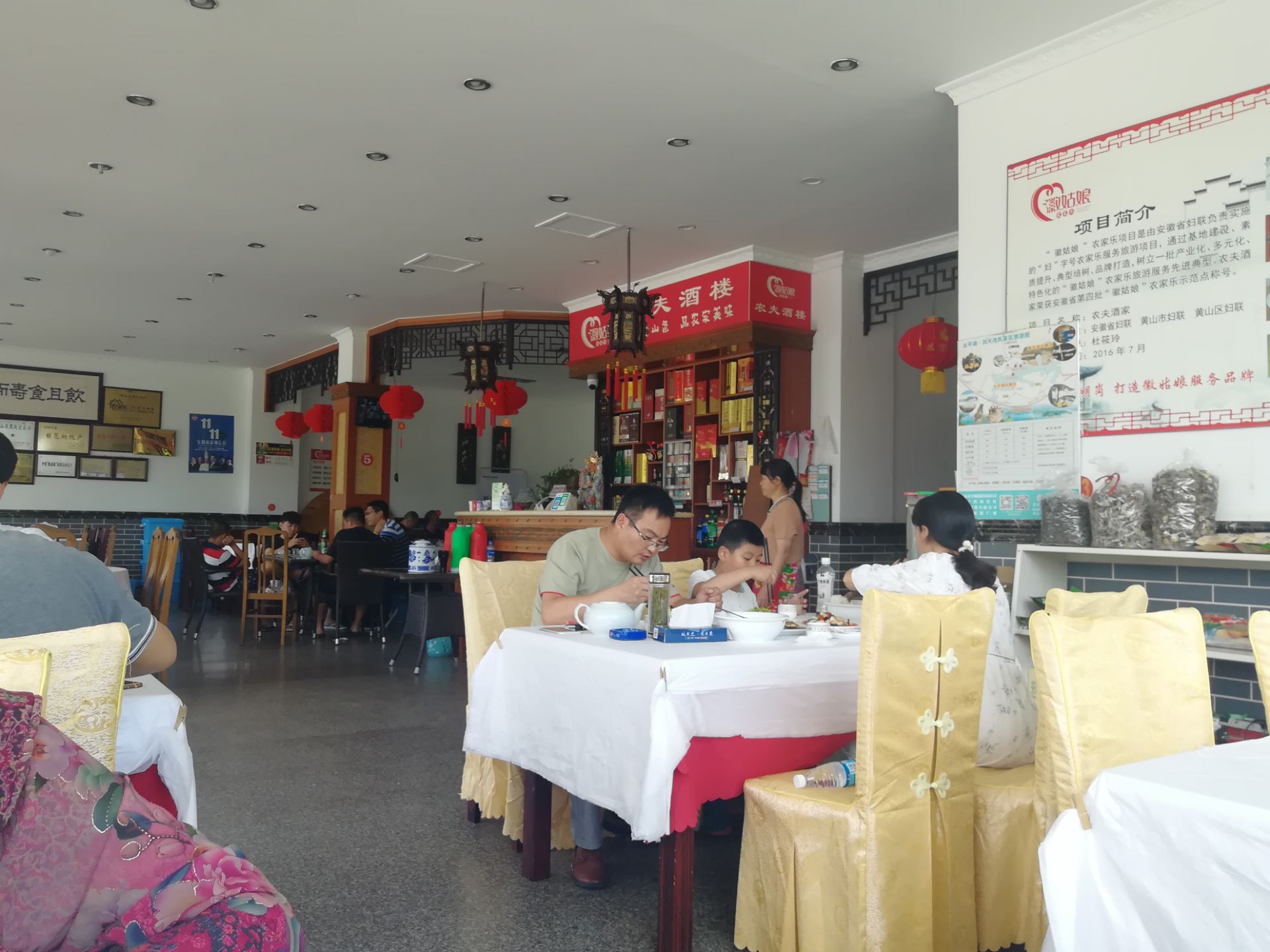 在景点的入口处,方便快捷。 点菜看到保鲜柜里最后一条梅白,果断请老板赶紧清蒸,酱油有点多有那么点点咸,应该也是徽菜的味道^O^,鸭板芹是看了菜名点的,第一次听到更是第一次吃,有芹菜和空心菜夹着的味道,妈妈很喜欢吃,因为是和妈妈两个人,考虑天气炎热,吃过饭要去游玩,就点了个开胃西红柿蛋蛋汤,妈妈和我喝连喝三碗,应该是最应该点赞的一道菜 最喜欢的是这儿的开水,喝起来甜丝丝,很软的感觉,回家路上还在和妈妈感慨的说,喝了嗓子都舒服,嘴唇也不干 总体来说,菜的味道不错,价格也还行,毕竟是景区,三道菜和一碗米饭118,其中鸭板芹28,其他的没有问价格 太平湖的景色很美,下次再去还要到他家去吃,看了保鲜柜里很多鱼种,只是和妈妈两人,不能浪费,下次一定要多尝一尝