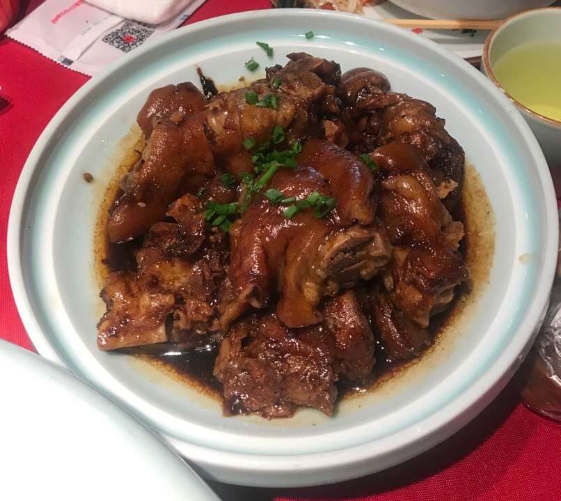 离公司还算近的一家店,同事去吃过,说不错,于是约了同事一起中午慢慢走到店里,提前预约了,店里生意不错,点了个大鱼头,还有各类菜,猪蹄大锅炖的,还蛮酥还入味的,虾也蛮新鲜的,鱼头有点辣,不过味道还不错,鱼丸汤好鲜,鱼丸也Q弹好吃