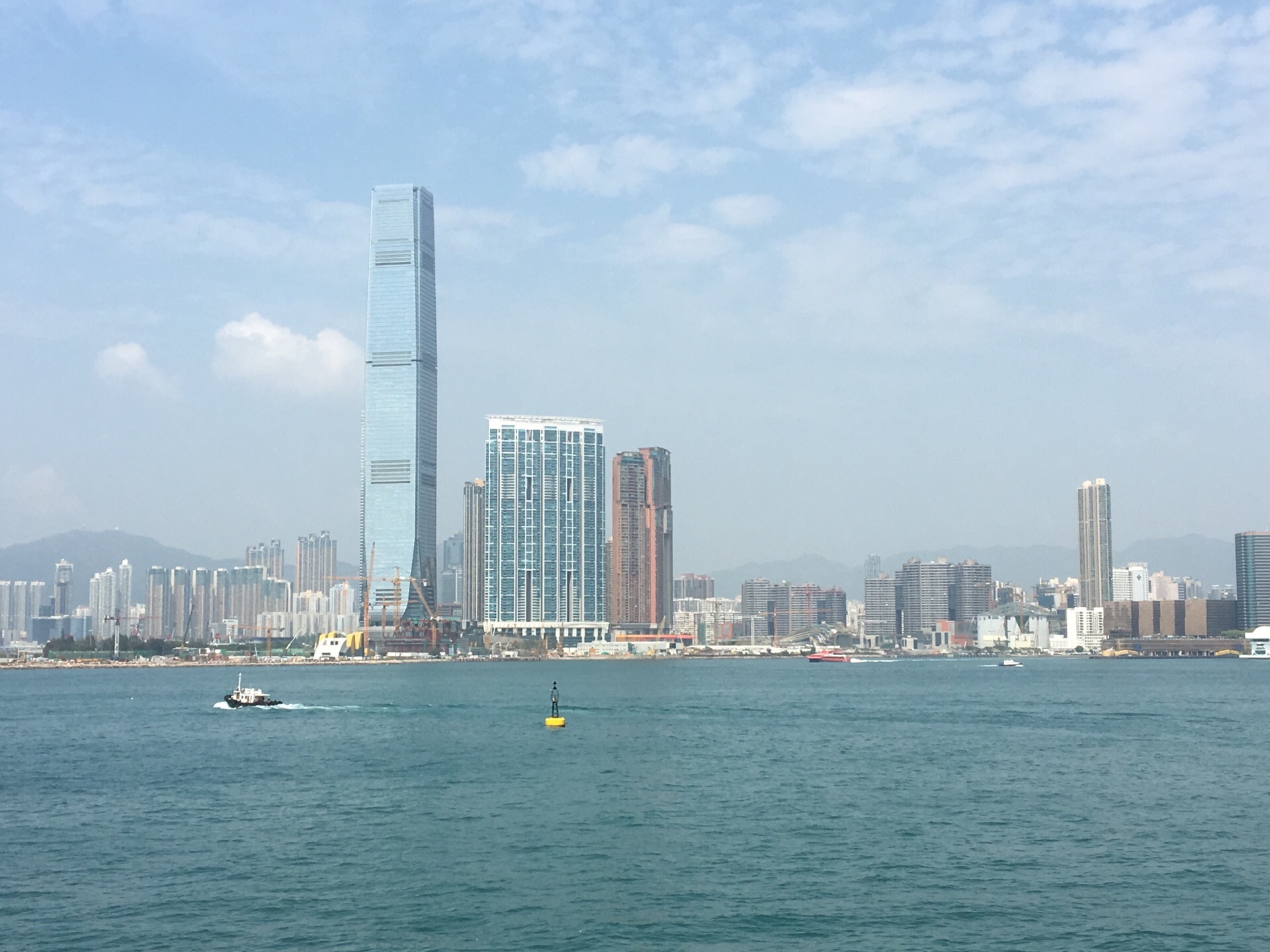 在维多利亚海港的两岸与Ifc隔海相望的那栋高楼就是环球贸易广场,这是香港的最高建筑,一共118层。在第100层有天际100观景台,而顶层则是香港丽思卡尔顿酒店。在环球贸易广场的下面,有高档的shopping mall圆方;另外可以通过天桥直接通向西九龙的香港高铁站。在高铁通车之后,这里成为很多游客前来shopping的一个目的地。