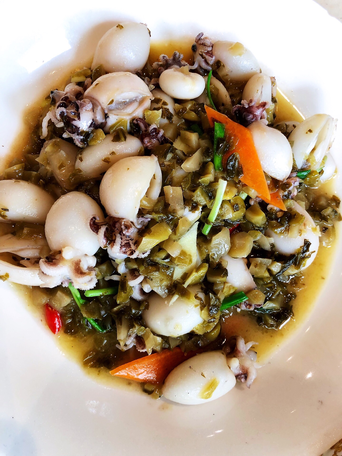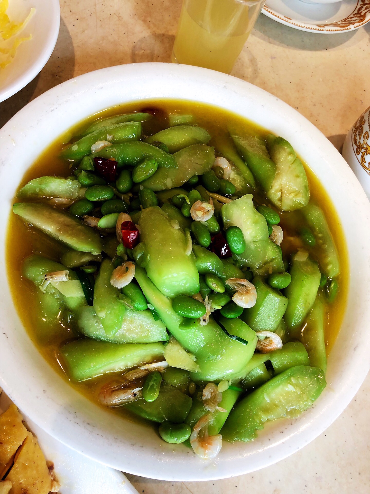 丝瓜毛豆小白虾食材新鲜果然是农家菜,雪菜目鱼仔里的雪菜居然也很好吃。一顿饭下来价廉物美人均70