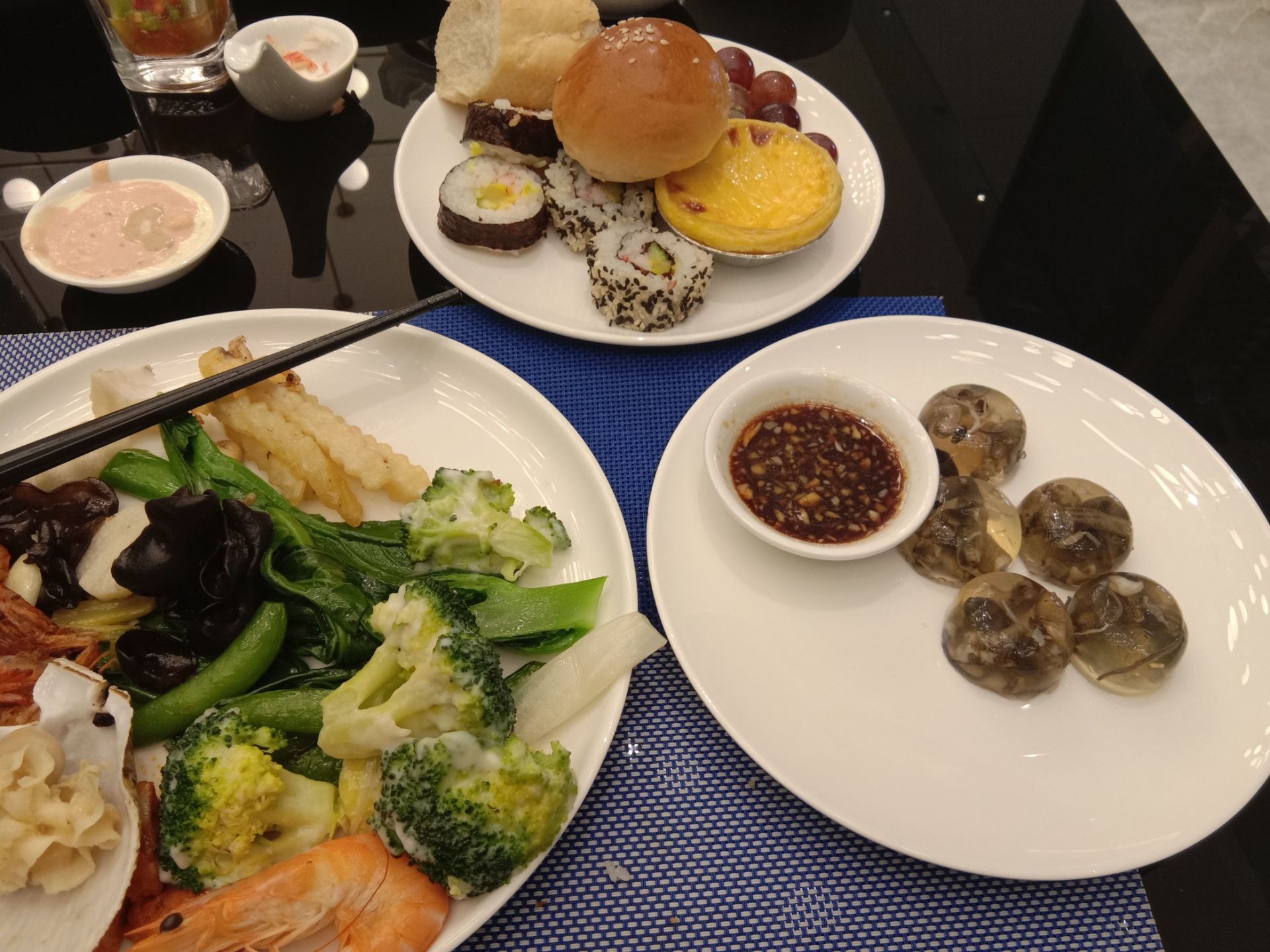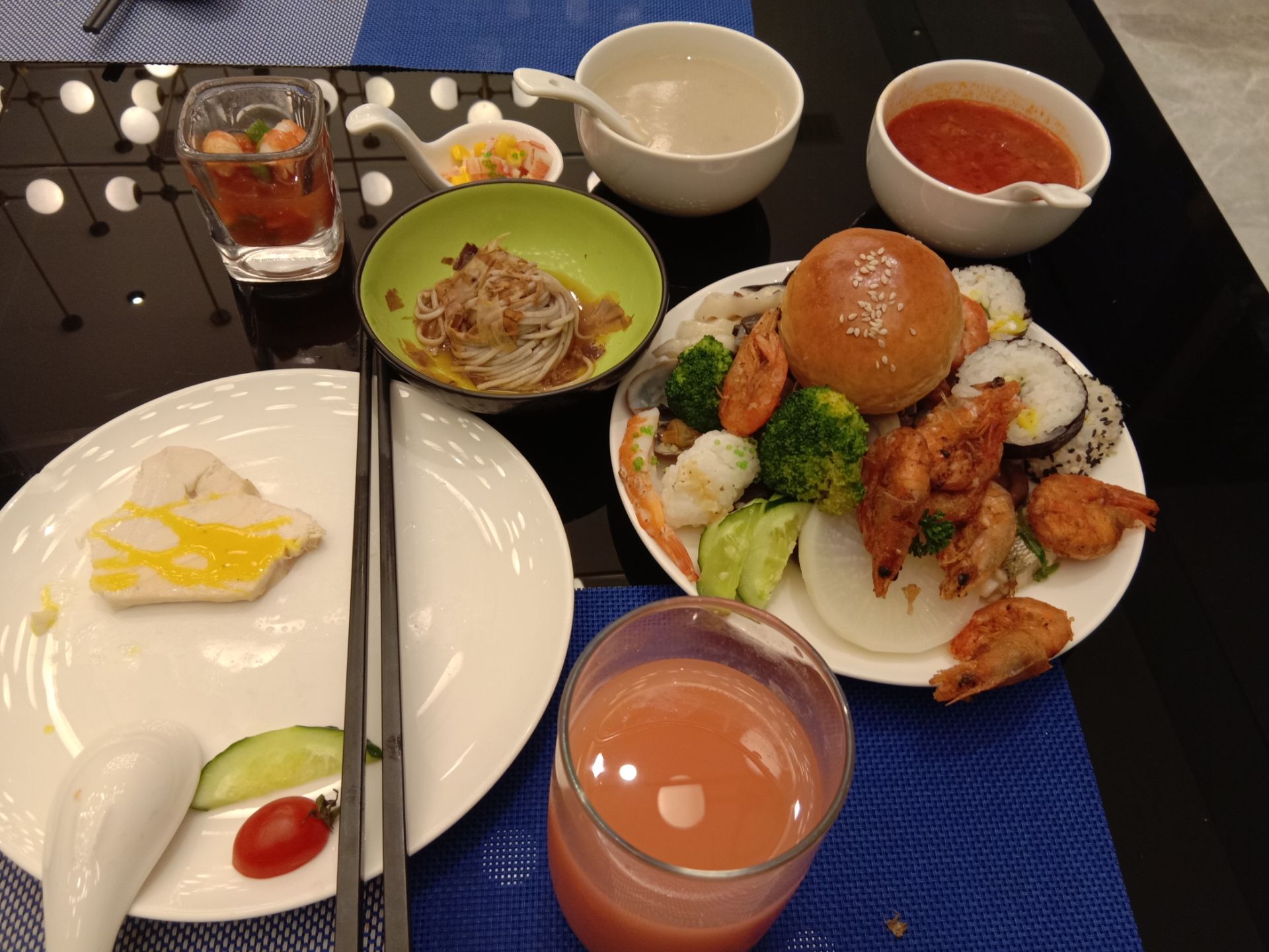 ...类口感没有打折,本人觉得最赞的是多样选择的日料,烤虾,六种口味的冰激凌,麻辣牛蛙,清蒸鱼,鱼排