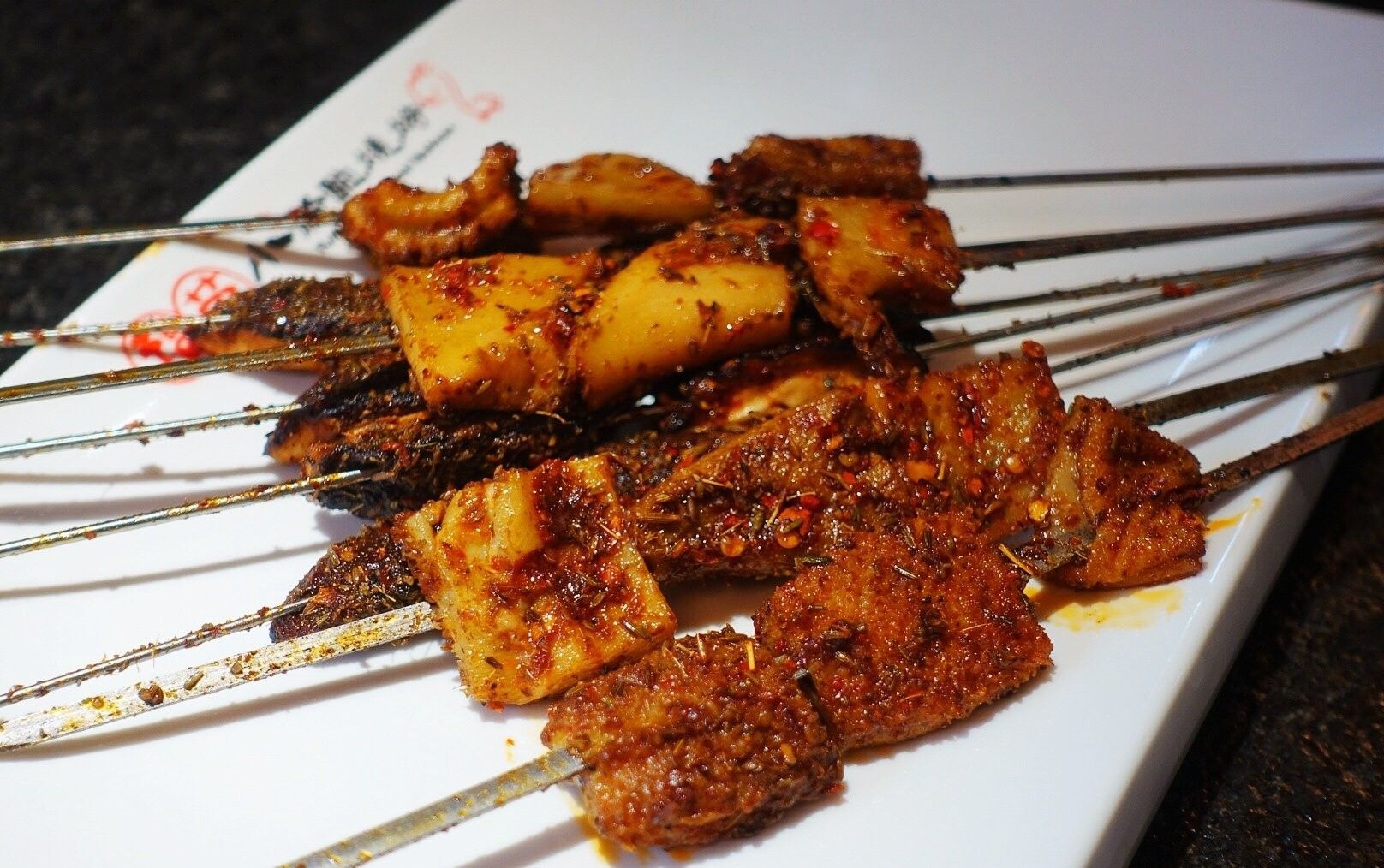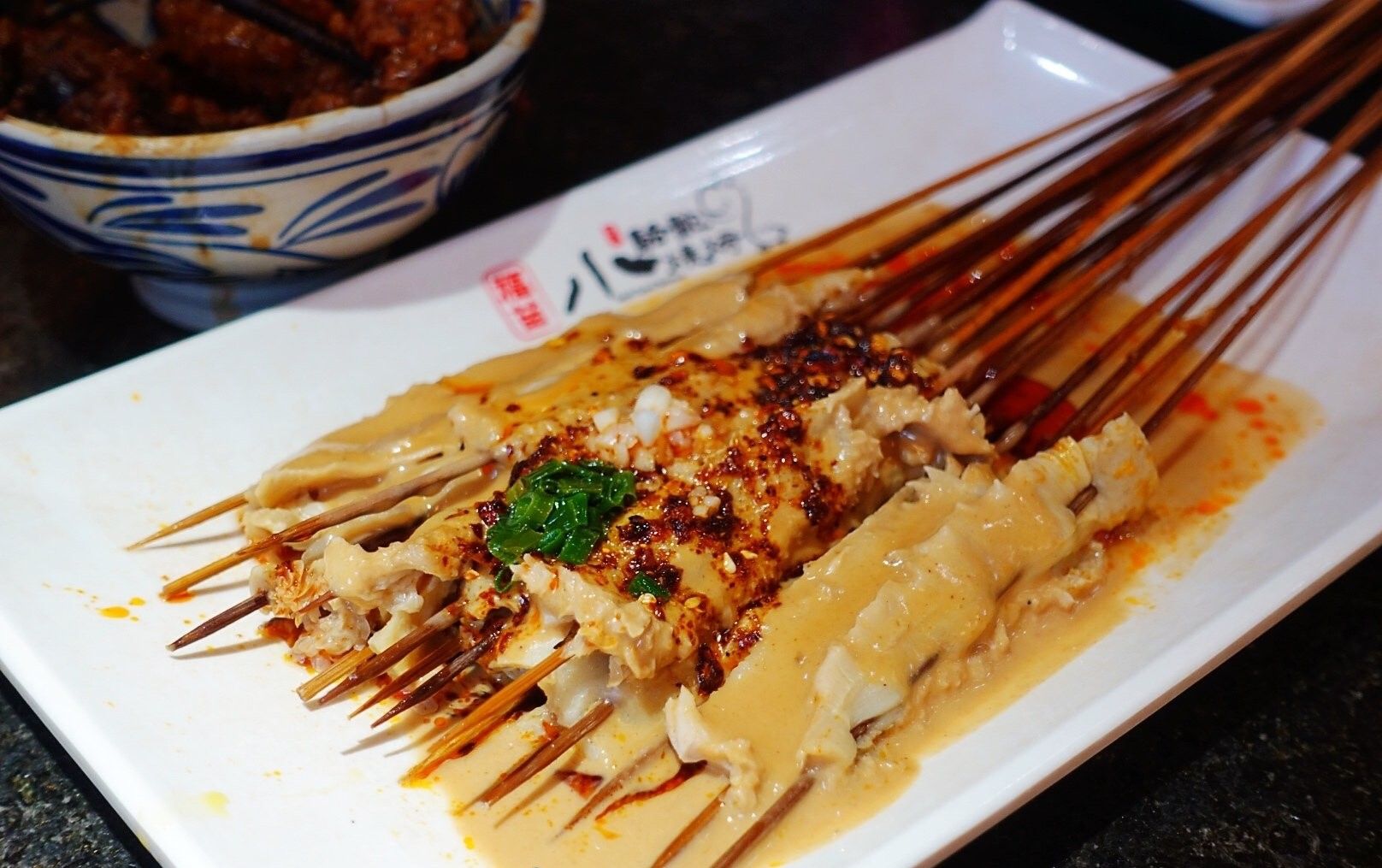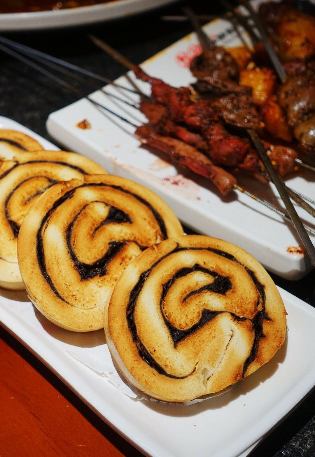 福苗小骆驼烧烤 菜单上单点的「老陕麻酱涮牛肚」超有弹性但不难咬,麻酱料够足,味道浓郁醇香「鱼香鲜蛏子」第一次吃鱼香口的蛏子,好吃~ 除了吃肉,陕西的主食也是不能错过的「陕北烤枣馍」边缘微微焦脆,中间还是软的,混着枣泥的馍越嚼越香「回民街甑糕」糯米、芸豆、枣泥都蒸的十分软糯,而且融合的很好,枣泥量足但不甜腻,吃起来十分满足「陕北枣沫糊」也是浓郁的枣香味,爱吃枣的人一定喜欢。