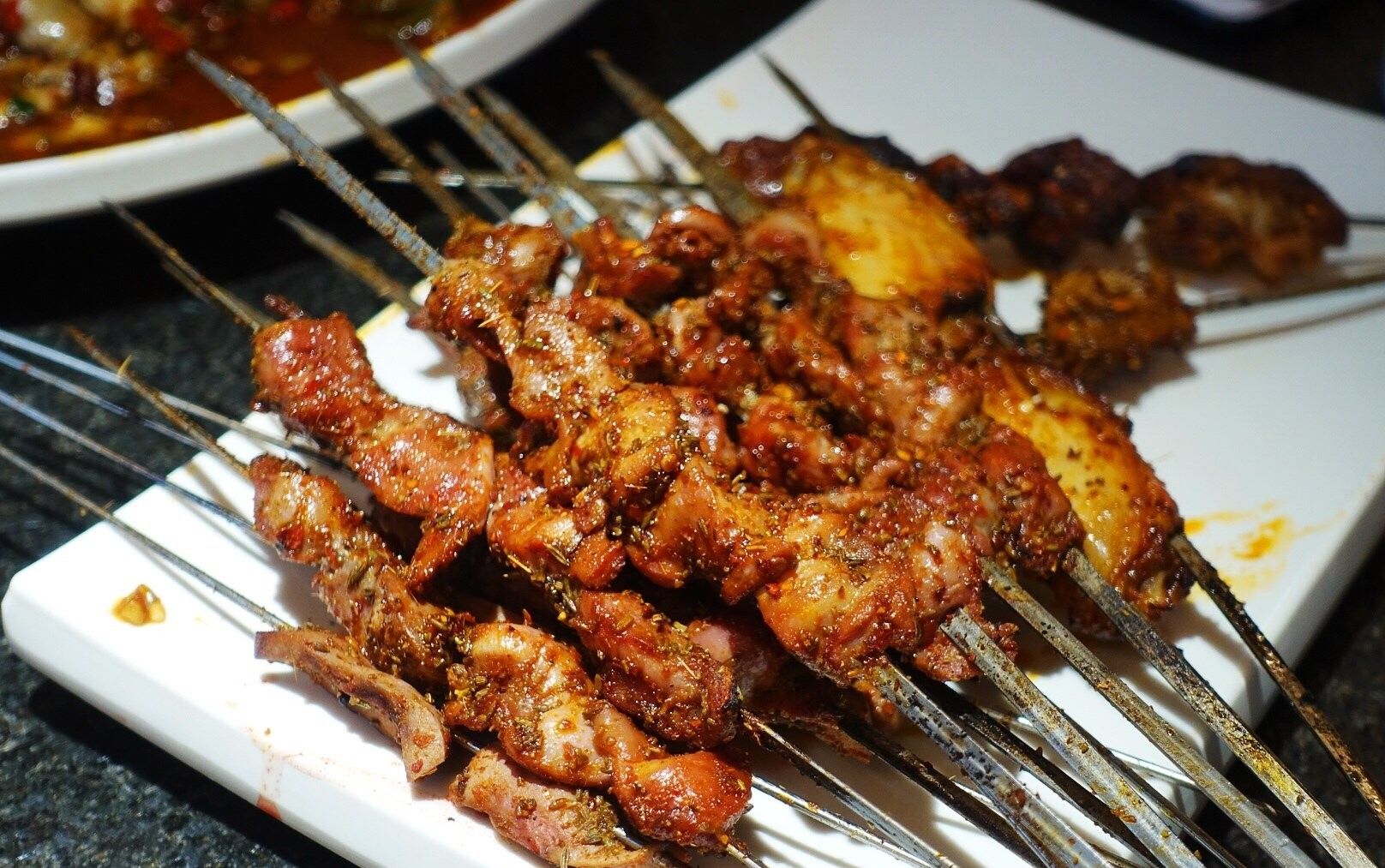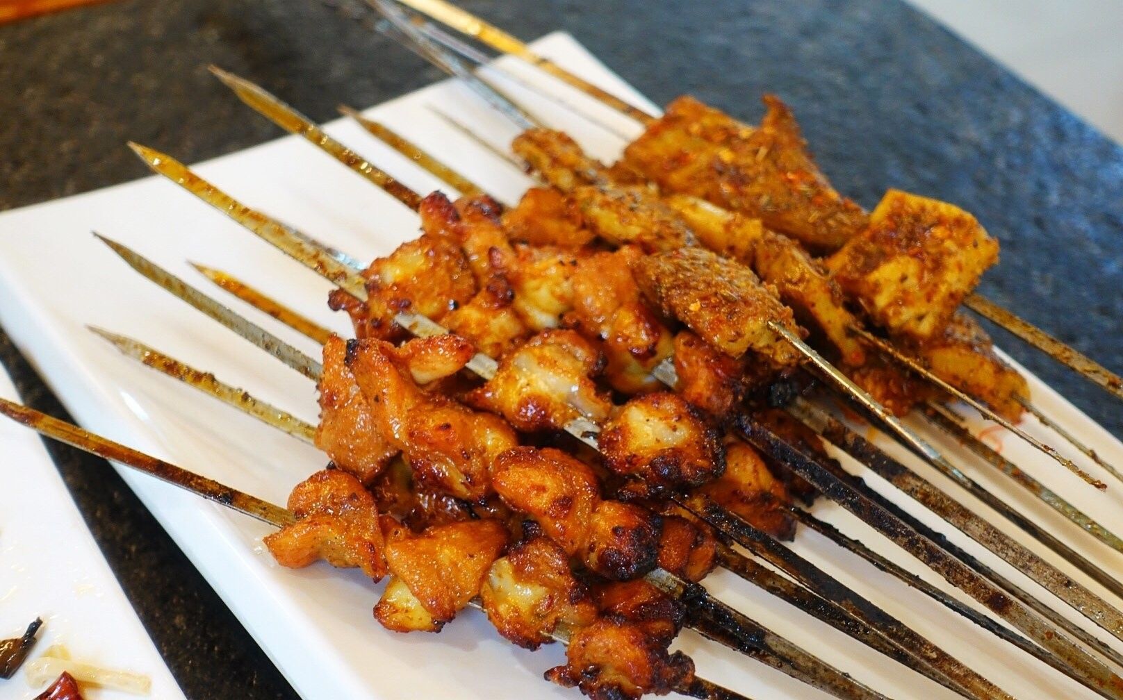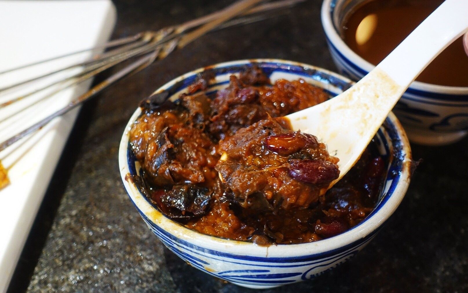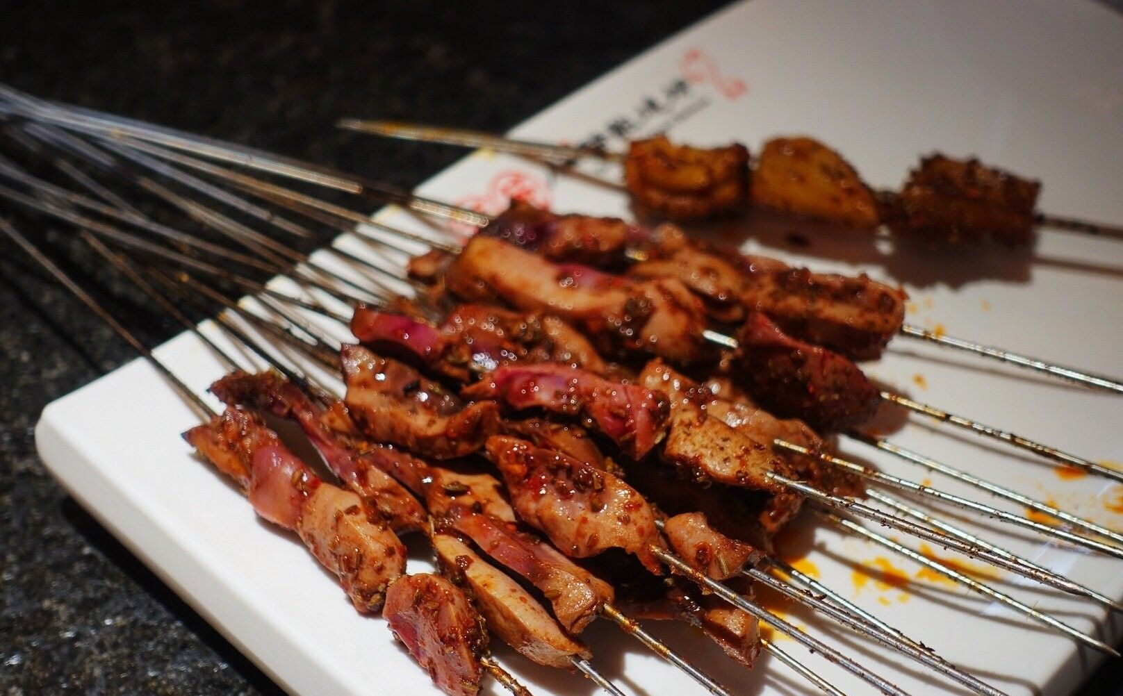 福苗小骆驼烧烤 菜单上单点的「老陕麻酱涮牛肚」超有弹性但不难咬,麻酱料够足,味道浓郁醇香「鱼香鲜蛏子」第一次吃鱼香口的蛏子,好吃~ 除了吃肉,陕西的主食也是不能错过的「陕北烤枣馍」边缘微微焦脆,中间还是软的,混着枣泥的馍越嚼越香「回民街甑糕」糯米、芸豆、枣泥都蒸的十分软糯,而且融合的很好,枣泥量足但不甜腻,吃起来十分满足「陕北枣沫糊」也是浓郁的枣香味,爱吃枣的人一定喜欢。