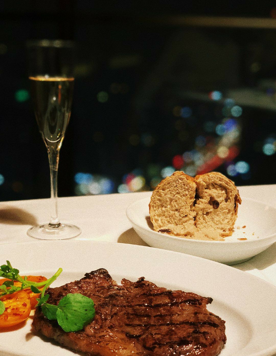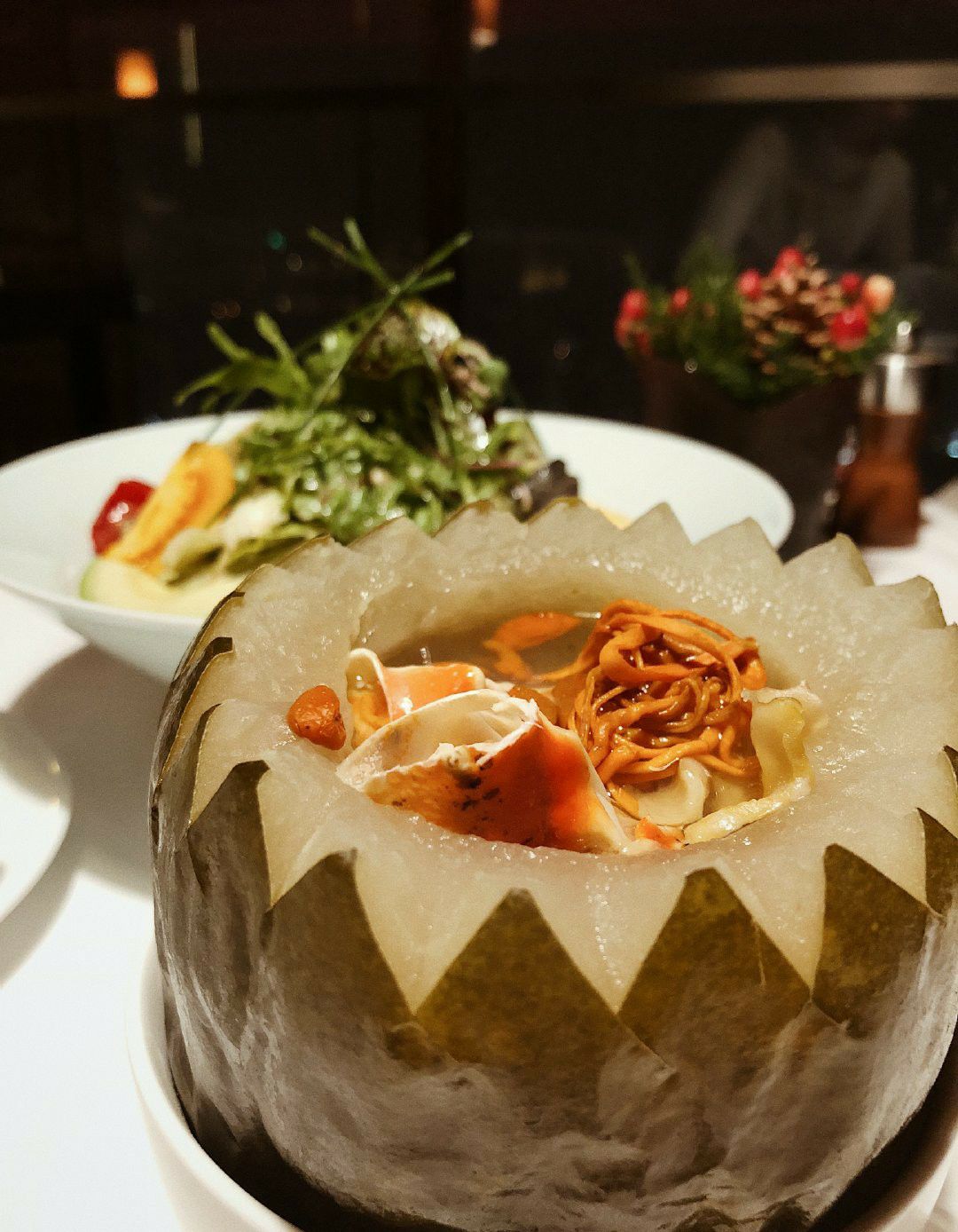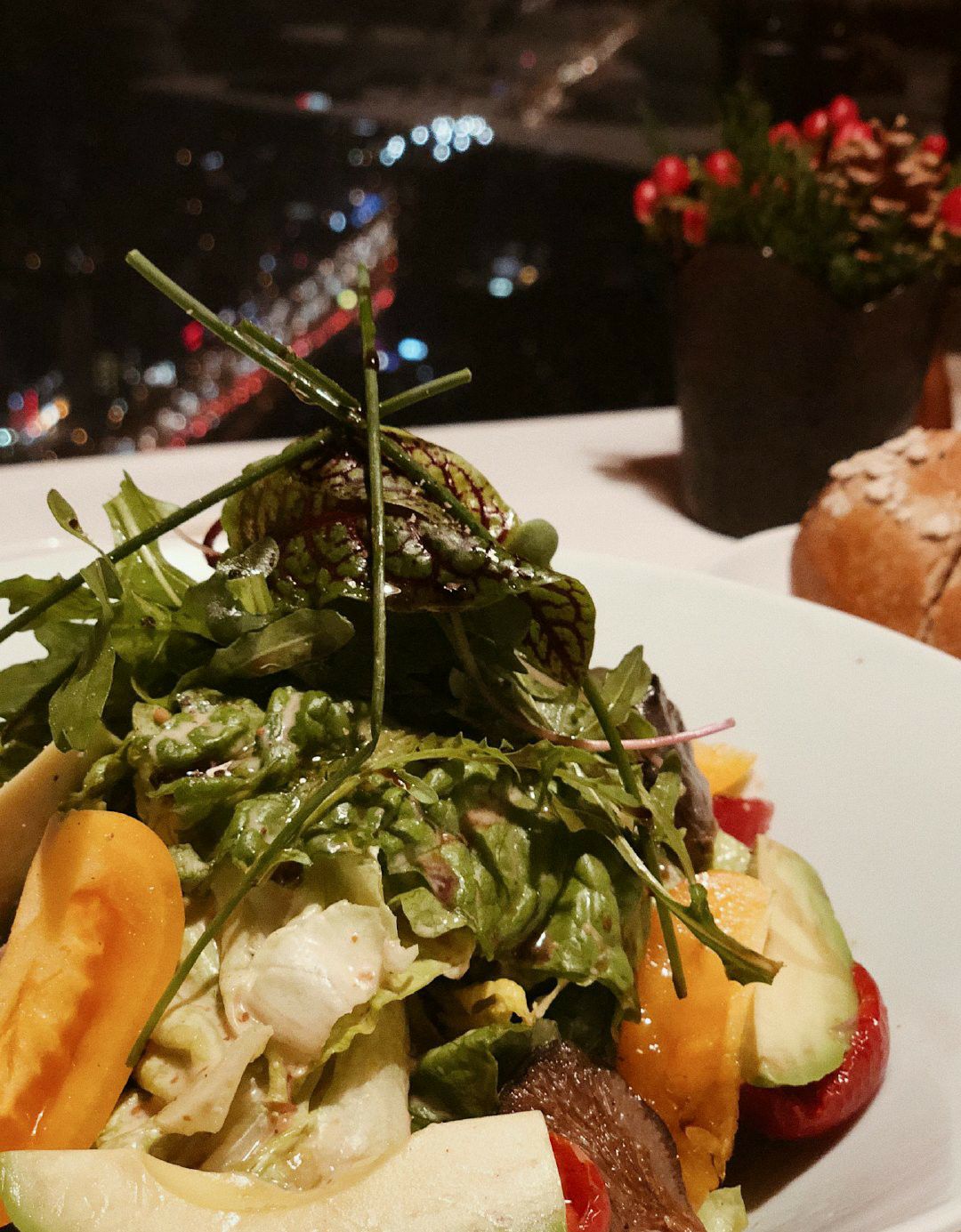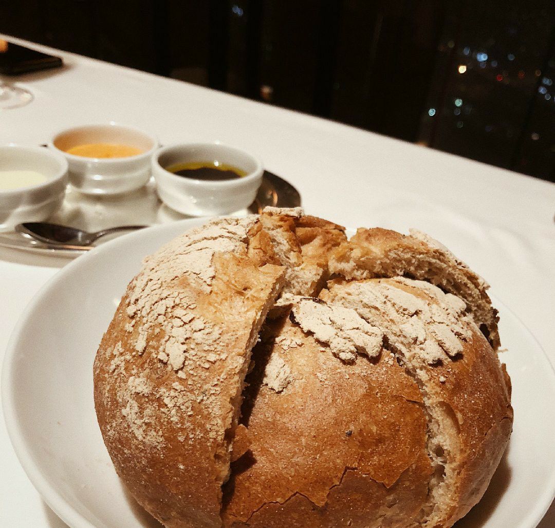 北京亮 China Grill 餐前面包| 端上来热热的,外皮超酥,蘸着甜椒酱完美!与藏红花的餐前包在我心中并列第一! 北京亮沙拉| 特别清爽,本场最爱, 橙色的番茄甜甜的。 海鲜冬瓜盅&鲍鱼松茸鸡汤| 用料实在的汤,非常中式的做法 牛排&果子面| 主菜味道中规中矩,果子面第一次尝试,很像丁丁炒面哎。 地址:建国门外大街北京柏悦酒店66层