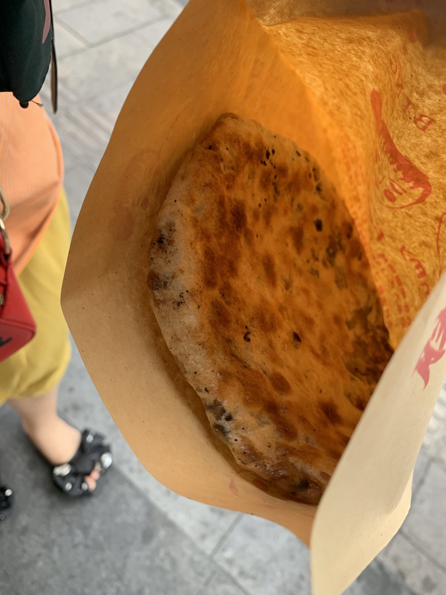 在等公交车的时候正好看到了有一家胖子烧饼,还觉得奇怪,之前是在对面的,询问了一下才知道原来是对面的那家搬到这边来了,果断的点了一个专门吃的辣五花,味道还是原来的味道,非常好吃,几乎次次路过都会买一个吃吃,喜欢这个味道