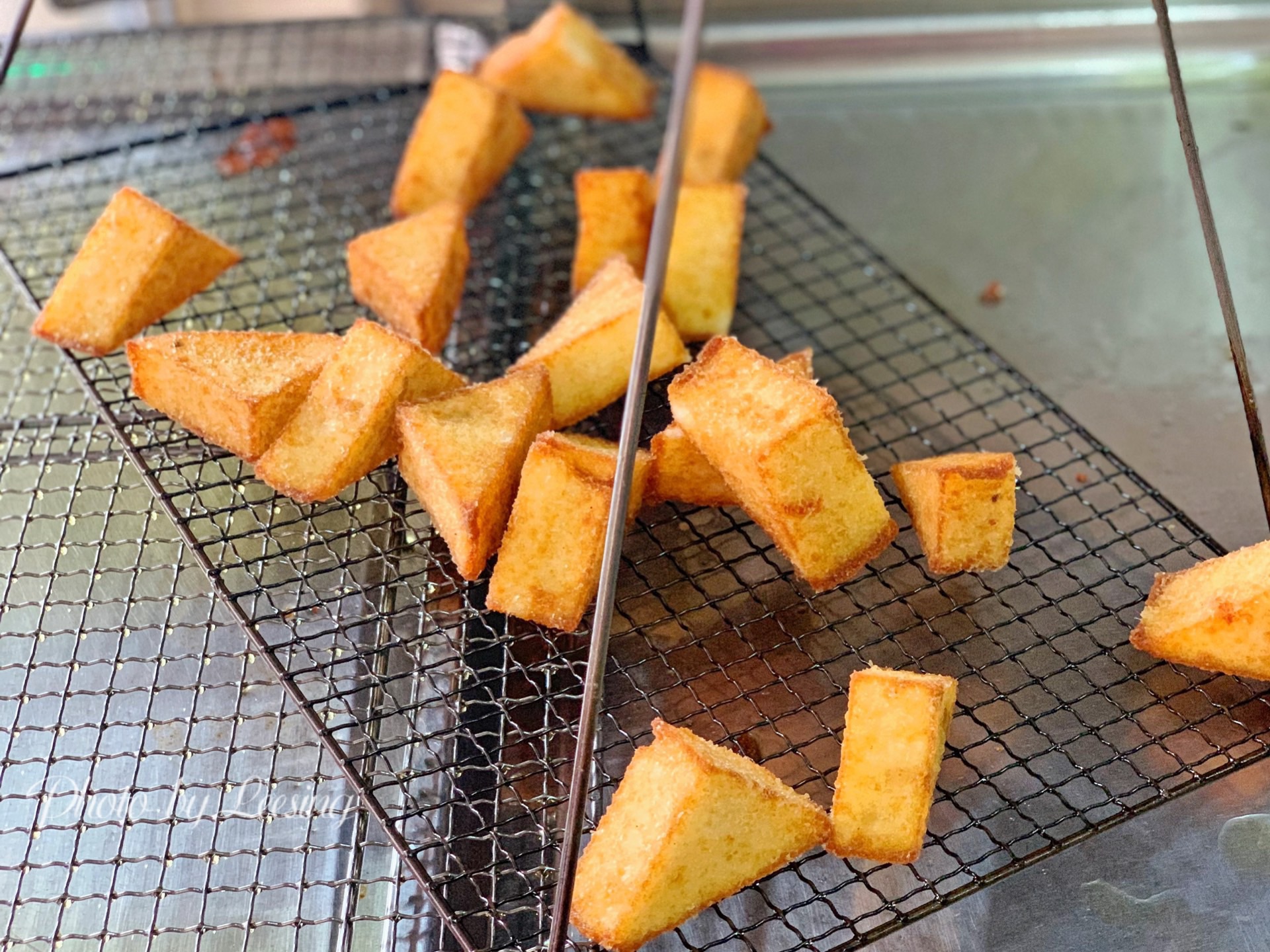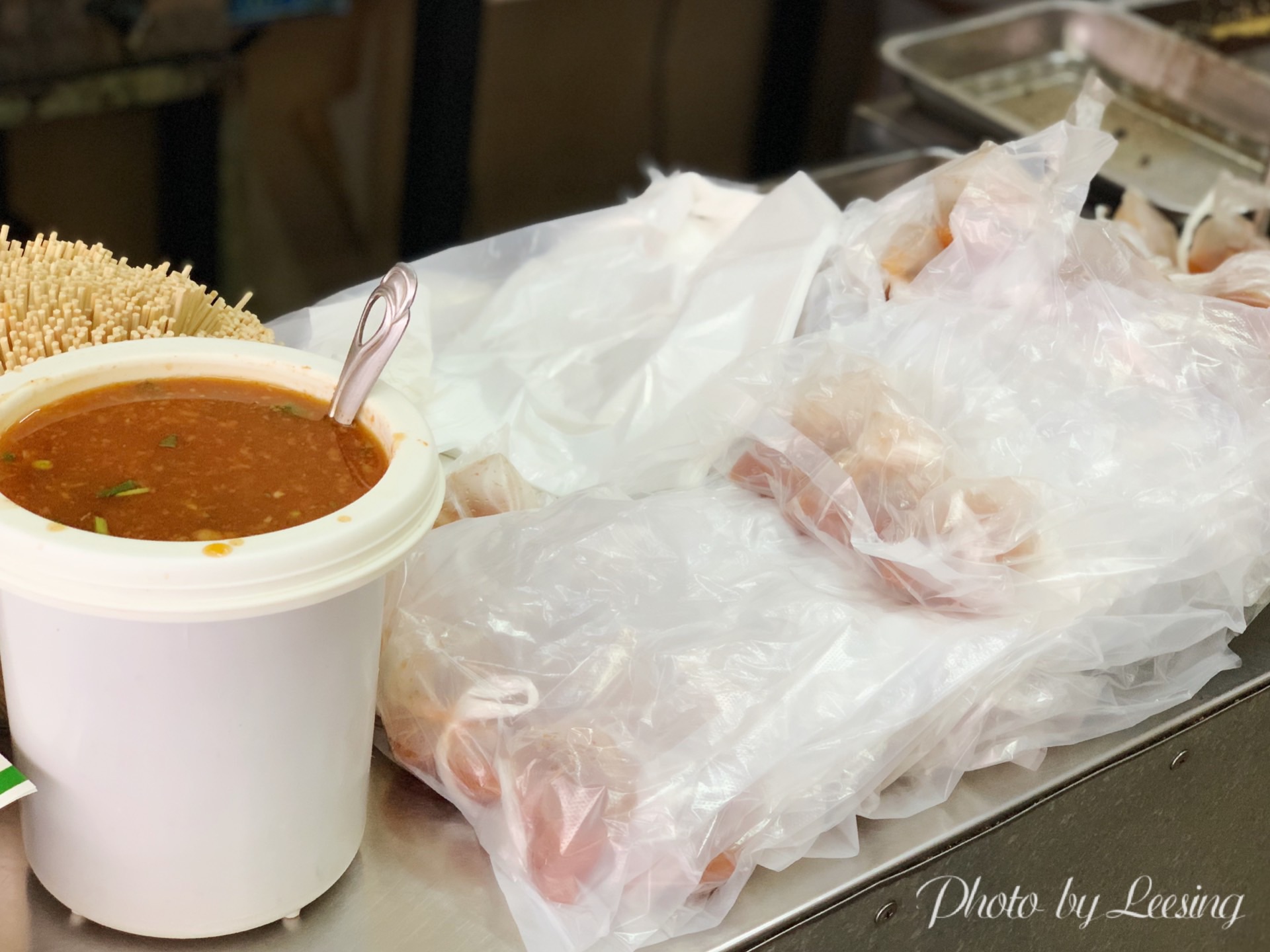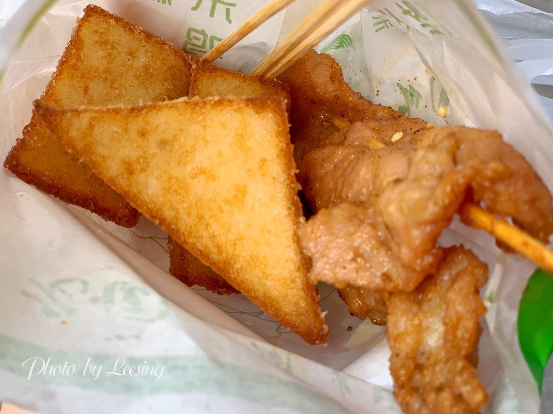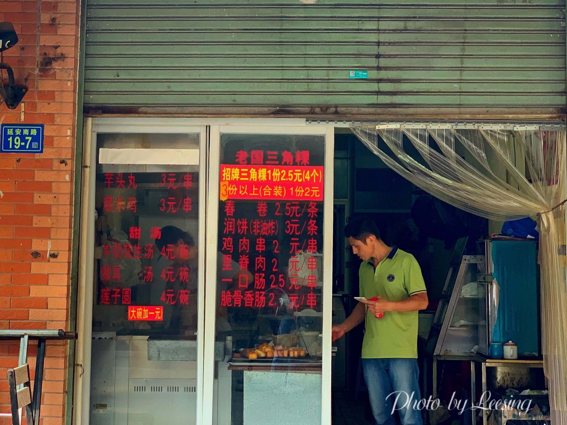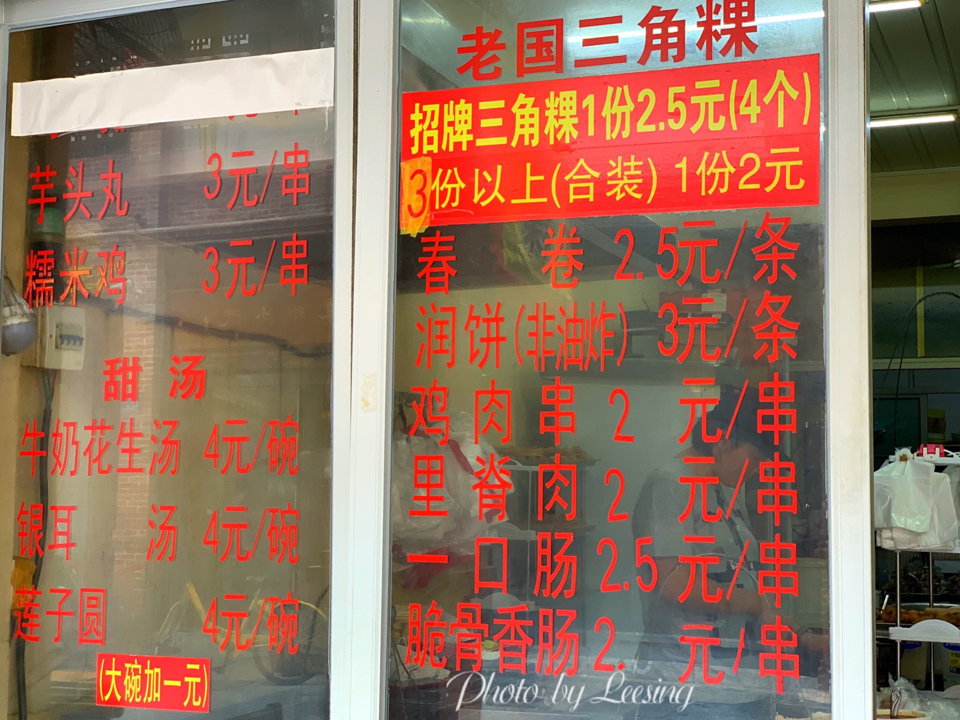 漳州这地带的门面还是比较老旧的,而且也不太显眼,不过还是靠着老手艺深得人心。 老国三角粿当然得尝尝三角粿啦,2.5元/1个?NoNoNo,4个,2.5元/4个哦。现炸的三角粿,表皮金黄酥脆的,里面却是细腻软绵,还可以蘸上特制的酱料,香甜酸辣。 它家除了三角粿外还有里脊肉、春卷、鸡肉串、一口肠等等小食,大家也都可以试试哦。