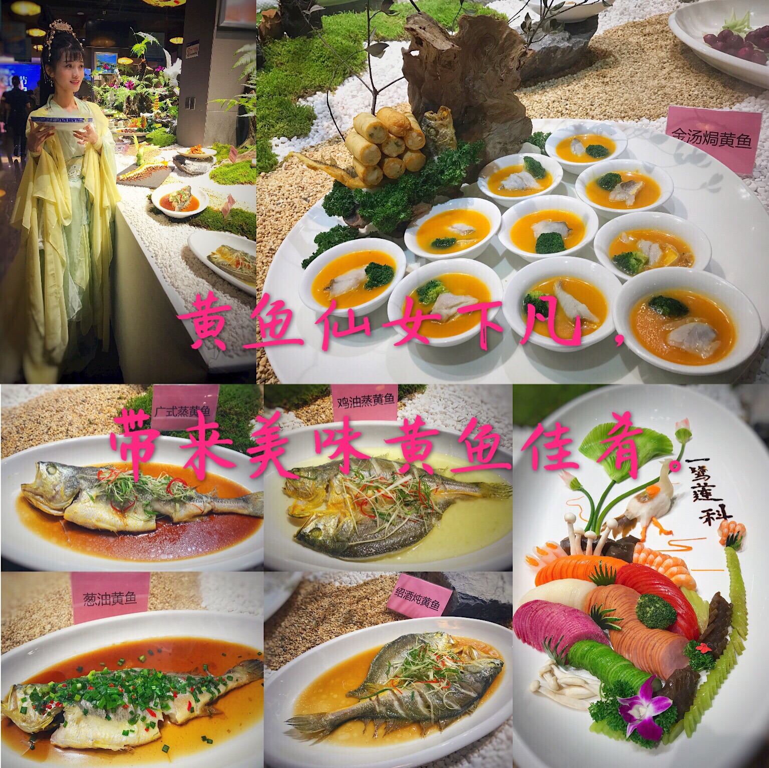 黄鱼仙女下凡,带来美味黄鱼佳肴。 同安味霖海鲜早有耳闻,据说是同安餐饮一哥,主打海鲜和各款闽菜;两千多平的餐厅无论是聚餐还是举办宴席都大气高档; 虽吃过黄鱼但不知道原来有这么多种做法,单单清蒸的就可有广式蒸,鸡油蒸,葱油蒸,绍酒炖等,最爱绍酒炖,醇厚甘甜的花雕酒香融入鲜嫩的鱼肉,美哉妙哉; #黄鱼面线# 传统老厦门吃法,乳白的汤汁鲜而不腥,筋道的面线Q而不烂,鲜美的鱼肉嫩而不碎,一口气可以吃三碗; #有机黄鱼焖饭# 这几年的新兴菜式,碳水和鱼肉完美结合,米饭吸收了鱼肉的鲜,黄鱼有了米饭的中和口感又更饱满; 除了黄鱼,还有椰子花胶美容养颜,炭烤牛肋排,牛肉劲道肥瘦相间; 再来一杯红酒,看着美美的黄鱼仙女,神仙的生活也不过如此。