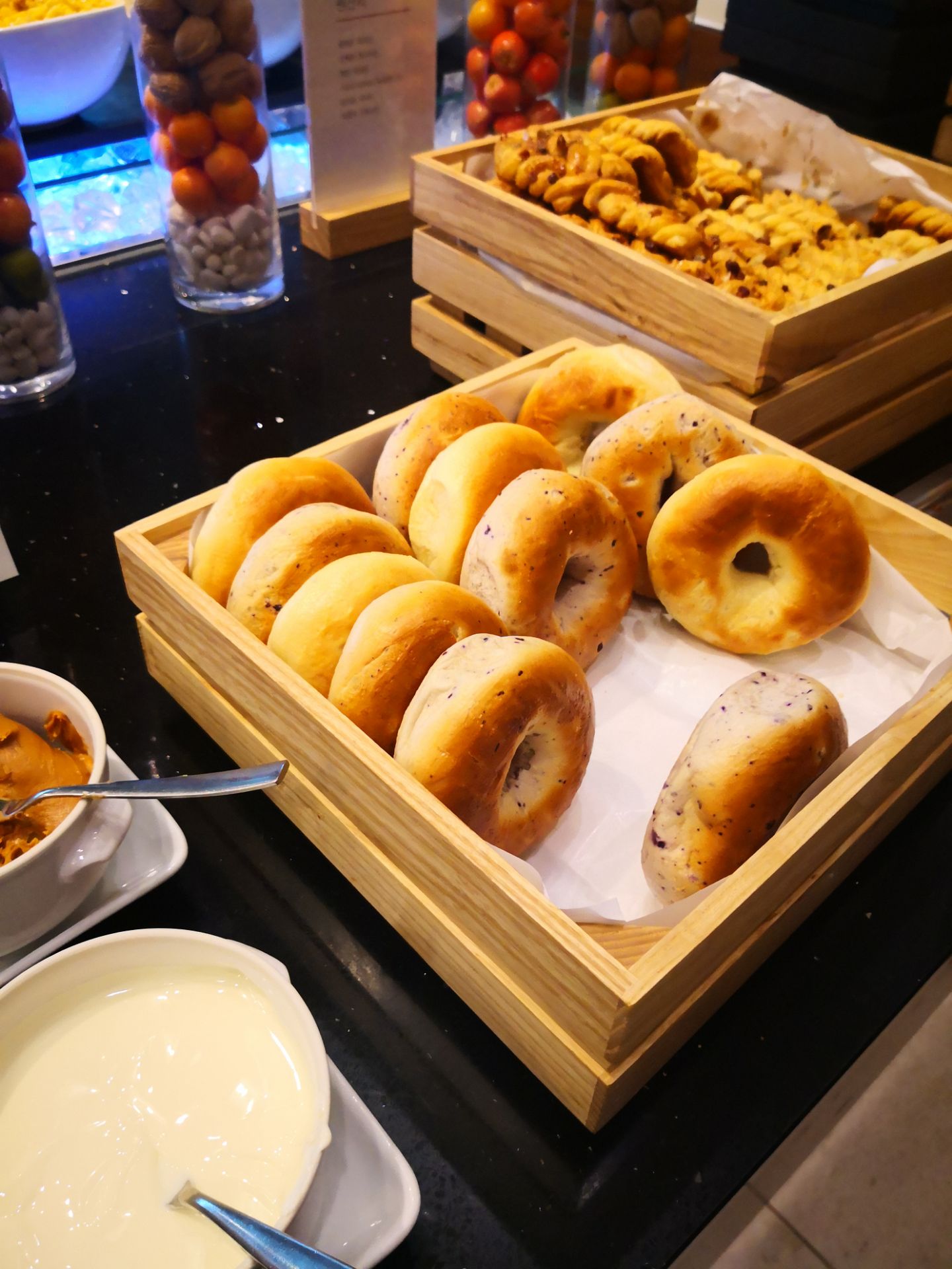 ...有等位,自助餐内容很丰富,面包选择很多,还有很多韩国特色早餐,酱菜很多可以选择,海带汤好好喝的
