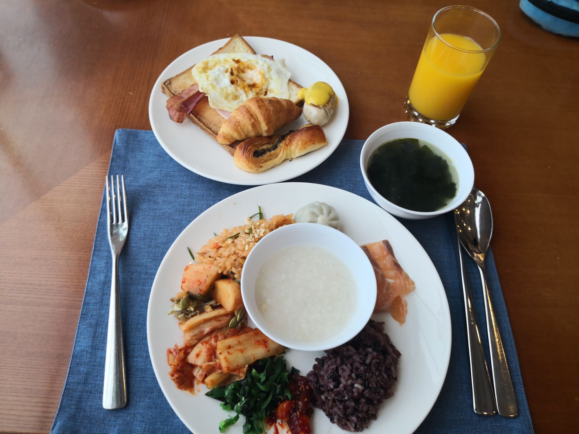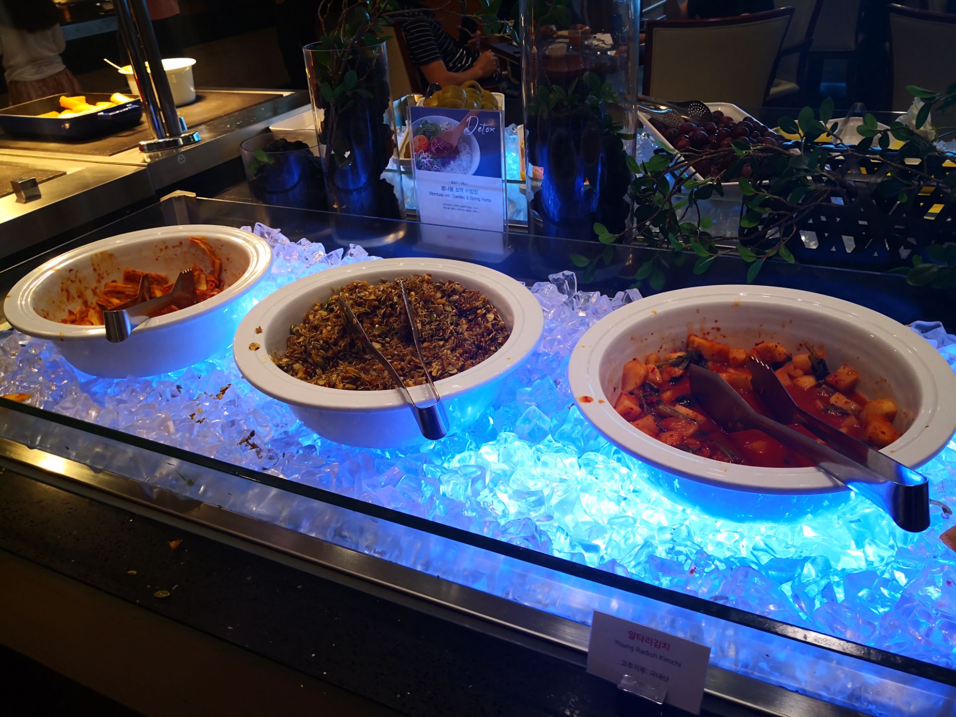 the blue restaurant,济州华美达广场的自助餐餐厅,我们每天早上自助餐就是在这里吃的,入住的时候会给早餐券,一天一张,从早上6点半开始到10点,我们一般都是9点去吃的,有一次是等位了,还有2次没有等位,自助餐内容很丰富,面包选择很多,还有很多韩国特色早餐,酱菜很多可以选择,海带汤好好喝的