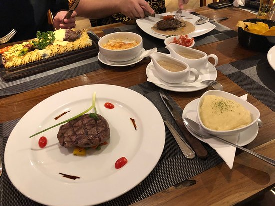 菜的品质和味道都很好,牛排外焦里嫩,点了全熟,但是做好的并不是那种硬的感觉,所以很开心的一餐,...挺不错的餐厅,菜的品质和味道都很好,牛排外焦里嫩,点了全熟,但是做好的并不是那种硬的感觉,所以很开心的一餐,价格也很合理。