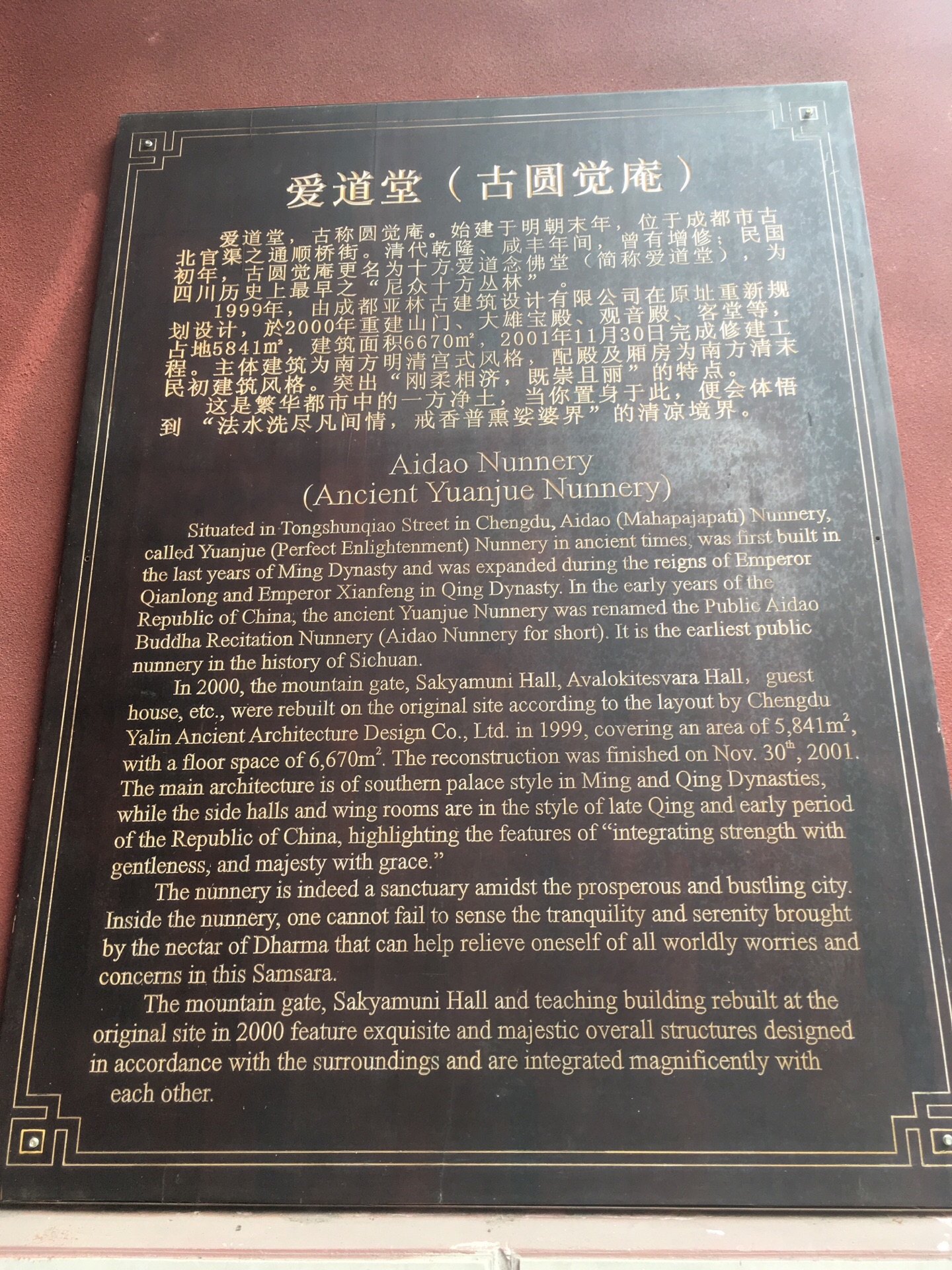 成都爱道堂,在市区内,邻文殊院,交通便利十分好找。