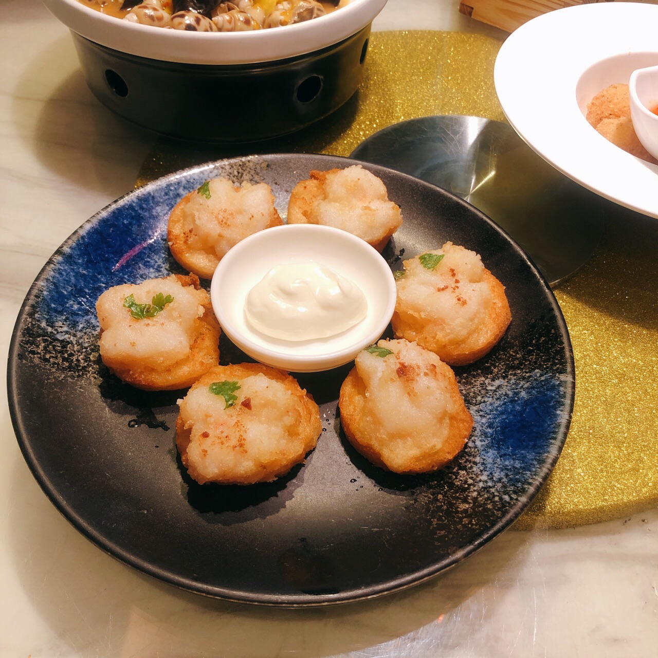 久闻陶陶居的大名,这回终于吃上了。 和公司同事聚餐,特意选了这家。周末的大中午过去,生意真的不要太好。 作为甜品控的我,点了一堆甜食哈哈哈。 强烈推荐「天鹅榴莲酥」,不仅造型栩栩如生,内里的口感也是相当酥脆,榴莲香气浓郁,一口下去相当感人,一定要趁热吃! 「怀旧虾多士」,这道也超好吃,虾和芝士,本就都是很诱人的食材,两者融合,直教人流口水。 「杨枝甘露」小小一盅,用了西柚而不是白柚,使得整体口感更酸甜,感觉吃两碗都不会腻。 它家的好多其它茶点也都好好味,是那种怎么点都不会踩雷的,无论是好甜口的还是咸口的,都能在这里找到所爱。