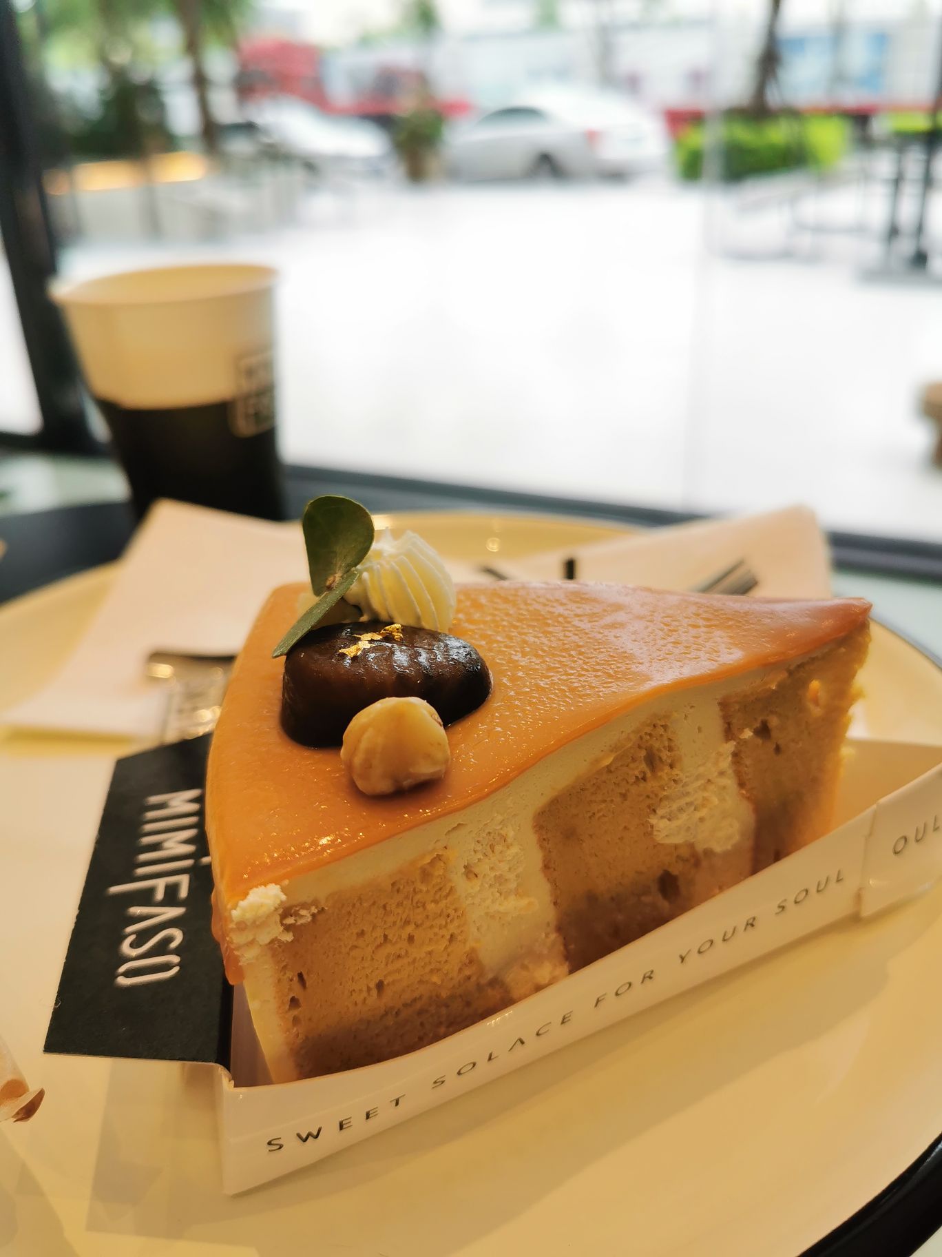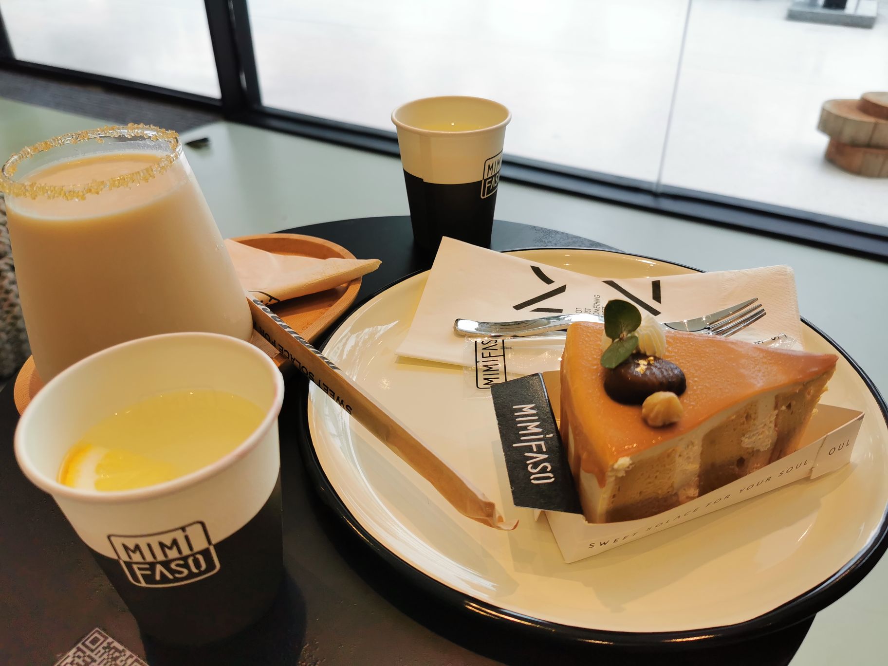 周末带孩子来会展这边沙滩玩耍,路过会展北看见mimifaso的店,吃过沙坡尾店磐基店的我怎能错过呢,赶紧进来打卡咯。 环境一如既往的艺术,挑高的空间让店里看起来非常大。点了一块手工焦糖糯米蛋糕,一杯金凤牛乳茶,蛋糕造型和口感都在线,牛乳茶杯口用黄砂糖抹圈,爆珠跟一般的珍珠不一样,口感脆弹,好吃。休息了一下补充了能量就可以愉快的去海边玩耍啦。