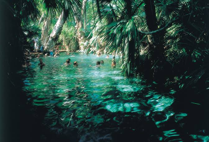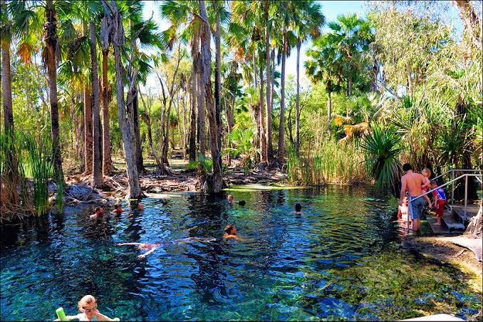 Bitter Springs, Katherine, NT。 The Katherine region is famous for its thermal pools but Bitter Springs, in Elsey National Park, is an area barely touched by man. Snorkel to observe the turtles as you drift with the current in the ethereal teal waters of this palm-fringed waterhole. Free entry.