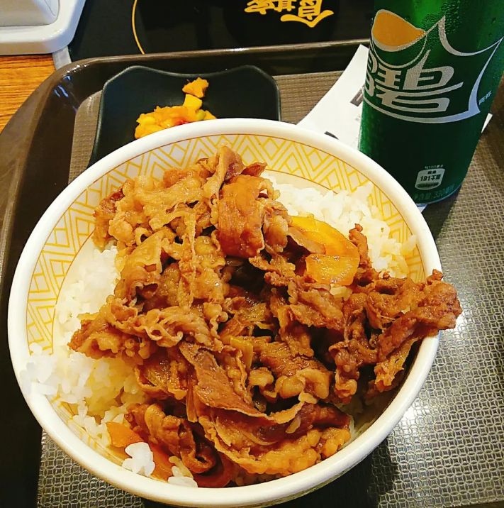 总体来说我觉得食其家性价比还是不错的。 这样一份牛肉饭也就20元,算是比较便宜的,牛肉饼也还行,不过多吃有点油腻。 店面比较干净,刚进来的时候还没什么人,一会便坐满了,旁边一桌有个人对他朋友说,今天说了请你吃日料就是吃日料哦。