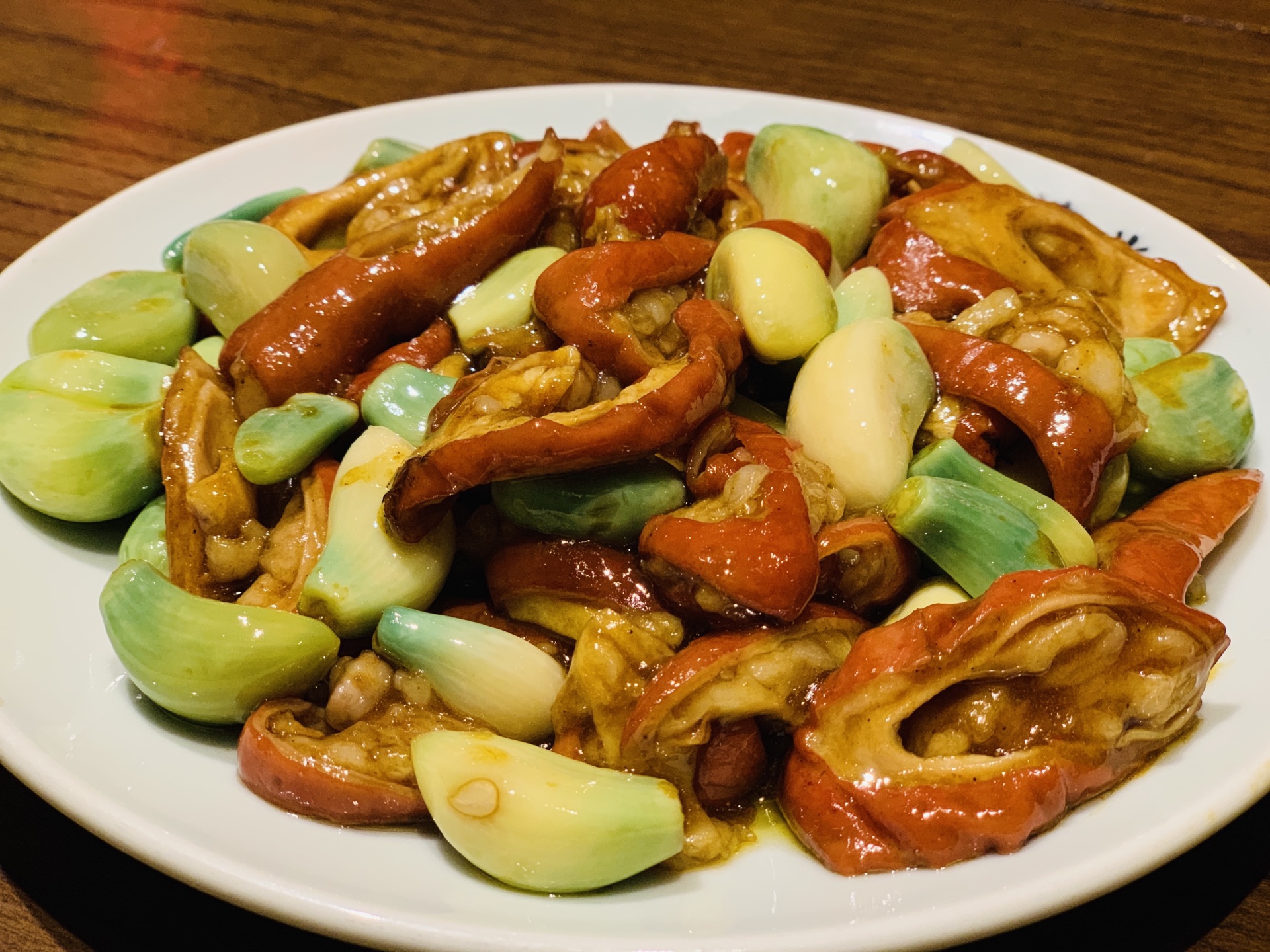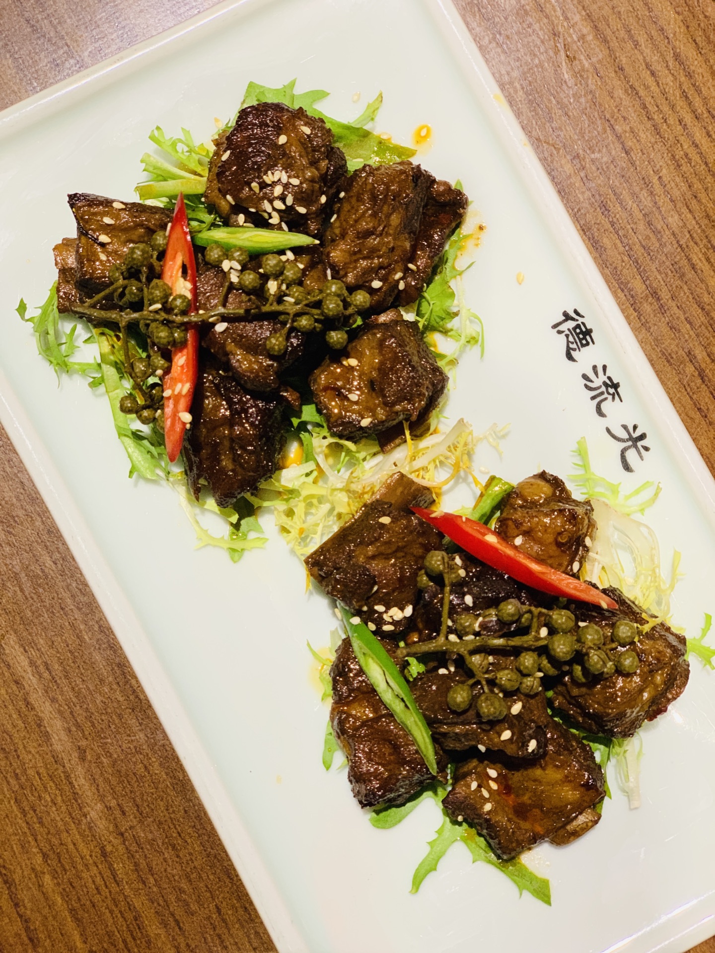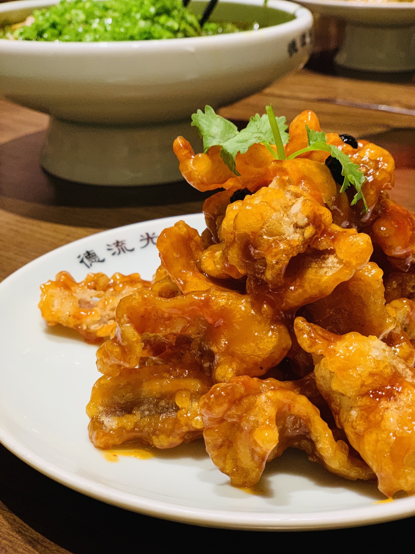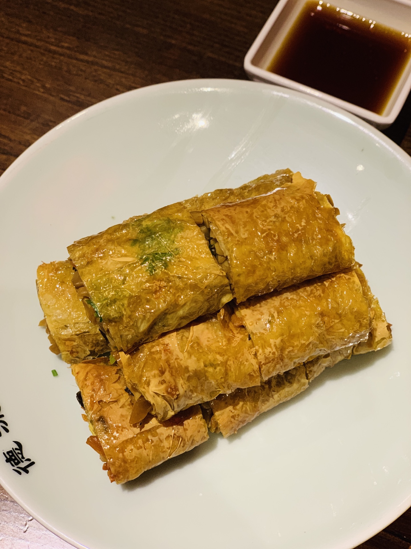 许久没有来地安门了,人潮依旧汹涌,雨后的古建别有一番韵味。 穿过沿街叫卖的人群,找到了烟袋斜街斜对面的德流光。古色古香的门脸儿和装饰透着一股子亲切感。排队时候发现门口的小胖鱼,嘟嘟嘴,蠢萌可爱,一问才知道居然是叫福猫鱼,猫和鱼的合并体么? 居然许多还是宫廷菜的做法和改良,味道也是颇有讲究。 最创意的是百日夫妻,名字很莫名,但吃过后就会顿悟出道理:似海深(参)葱烧海参的技法,海参换做了猪蹄。软滑的肉皮葱香浓郁,咸鲜美味。 居然还在这里遇到久违的一道名菜:开水白菜。开水、清汤在当今都默认是无色无味的白开水。其实在讲究吃喝的古代,完全是一个高级的吃法,这就要提到提清术。由猪鸡牛海鲜等等肉泥慢火熬制,再用鸡胸等肉白扫慢煮,清浊分离。最后加上细雕的白菜芯,看似平凡,却低调奢华有内涵