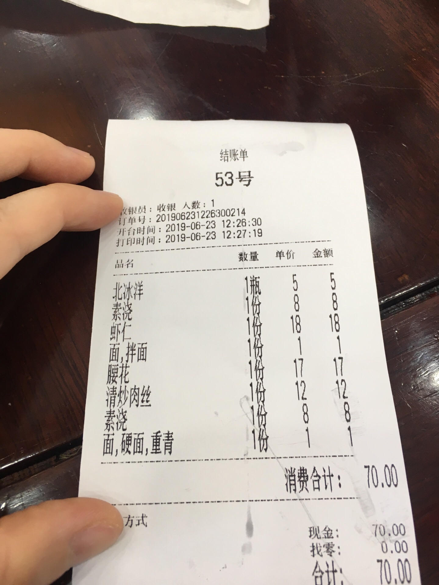周末的中午来这里居然还多人,好在吃面也快,两大一小点了两碗现炒浇头炒素面,一共70元,可以选择...周末的中午来这里居然还多人,好在吃面也快,两大一小点了两碗现炒浇头炒素面,一共70元,可以选择汤面或者热拌面。如果不想吃面这里还有馄饨炒饭。选择挺多的。