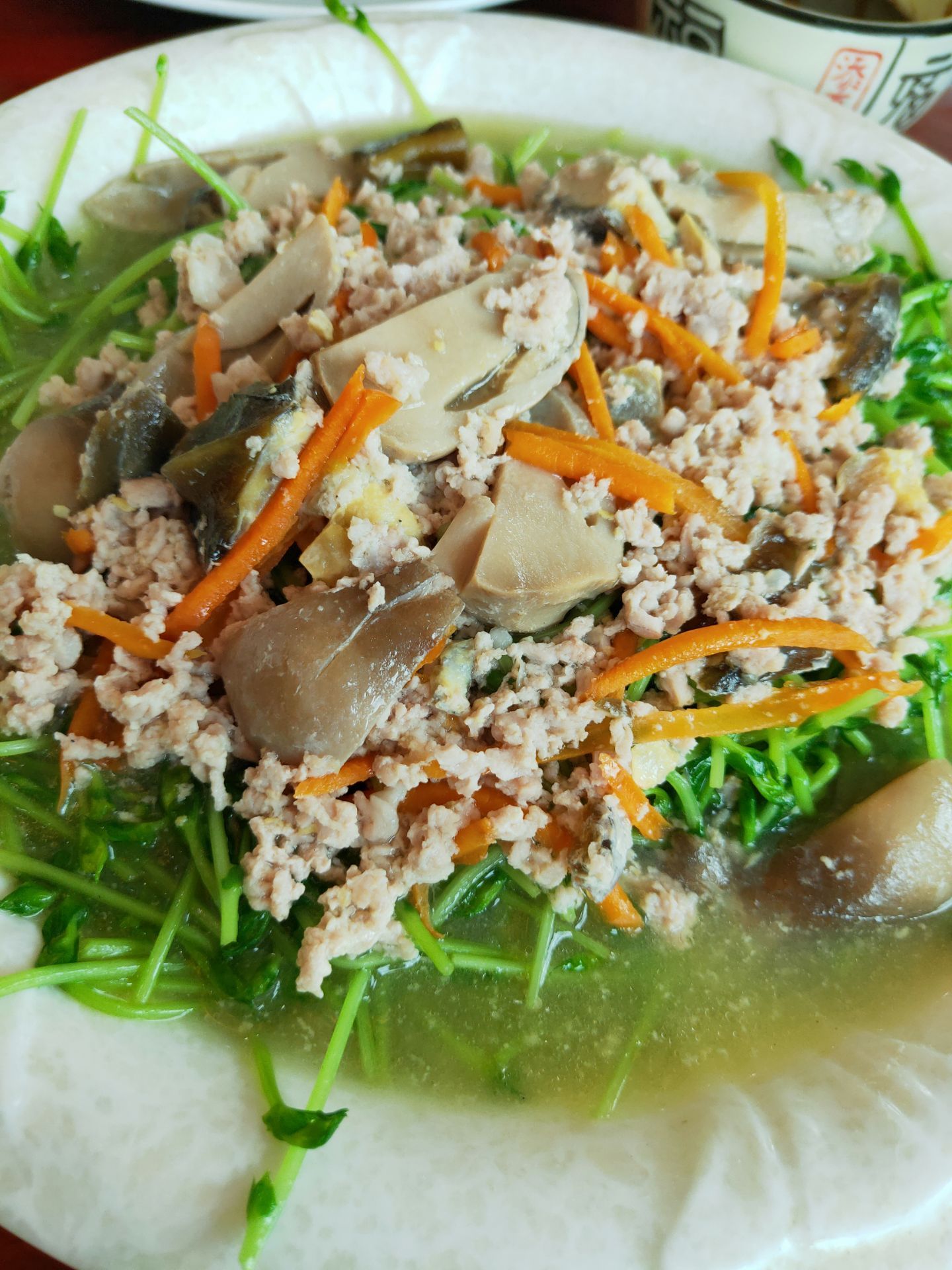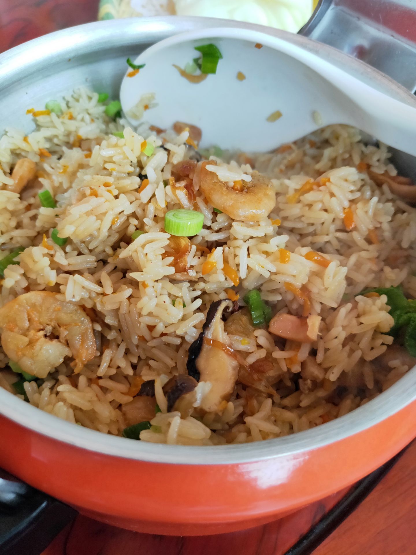 主食海鲜炒饭也是看得到食材很给力,虾仁、鱿鱼、香菇等,好吃看得见,米饭粒粒分明、口感扎实,炒...