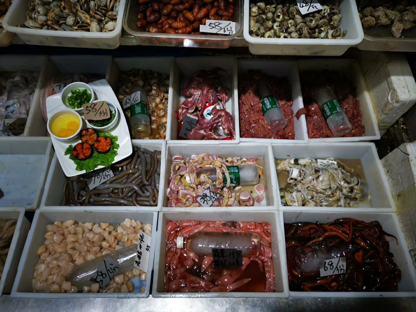 海肠看起恶心,但口感很好。印象最深的就是媳妇鱼,看起丑陋,但肉质紧实。红虾品质特别好,椒盐海兔可口