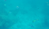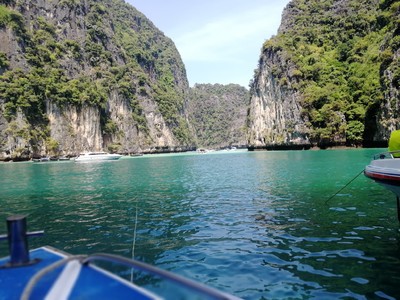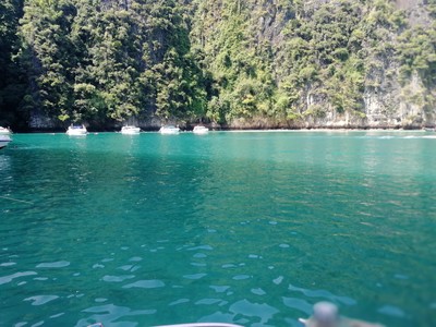 众所周知,在普吉,攀牙湾享有海上桂林的美誉,其实,在碧绿湾也有些许海上桂林的赶脚。在碧绿湾浮潜会看到非常美丽的海底世界。但毕竟是“湾”,看不到海沟。碧绿湾的水下有如此之多的鱼群,是我始料未及的。因为我们刚刚去过皇帝岛一日游,所以一致认为,这里比皇帝岛强上百倍。 除了鱼儿众多,这里的珊瑚礁也是格外的美丽。而昨天皇帝岛的潜点,看到的都是死珊瑚居多。还有,就是不计其数的海胆。明媚的阳光撒到清澈的海底,使原本距离我们很远的屈居在海底的海胆,看上去就如同在自己脚下一般。害得女儿一度不敢在水中直立起身体,生怕一不小心被海胆刺伤。