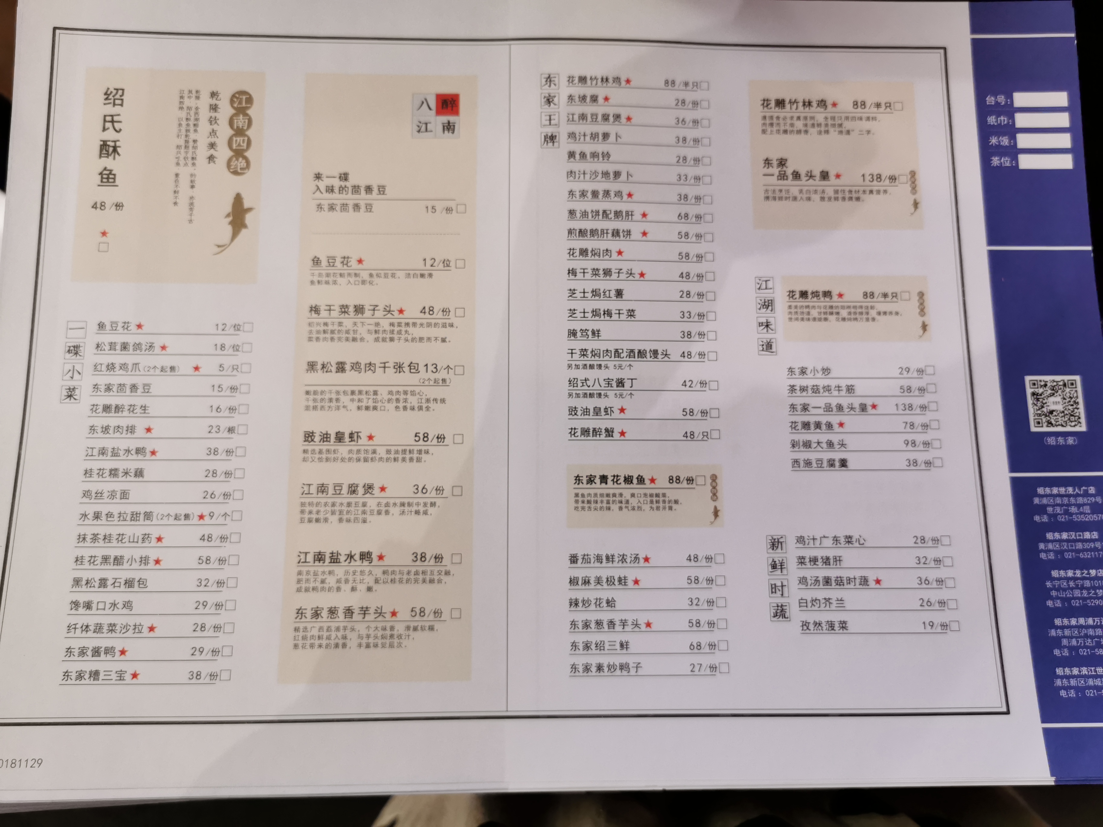 到了商场后开始觅食,这家网评挺高的,于是决定试试。 幸好排队的人不多,而且餐厅门口有提供免费的水和饮品。 进店后,环境很江南风,有看出店家很用心布置,不过略微有点拥挤,桌子也很小,放不了几个菜。 菜品都挺好看的,味道也不错,最最最关键的是价格很实惠,性价比高。 不过不过不过,要提一句,有些装菜的盘子边上都摔破了。