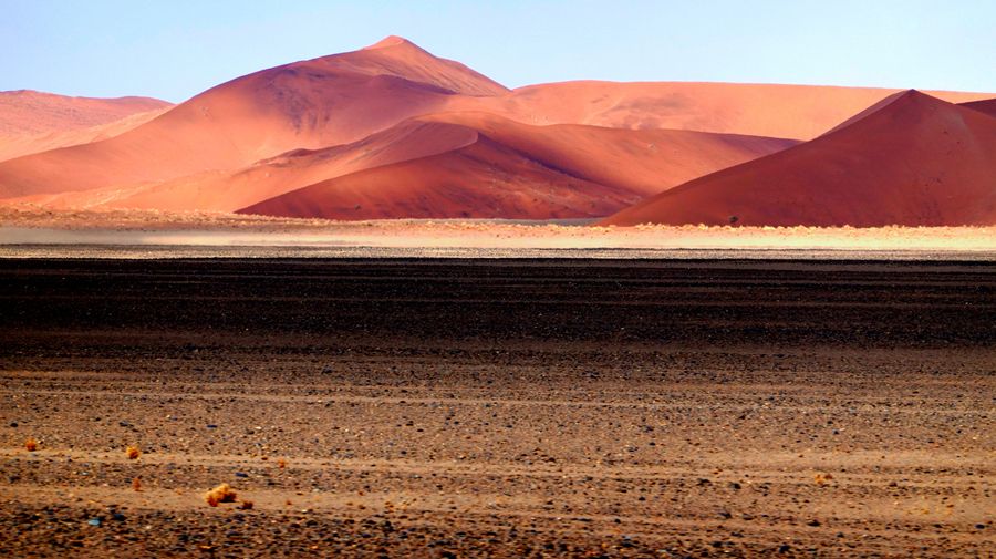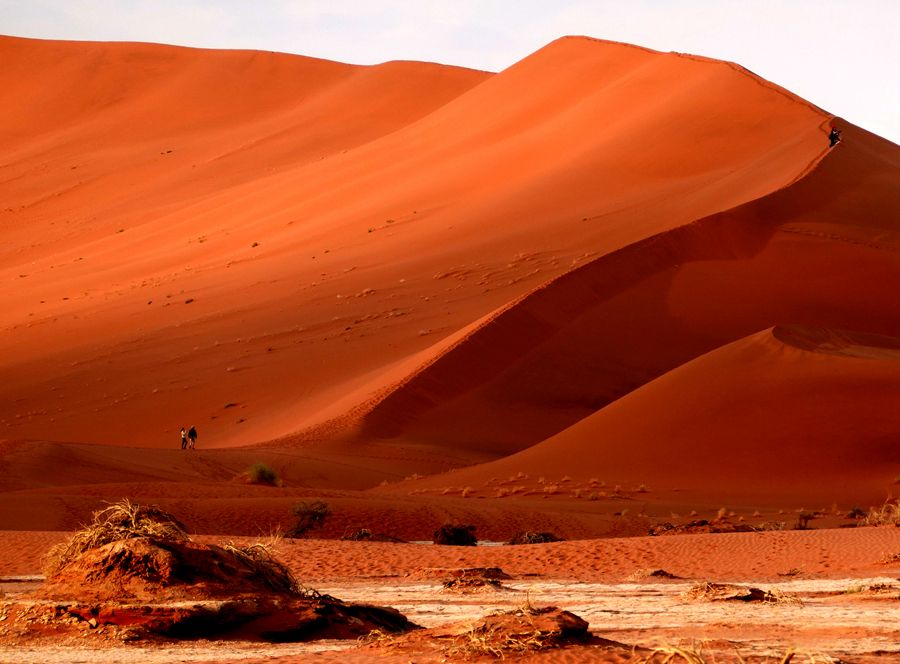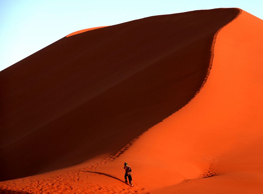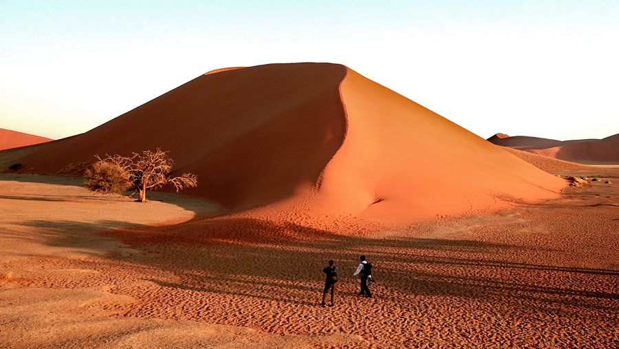 在这片瑰丽的红沙漠中,精髓就是地球上最大最古老的沙丘,45号沙丘,以及充满了荒凉之美的死亡谷,到了夜晚,漫天繁星铺天盖地笼罩着亿万年前的红沙漠,仿佛能够听到远古的声音,这里的体验终身难忘。日出日落是这里最迷人的时间,有条件的话可以住宿在园区内的酒店,因为只有一家酒店,否则关门时间是在日落之前,住在外面的话就没有办法等到45号沙丘的日落景观,与最佳的光景擦肩而过就太可惜了,45号沙丘因为距离景区门口45公里而得名, 有“世界最高的沙丘”、“地球最美的沙丘”之称。高近325米,因为优美的外观和线条,已成了纳米比亚红色沙漠的名片,登上《国家地理》的封面而一举成名。日落那一刻,你会发现沙丘红的似乎不那么真实。太漂亮了。 随缘看世界
