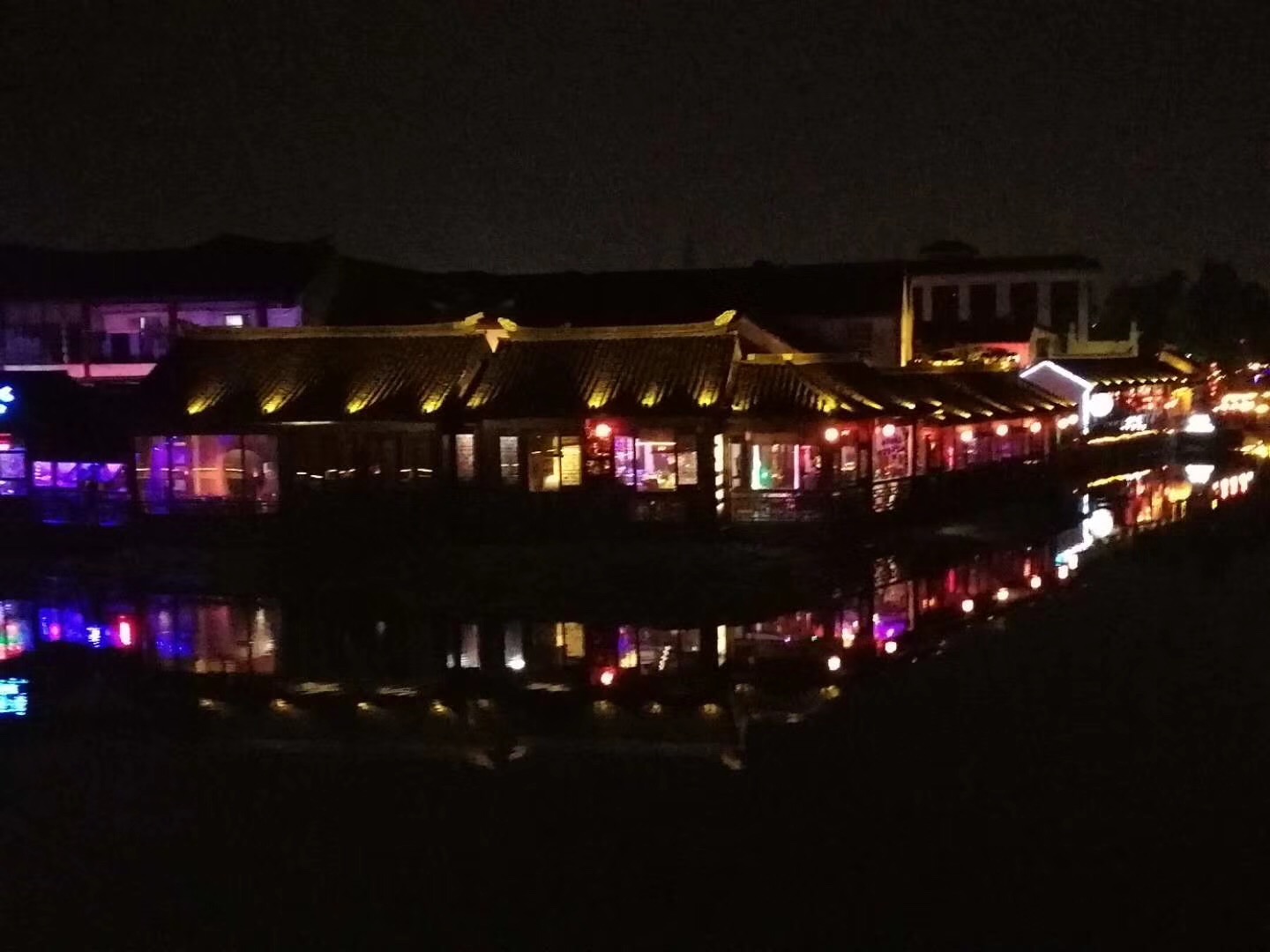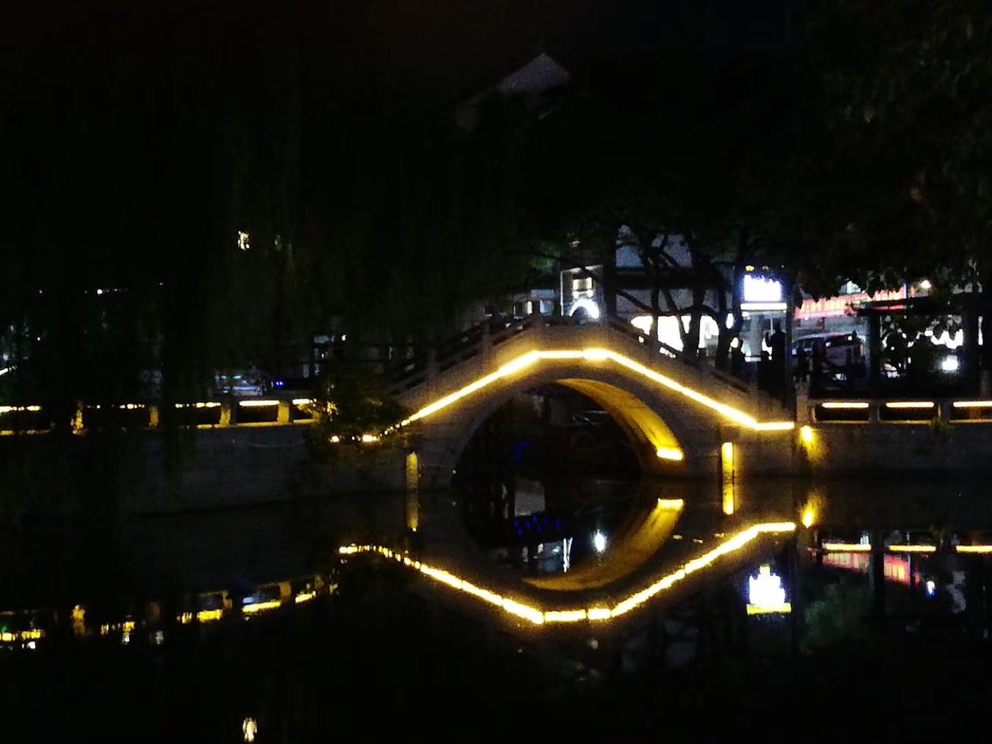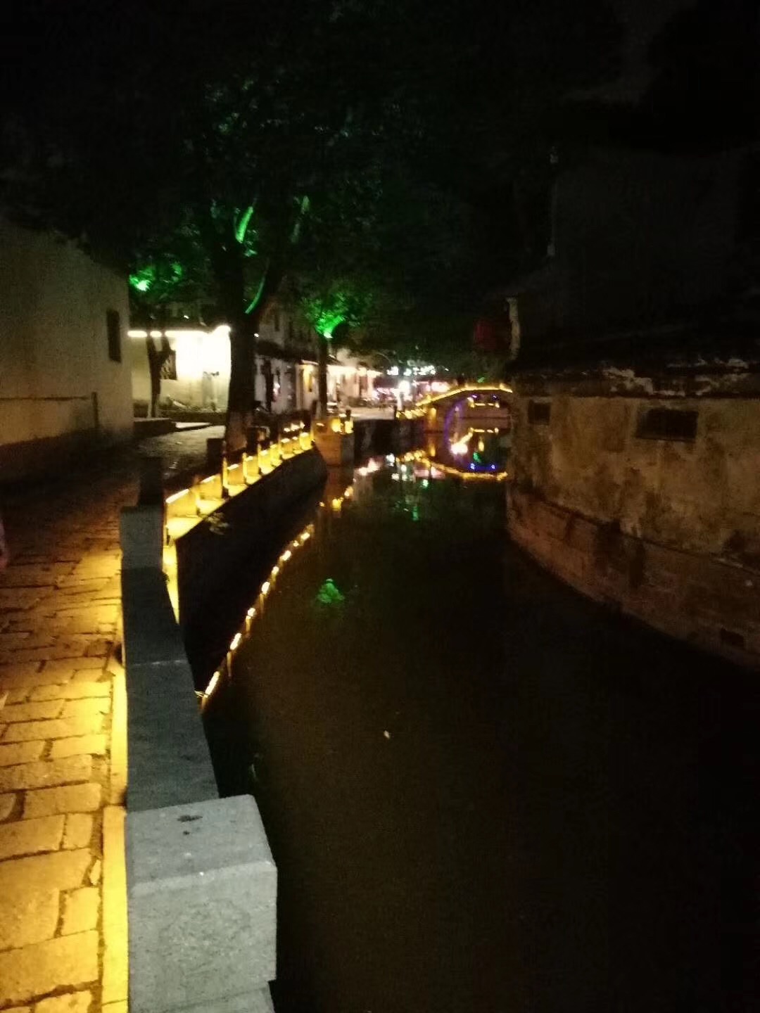 我们来到了同里的主景区——一条宽约五六米的小河,站在小河旁,向着河水尽头望去,绿水映着苍树、蓝天、黑瓦、白墙,真是一幅洁净的山水画。岸边一圈的栏杆、凳子都是用石头制成的,特别是凳子,用的还是花岗岩的,坚实地守护着这条穿越古今的河流。