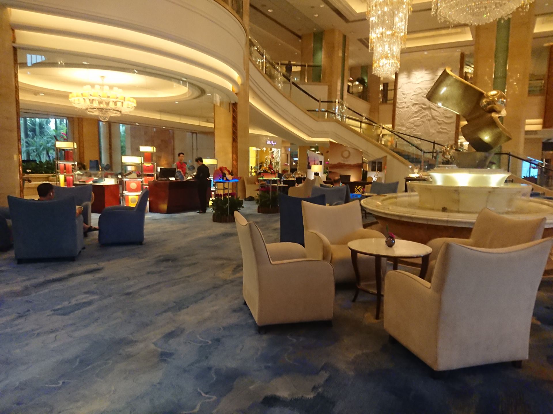 另外这边下午的话是有那种英式的下午茶套餐的,晚上的话也可以喝一些东西,喝点香蕉什么之类的,环境非常好这是广州香格里拉大酒店的大堂吧,很多时候你在办理入住的时候等人的时候可以来这边喝一杯。另外这边下午的话是有那种英式的下午茶套餐的,晚上的话也可以喝一些东西,喝点香蕉什么之类的,环境非常好。