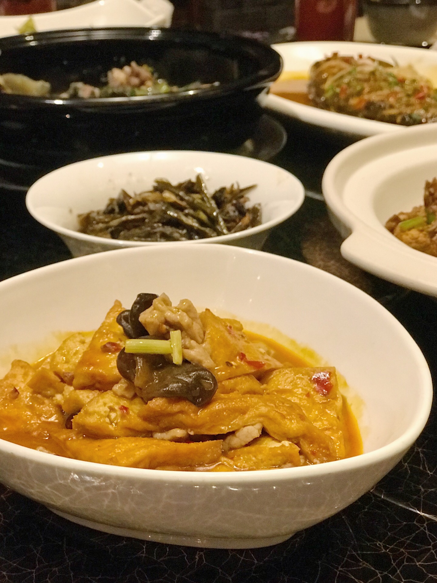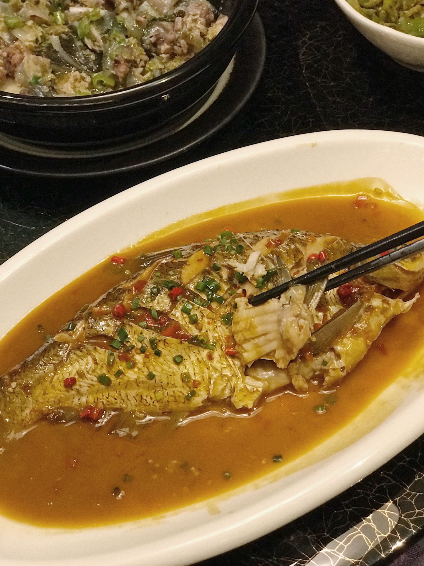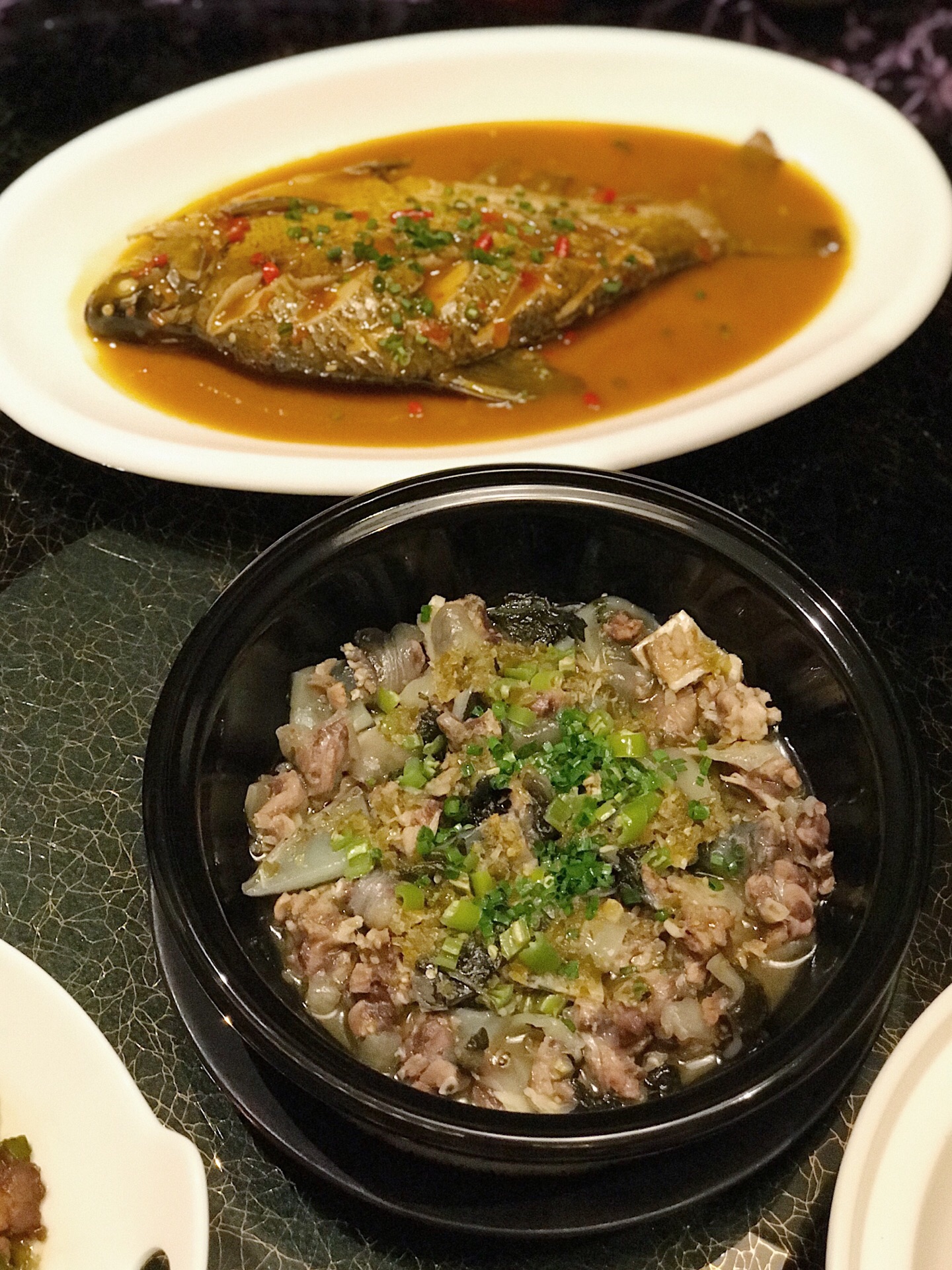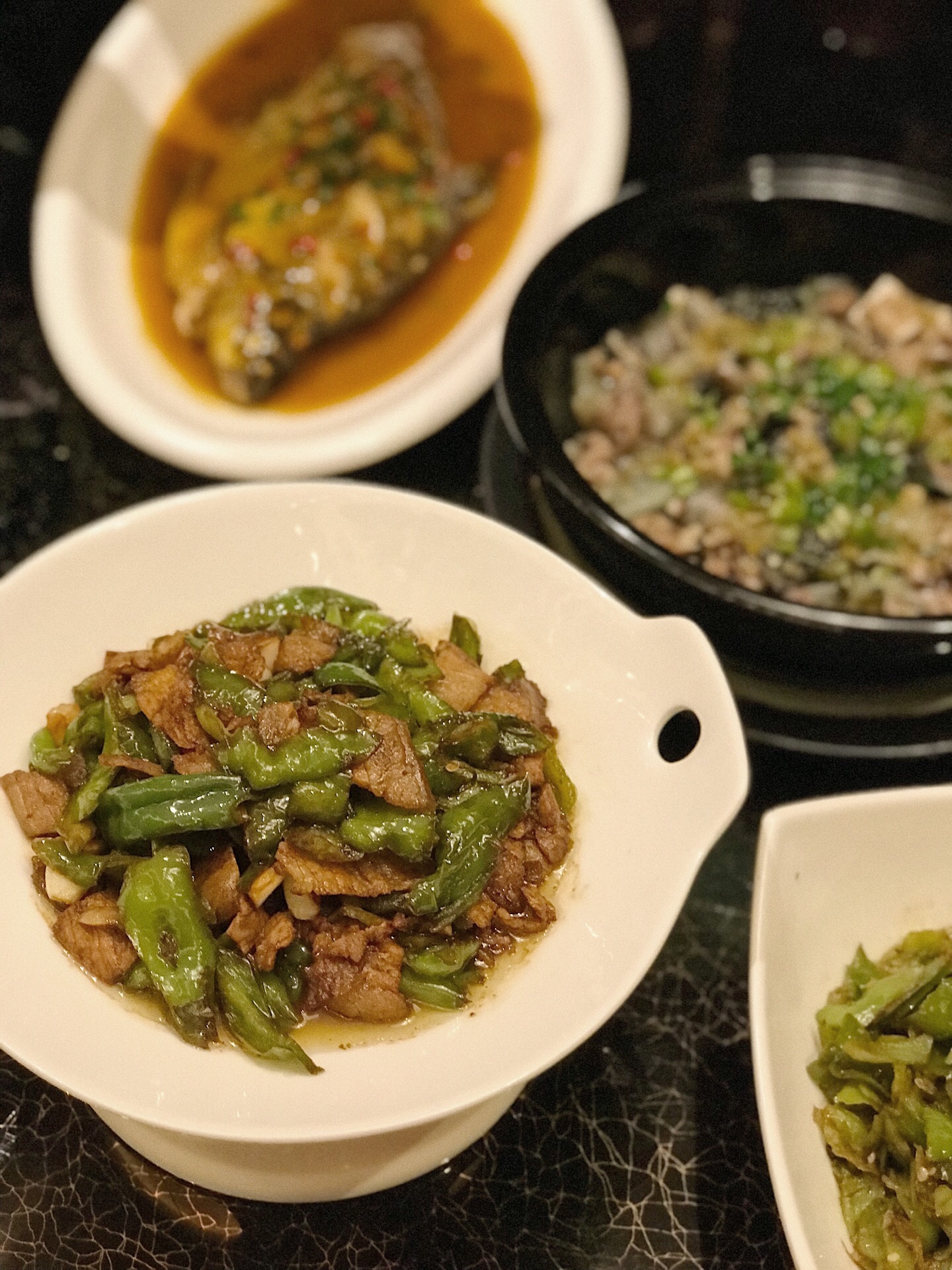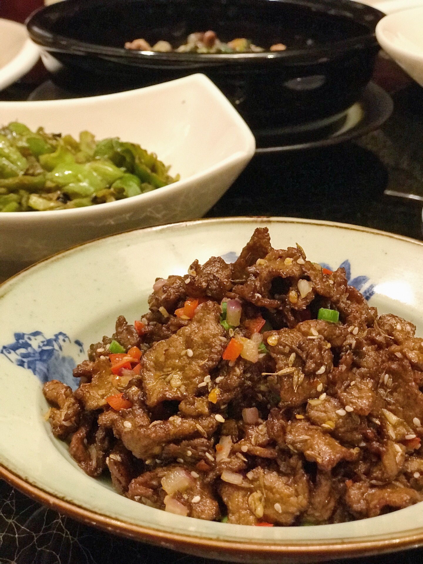 :湘秀湖南餐厅 :长沙北辰洲际酒店一层 :人均180元-240元 ⭐️【孜然湘西黄牛肉】:这道真的是我心中的,全场最佳。还没端上桌孜然的香气就已经弥漫整个包厢,正宗的湘西黄牛肉肉质紧致弹嫩还不塞牙!肉质虽然细嫩但很有筋道感觉有点像在吃牛肉干!撒上一把白芝麻和孜然香到可以吃下三碗饭!除了孜然牛肉的做法,还可以选择小炒牛肉、水煮牛肉、熘牛肉等自己喜欢的做法~ ⭐️【红烧沅江边鱼】:边鱼可以选择清蒸、红烧、豆辣、黄焖等做法,精选了个头大小在一斤左右的新鲜湖南沅江的家鱼,浓郁的汤汁渗入了细嫩的鱼肉,鱼肉白嫩,肉质鲜美。非常入味口感又很有层次感。没有一丝鱼腥味,酱料的调味刚刚好,鲜辣咸香~ ⭐️【姜炒湖南仔鸡】:老姜的微辣口感很好的给鸡肉提了味,选用的6个月左右的纯山地鸡,鸡肉大小切的刚刚合适很入味,鸡肉紧实弹嫩!这道菜也不会特别辣,不太能吃辣的朋友也完全️!这种山地鸡采用剁椒蒸鸡和溜鸡肉的做法应该也完全不会踩雷的! ⭐️【小炒宁乡花猪肉】:宁乡花猪,湖南“三宝”之一,猪肉中的极品,炒、熘、炸、煮无论怎么做都好吃!小炒花猪肉肥瘦均匀,瘦肉口感紧致而有嚼劲,肥肉肥而不腻。搭配的青椒微辣可口,一口肉一口辣椒,超级下饭。 ⭐️【黄焖洞庭甲鱼】:洞庭湖的纯种甲鱼,不需要多余的配料与调料,裙边肥美稍稍黏嘴,肉质紧致鲜美。稍稍的胡椒味提香了整道菜又没有抢掉甲鱼本身的味道。一口下去满满都是胶原蛋白。建议不要选择太过复杂的烹饪方法,黄焖、清蒸、清炖、红烧都能很好的保留住甲鱼的口感喔。 ⭐️【娭毑煎蛋】:据说这是主厨童年时他的娭毑常给他做的一道菜,非常朴实但却真的不普通!乡里土鸡蛋➕梅干菜的煎蛋是我从未尝试过的味道,鸡蛋薄薄的,又非常嫩,梅干菜的微酸味道丰富了口感。还放了青椒让这道菜变得更加下饭!据说还有醋焖、炒、煮等做法! 湘秀餐厅最新上新的菜品们各有各的风味,品种丰富性价比还极高。竟然可以不仅仅局限于菜单点菜,根据自己的口味和主厨一对一沟通定制自己最喜欢的做法!主厨大叔据说是湘菜大师的徒弟,手艺是真的没话说 还有湘秀餐厅装修真的蛮气派的,浓厚的中国风装饰风格,用餐环境和餐具什么的都很高档,无论是宴请还是家庭聚会,都是再合适不过的餐厅了