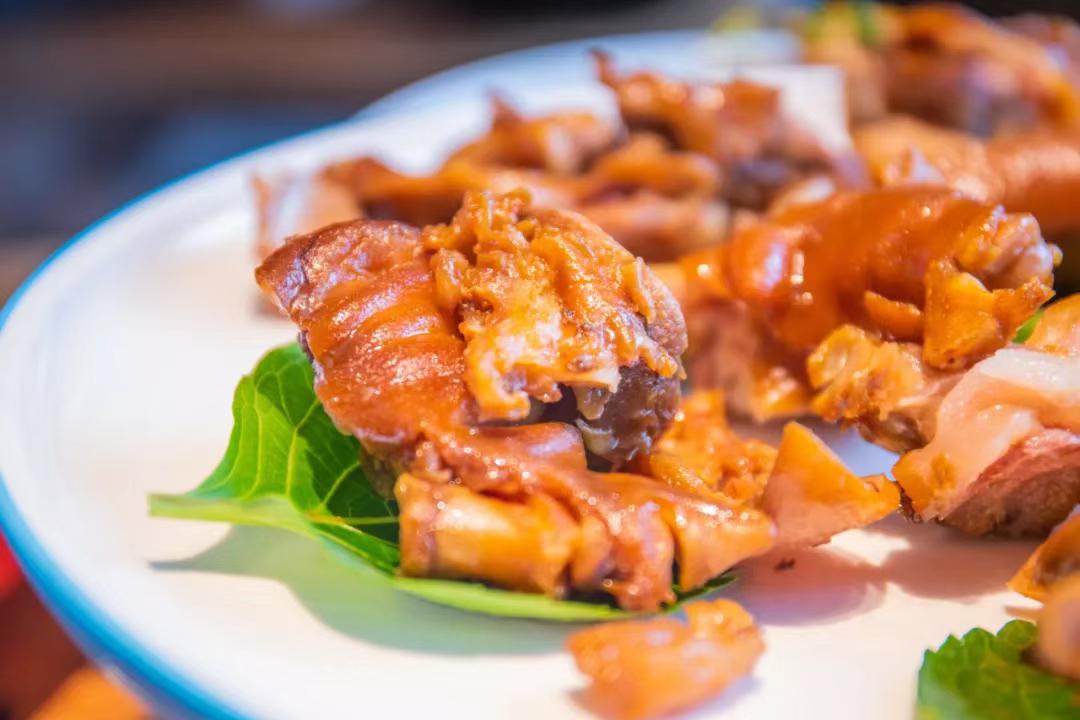 三珍洪湖莲藕汤 店内最受小仙女青睐的是这碗三珍洪湖莲藕汤,有汤又有料,边吃边做SPA,这个夏天滋润又补水! 民稼卤猪蹄 卤猪蹄不管是下酒还是徒手开啃都能把你的味蕾满足得巴巴适适的~很多人临走还要打包回家,边啃边刷《破冰》,别提多快活~