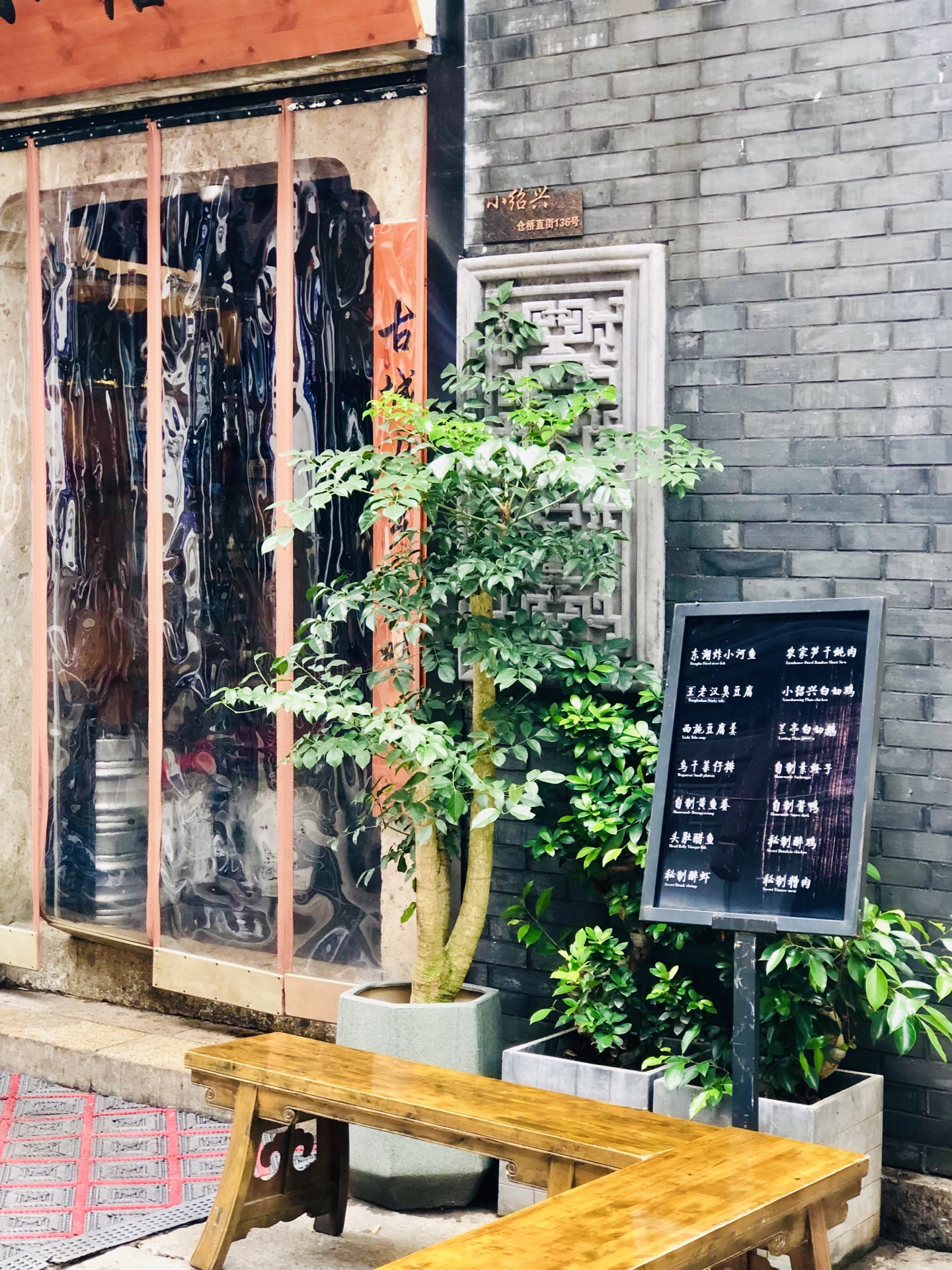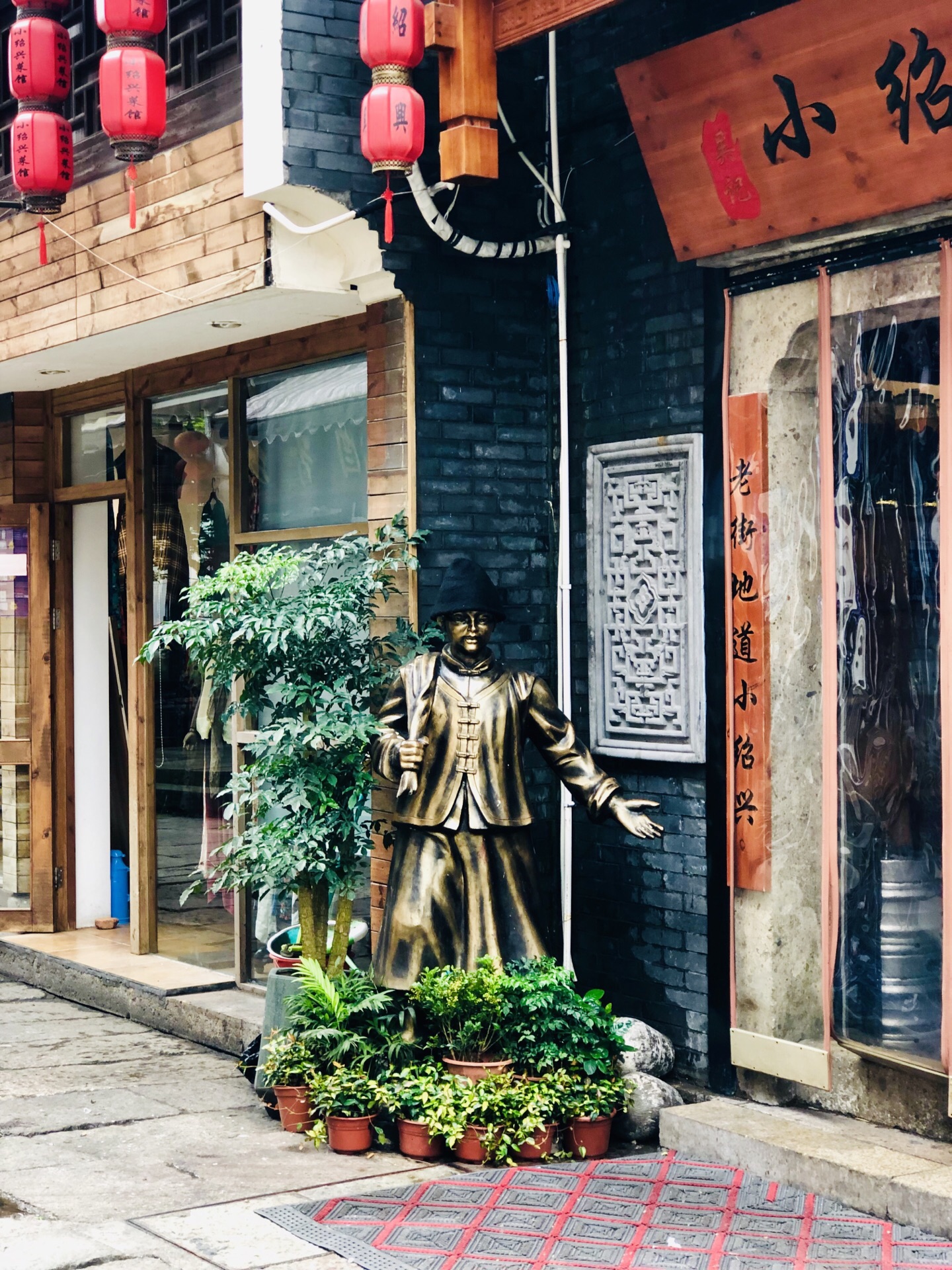 小绍兴菜馆 来了绍兴是一定要吃一顿绍兴菜的 在仓桥直街,开着的餐馆中 比较有名的绍兴菜馆还蛮多的 如果来的人多,可以考虑多点一些菜 每个都尝试一下哦 坐标:小绍兴就是在仓桥直街内的,直接在主街上走走,然后就可以看到 门口有一个戴乌毡帽的铜人,看上去就是请你进去品尝品尝,请 环境:古朴的古镇风格 门口还摆了好多的凳子,如果这里需要等位,很贴心的给你椅子休息一下 还有菜单,没有吃过的可以考虑一下菜品名字再定夺