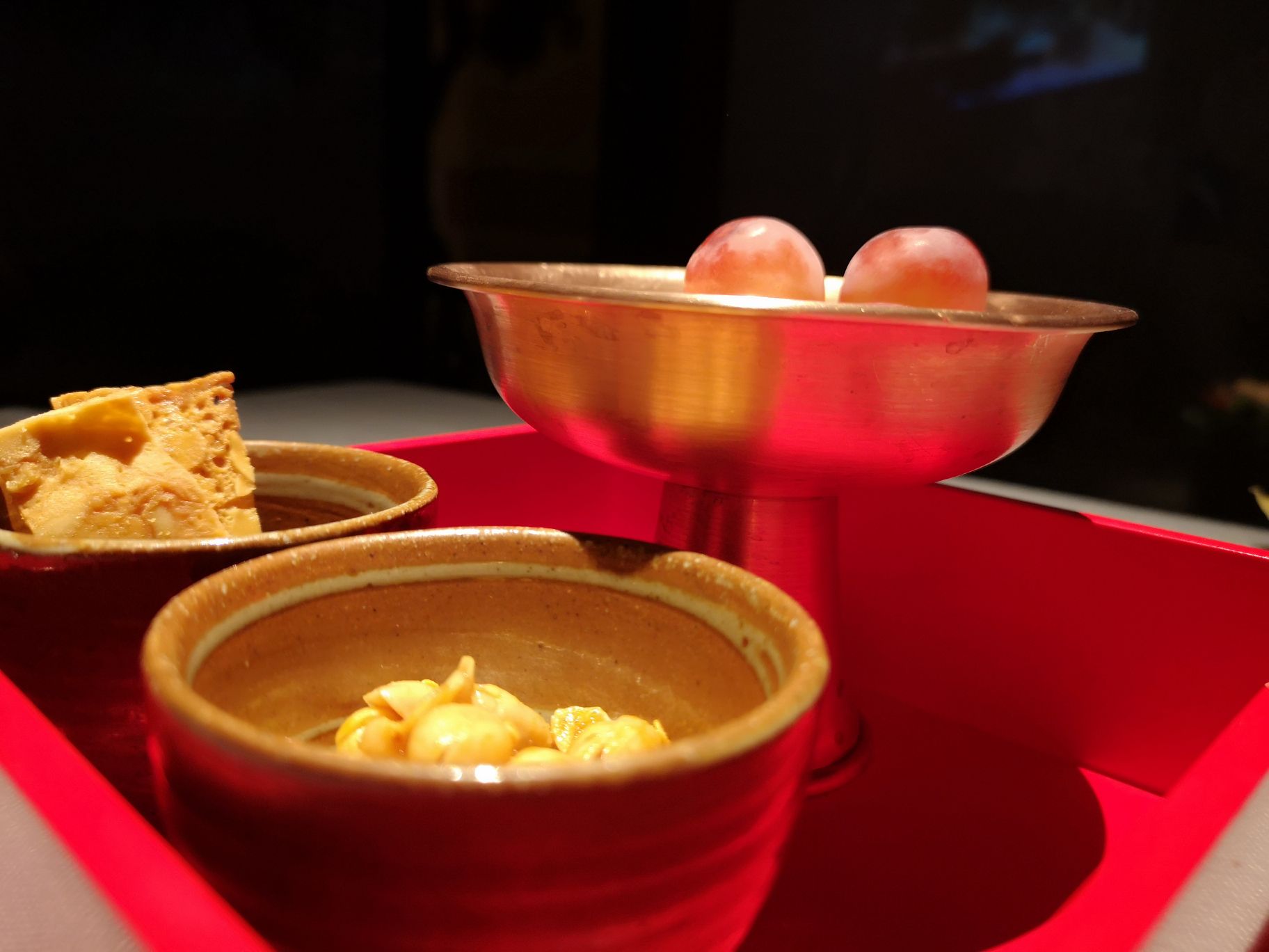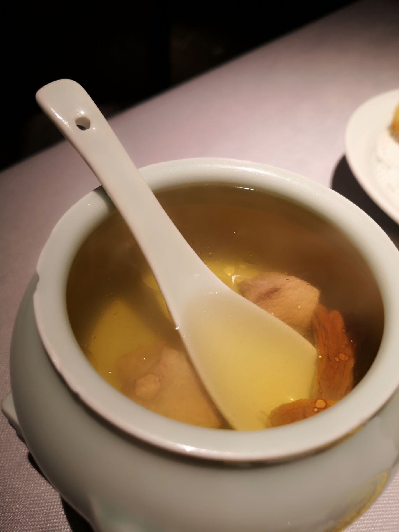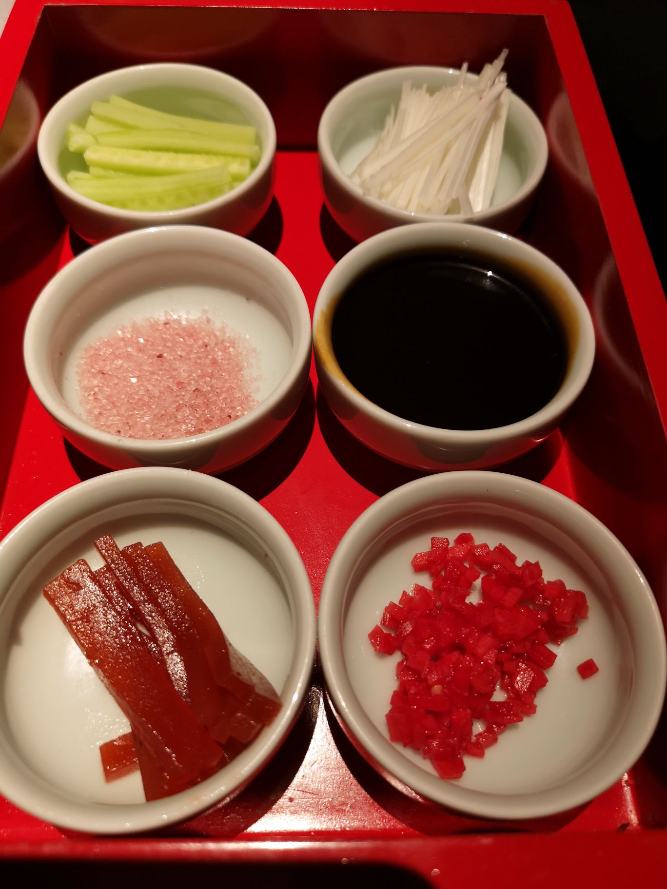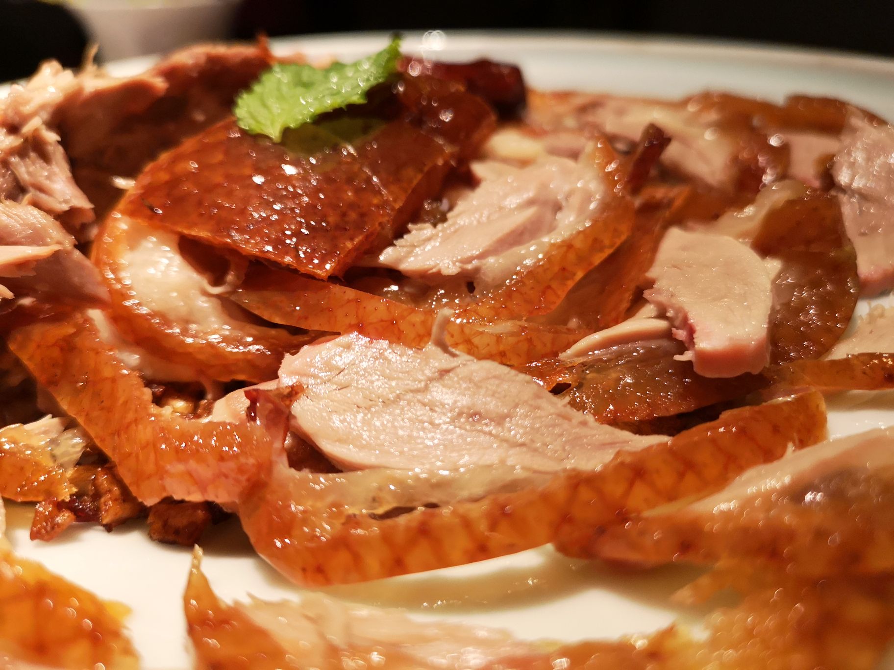 前阵子好多人都去,还说好吃,团购了双人餐,和老公一起去拔草[拔草][拔草][拔草] 周六已经吃了旁边的云南菜了,当时玖伍就排队,想着还是平时中午人少些,幸亏定了位否则还得等位,真是火啊! 【菜品】烤鸭半只~鸭松,鸭肉,鸭皮,一盘你可以都吃到了(*^▽^)/★*☆玉兰片夹着鸭松吃,菜的甜,肉的油脂混合,这就对了!鸭皮沾上玫瑰糖,入口即化,不腻!鸭饼卷鸭肉,随意搭配各种配料,最高级的是,每张饼之间用纸隔开,这才是周到 【樱花虾拌菜心】~小虾提鲜,菜心我是好久没这么吃了,因为总觉得夏天的白菜没有冬天的好吃,这个感觉还不错。 【上汤蘑菇苋菜】一开始端上来的也是汤菜,我也没注意,就吃起来了,没过一会儿,有端上来一盘,我说怎么两份?原来第一个是上错了!因为我们没有主动提出来,服务员始终就没说,直到我们问,他们才说,我们上错了,您就吃吧,是我们的错。不像有的地方肯定会给你端走,然后怎么处理就不知了。赞一下 【牛肉】说是这个牛肉十八秒出锅,口味有辣还有酱香,是湖南菜系延伸出来的,好吃,肉嫩。 【汤】一个松茸鸡汤,一个银耳雪蛤,盛器很美,始终温热。我喜欢这种貌似甜品但是不甜的感觉我看我老公的汤也喝得好干净(✪▽✪) 上菜前还给了开胃小吃,对了!我点了主食是糖油饼,因为看很多人说香!我觉得可以不用去黑窑厂排队了,来这里也能吃到好吃的。 等位的水果都是特别高大上的哈密瓜,还特别甜,给小宝拿了两条吃。