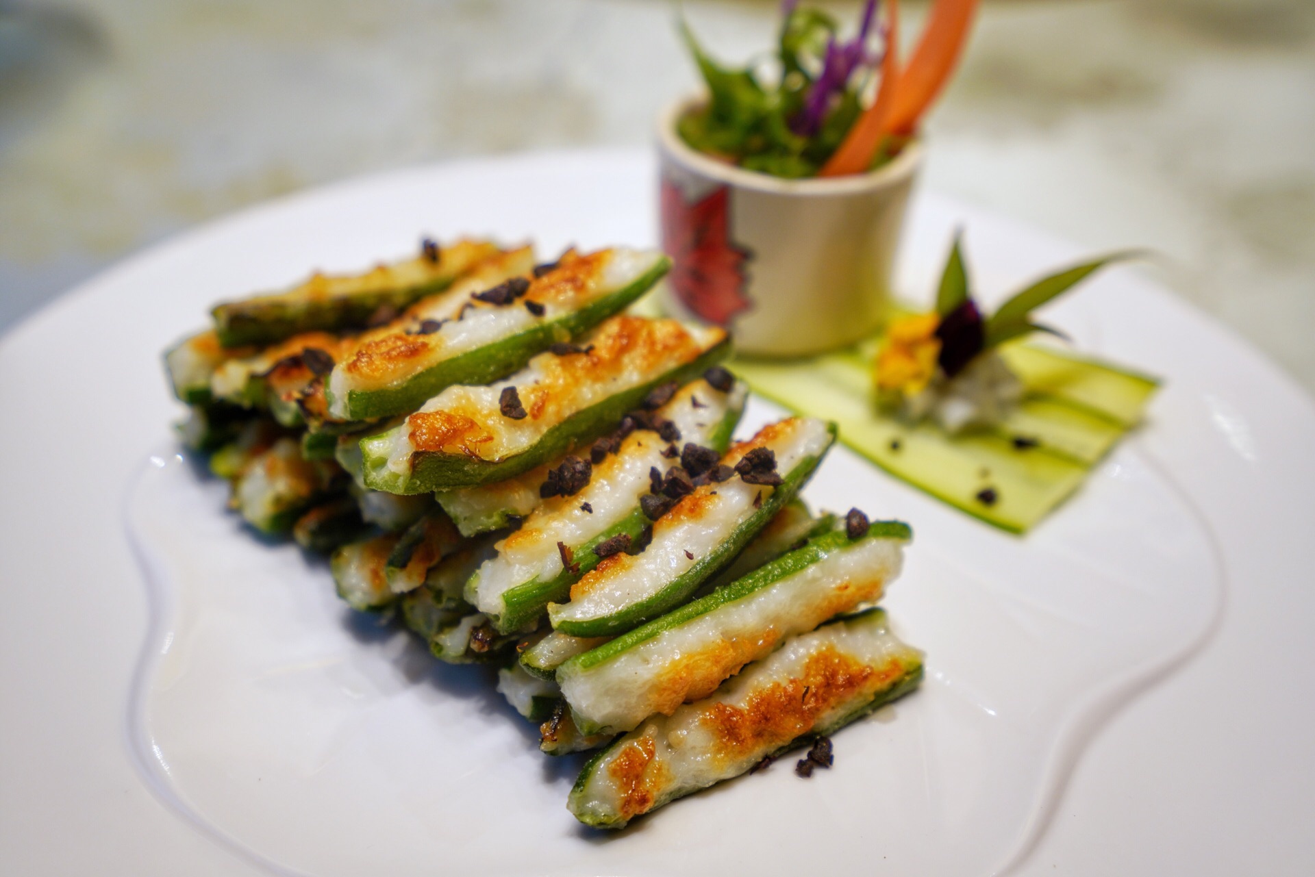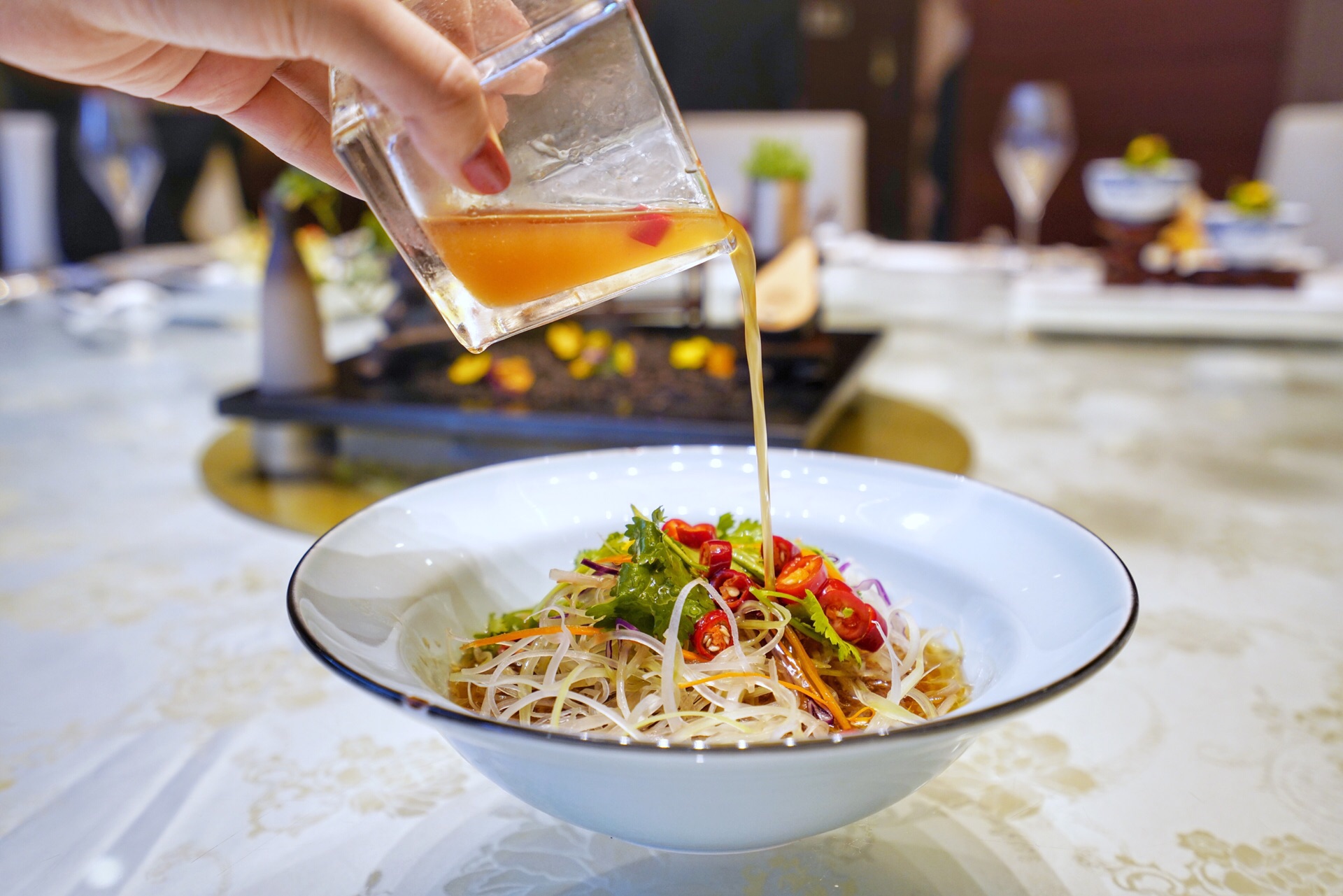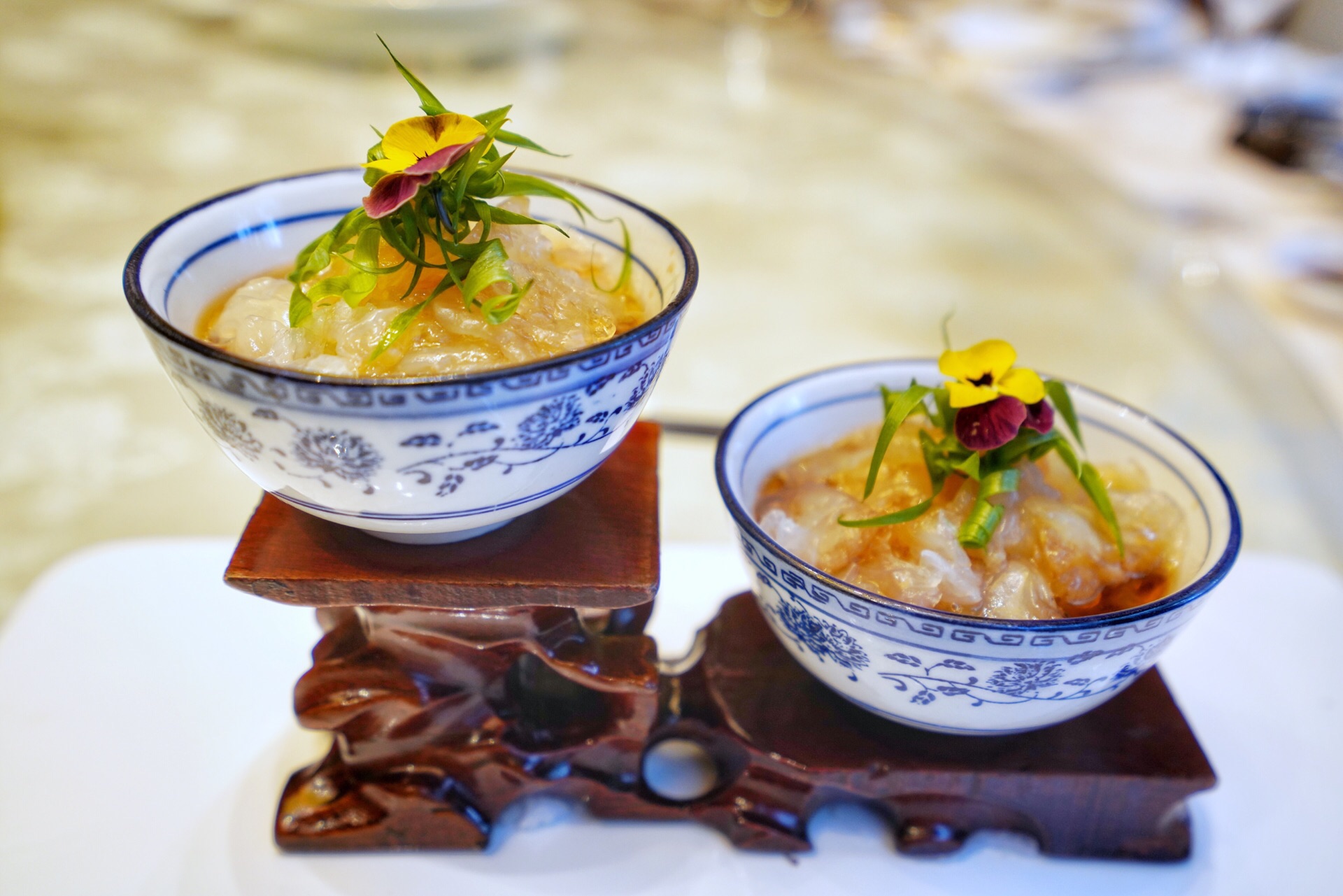 这次入住厦门北海湾惠龙万达嘉华酒店,午餐就选择了这里的中餐,这里的中餐有着独立的大门,由一楼走进就会有迎宾来领位,20几间的包厢,中式的装修风格让人倍感温馨典雅。 海湾四彩碟:降龙十八掌、怀旧妈妈菜、凉拌海蜇头、羊生西芹丝,四道菜以开胃为主,带着清爽、酸辣的口感,让人瞬间打开了味蕾,每一道从摆盘中就出其精致。 味淋海螺刺身冰盘,随着一阵仙气飘过,三文鱼、海螺、红酒鹅肝组合的冰盘就在眼前,入口即化的鹅肝、鲜嫩弹牙的三文鱼、带着酱汁的海螺,每一味都是那么鲜美。 煎酿肉末黄玉参(位),非常有创意的一道菜,虾浆与海参融合为一体,鲜中加鲜,带着独特的酱汁,口感上非常独特。 明炉翅汤珍珠龙胆(位),龙胆鱼的鲜美自不必说,鲜嫩的肉质与浓白的汤汁,鲜美的不可言喻。 黑蒜香草澳洲牛仔骨、酱皇煎五头鲜鲍配芦笋、XO酱花枝爆元贝,豉椒汁爆木鱼秋葵,都非常不错。 御品金瓜封肉炒饭(位),吃过很多家的封肉,这道独特的封肉炒饭倒是第一次吃,封肉本就软烂,切碎了放在炒饭中,独特的香味,颗粒分明,吃上一口就爱上了。吃完饭不要忘了金瓜的肉一定要吃噢,炖的软糯,带着丝丝甜味还有饭香,只有两个字好吃。