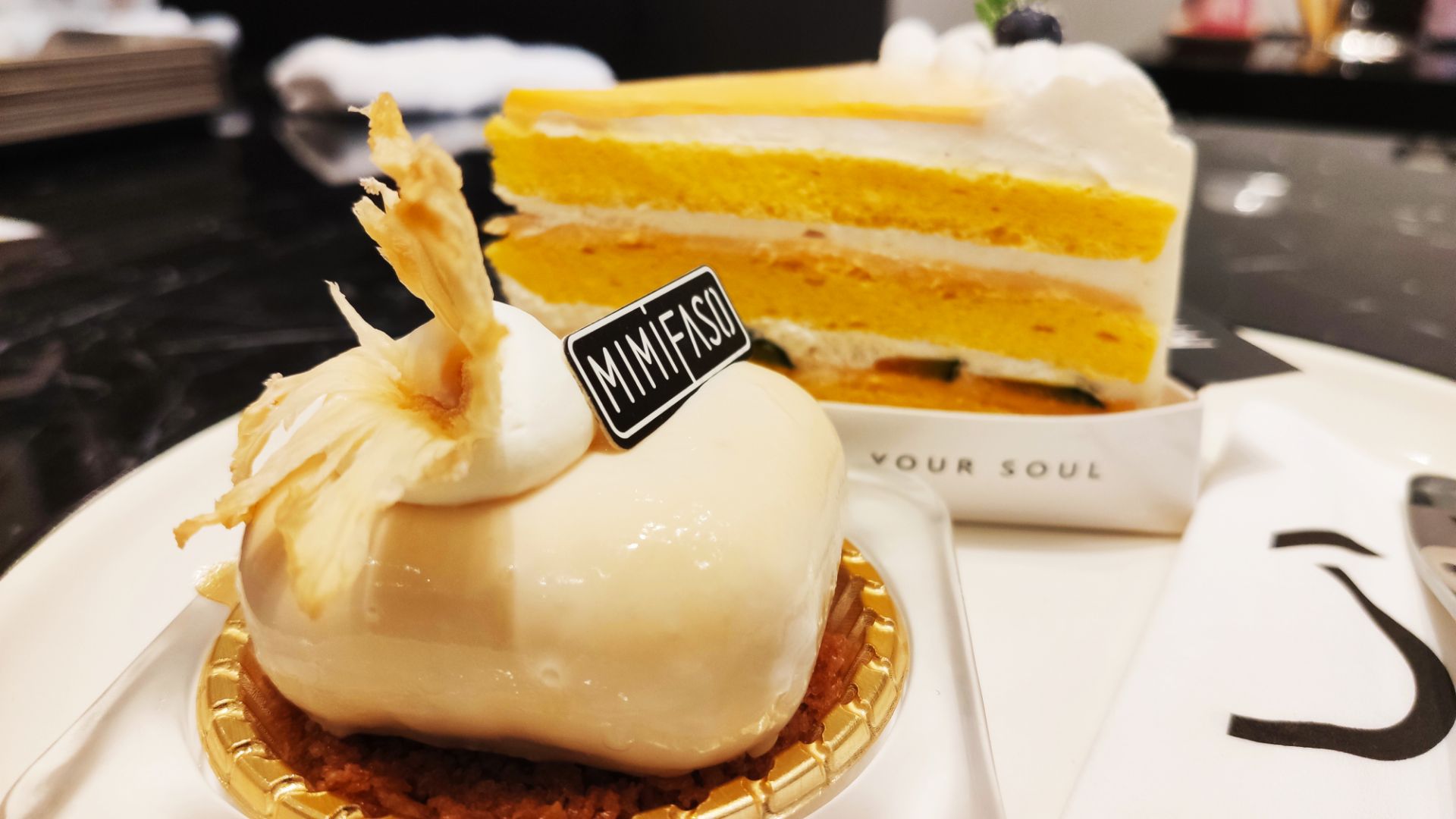 打卡君尚广场附近的网红甜品店“MIMI FASO”位于会展路会展北里50号-104,一直喜欢他们家的甜品和装修非常高大上,时尚简约让人非常舒服。 |起司奶酪南瓜蛋糕^蛋糕好吃南瓜不会太甜太腻,奶油很细腻口感绵密。 |日香芒^颜值爆表很适合拍照,他们家的奶油我一直都很喜欢! |白桃乌龙^桃子系列已经风靡厦门每个饮品店了,他们家也不例外,桃子质量很好喝起来口感非常不错!