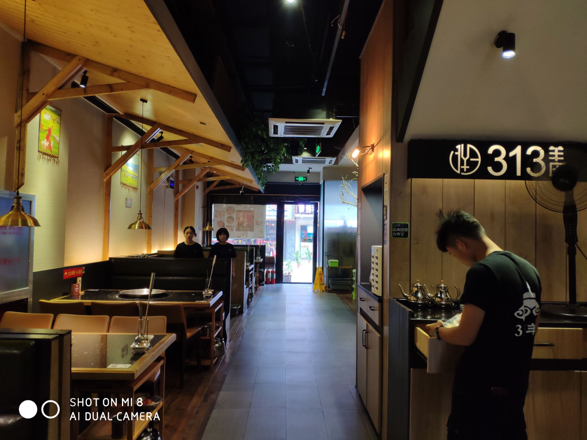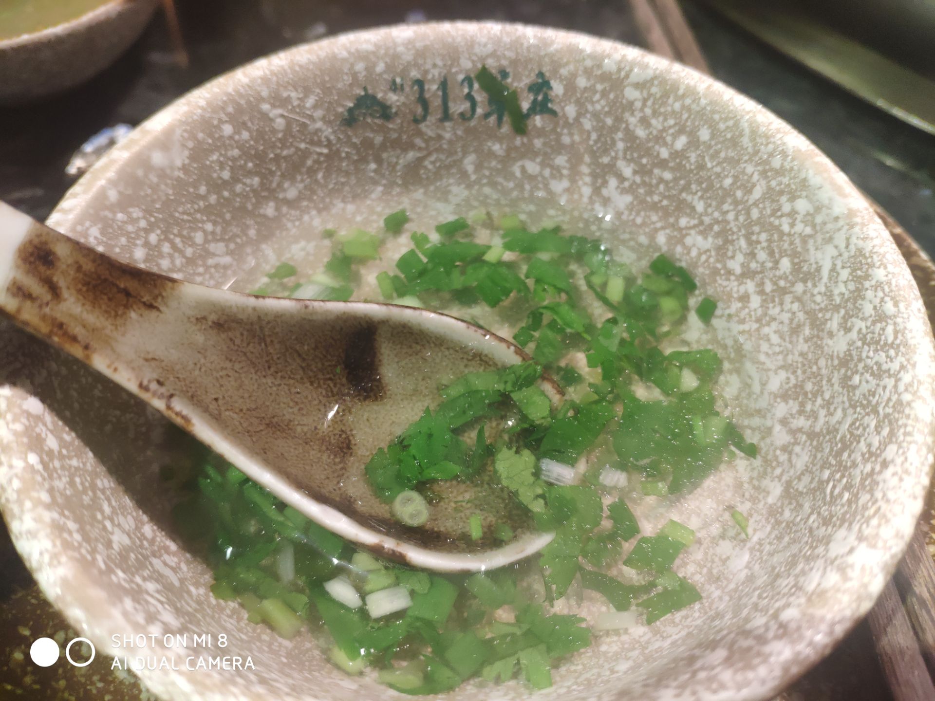 313羊庄铁锅烀羊(原谅我几次都不能将店名说完整,这下好了,写一遍应该记住了 位于万塘汇美食街,在一众火锅店传统风格的店面中,313羊庄显得现代简约。 进门一侧是现点羊肉的展示柜,再进去大堂桌位间比较宽敞,桌子中央置一口大锅。 服务员将洋葱蒜头姜片红枣枸杞等料入油锅炒制,加水再加鲜羔羊肉,开始炖煮养生汤。煮开后小哥哥先撇浮沫,然后十五分钟样子可以喝汤。 第一碗原味清汤,第二碗加香菜小葱,第三碗加韭菜汁,第四碗加蔬菜汁,尝到了不同的添加,相同的是鲜美清香的羊汤,很喜欢喝这羊汤呢!杭州闷热难耐的黄梅天,就靠这碗羊汤祛湿气了! 羊肉鲜嫩好吃,蔬菜新鲜,量足,尤其菌拼,赞一个。手擀面爽滑筋道,就着羊汤非常赞。