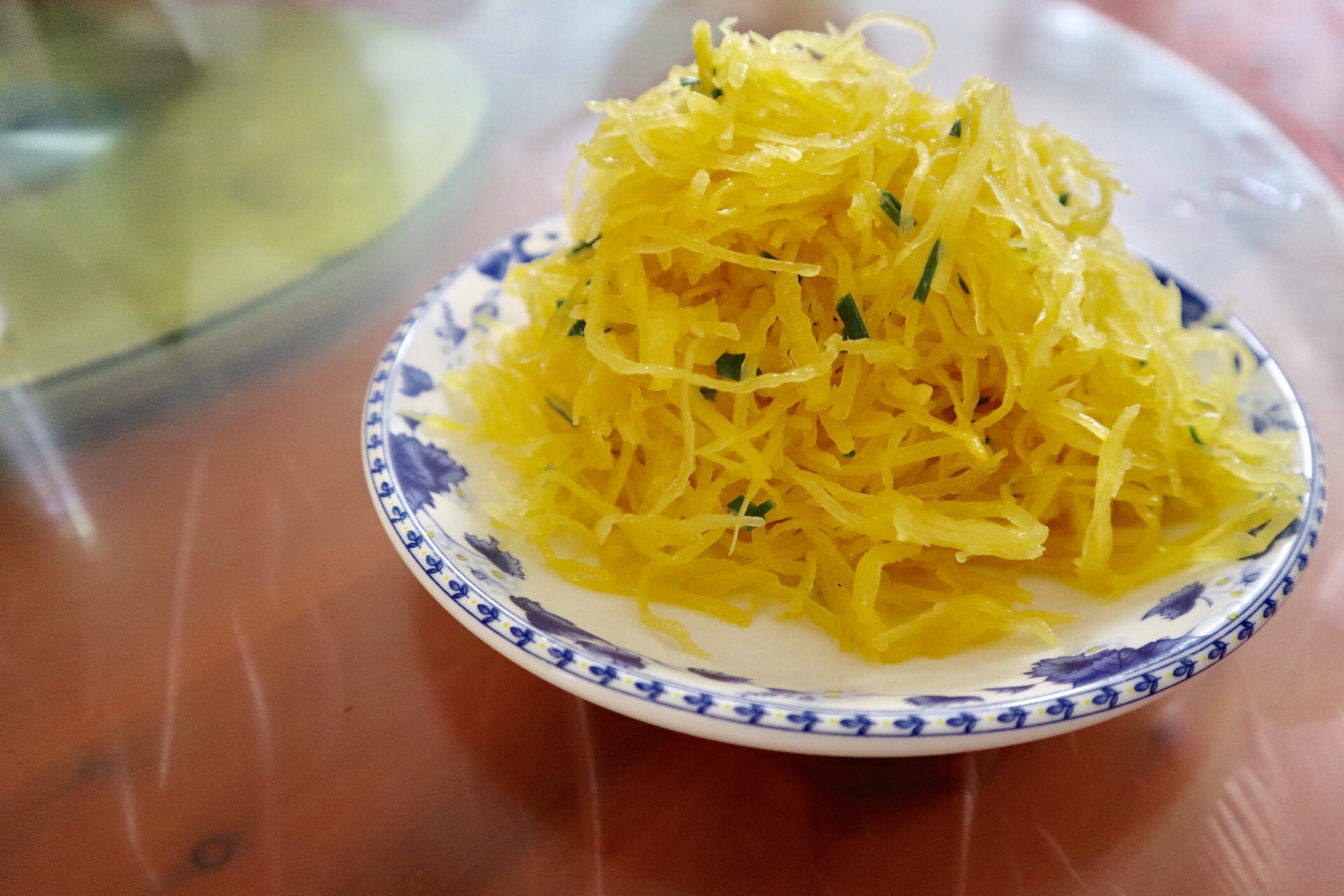 作为崇明区美食热门榜第一名的餐厅 到了崇明怎么能不打卡 提前电话预约,并告知了怕狗 店主真的细心的在本子上备注了 到店后车子直接停在院子里 凉拌金瓜丝:老妈说很久没吃到了,特地点了,口味很符合 土鸡汤:半只,四个人足够了 清蒸黄鱼:性价比高 农家蛋饺:很大只,烧的好吃 赠送了粥,很香浓