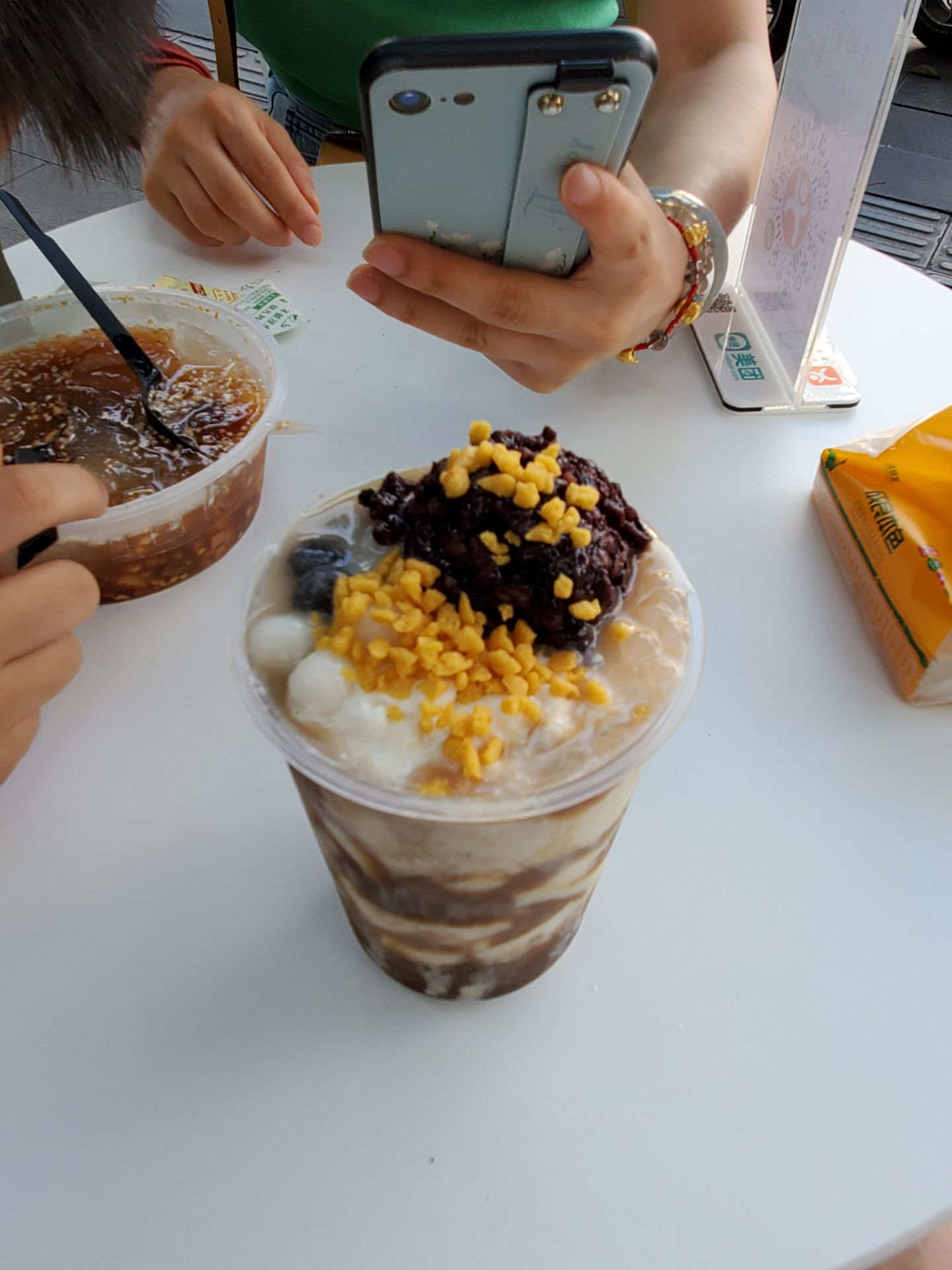 ...粑冰粉和一份白雪黑糯米冰粉,玫瑰糍粑冰粉味道很好,玫瑰味很足,冰粉一看就是手搓的,吃起来很好吃