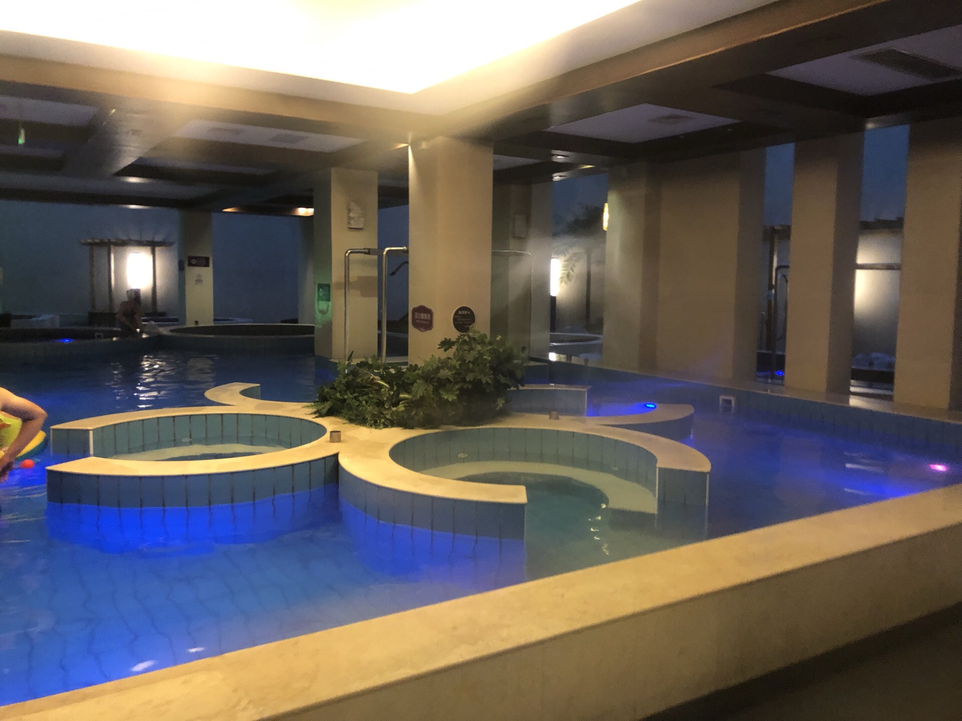 超级棒的温泉,环境,设施,都特别赞,我们是夏天来的,我想要是冬天一定会更美好。 稻香湖是个特别大的"度假村",带着娃,一定要住上2宿,都不一定能玩爽,哈哈哈哈哈哈。温泉堡是度假村中的一个"景点",我们是买的套票,住宿+温泉票,上午在大美儿童世界玩,下午去办入住,晚饭后来泡的温泉。 进去的时候前台的服务人员会给带宝宝的妈妈一个单独的手牌,我们会进入母婴专用屋,洗漱也是单独的,柜子中还准备好了大人和宝宝的拖鞋。方便,但地沟反味儿太严重,我们后来还是去的公共区域,和朋友一起洗的。 室内分为温泉池和儿童戏水池,所有的水滑梯,三岁的小盆友全部可以玩,就连粉色大滑梯,小盆友都尝试了。爱玩水的小盆友,可以自己带着一些小桶,水枪,会玩的非常开心。 屋里还有免费柠檬水?还可以免费打救生圈。池子也不少,还有石头炕,可以治治腰。 室外分为药池和水果蔬菜池,因为带着孩子,我们没去药池,蔬菜池,我们泡了黄瓜池,冬瓜池。里面还有胡萝卜,茄子,西红柿等。小盆友还挺喜欢的,一边玩水,一边捡蔬菜。 温泉水热,一定要给孩子多补水。 浴室非常之大,且每个淋浴都是单独的,配备了洗头水,沐浴露,护发素等,相当贴心了。吹风机不少于5个,还配备了微波炉,泳衣甩干机,真的是太到位了。 还有供小盆友坐着洗澡的矮喷头和石头凳,真是挺方便,贴心。 在温泉玩累,还可以换上浴袍去隔壁的海洋球池玩。里面有滑梯,拓展迷宫,蹦床,软积木等,水壶不能带进去,喝水再出来,需要穿袜子,馆里也提供一次性的,挺方便的。 特别提醒,要多带些水,夏天热啊,水不够喝。