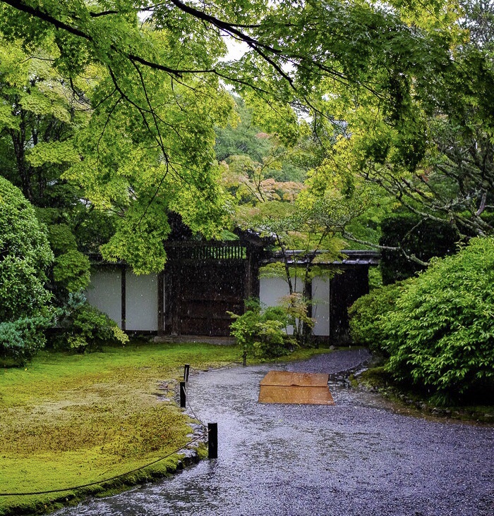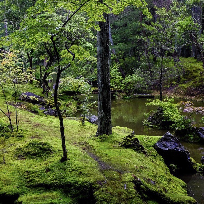 西芳寺,寺院内有120多种苔藓,所以也称苔寺。寺庙为了保护苔藓,采取完全预约制,并严格控制人数。预约方式也略复杂,需要寄一张往复明信片 (即包括寄过去的邮费和寄回来的邮费) 给寺庙,寺庙确认可以参观的日期时间,再寄回给你,而这就是门票。入寺后,参拜的第一项内容就是抄写经文。大堂里席地而坐,不由自主地就安静了下来。这里有着日本庭园美景及浓厚的禅学氛围,即使需要相对高额的参拜费用及严格的预约制度,到访苔寺的游客仍络绎不,乔布斯也是它的铁杆粉丝。