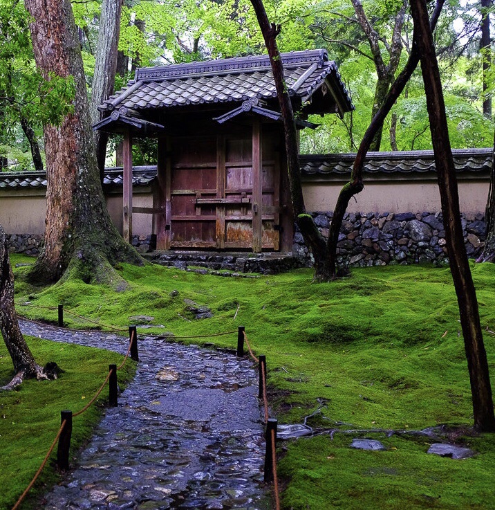 西芳寺,寺院内有120多种苔藓,所以也称苔寺。寺庙为了保护苔藓,采取完全预约制,并严格控制人数