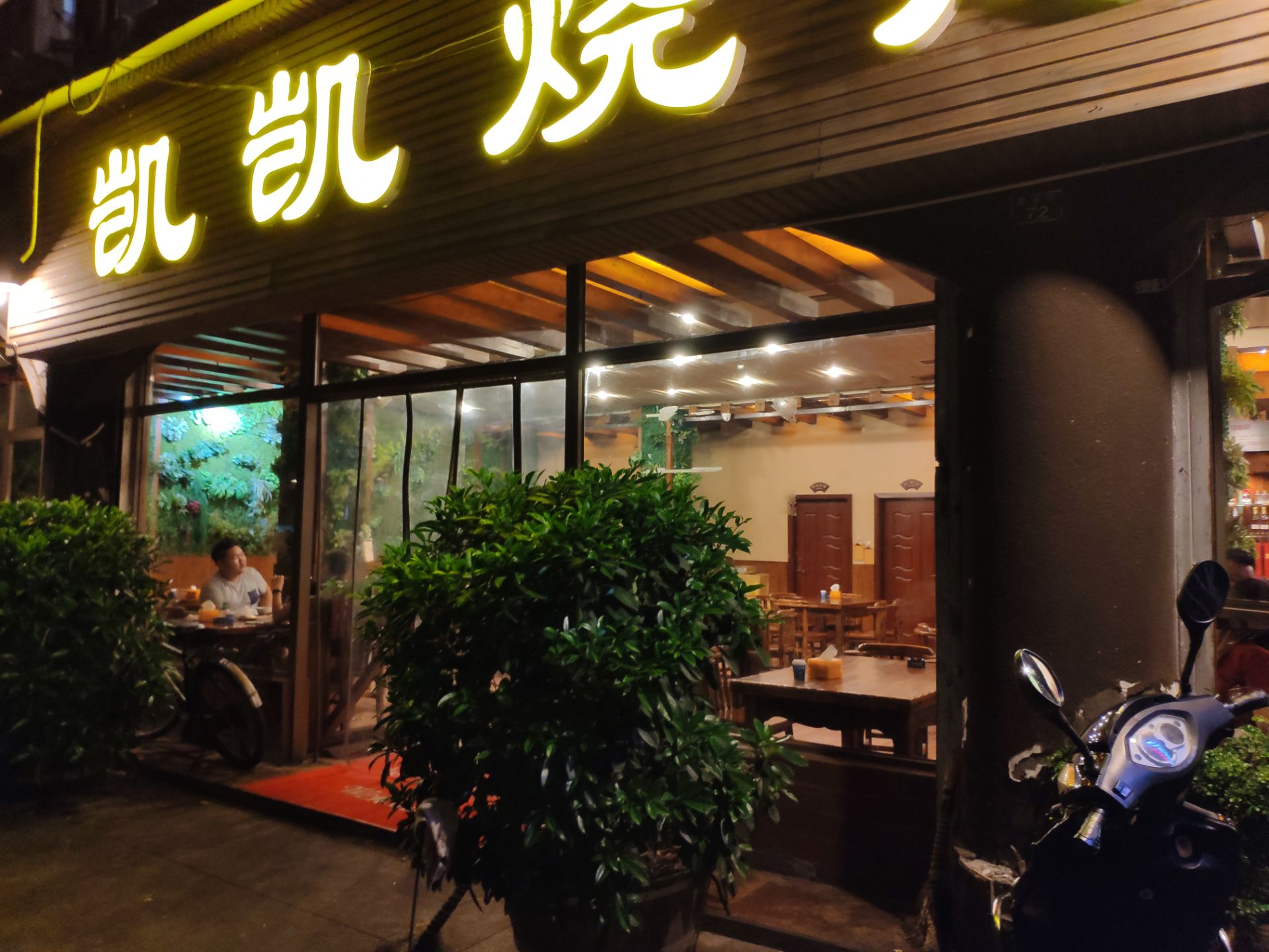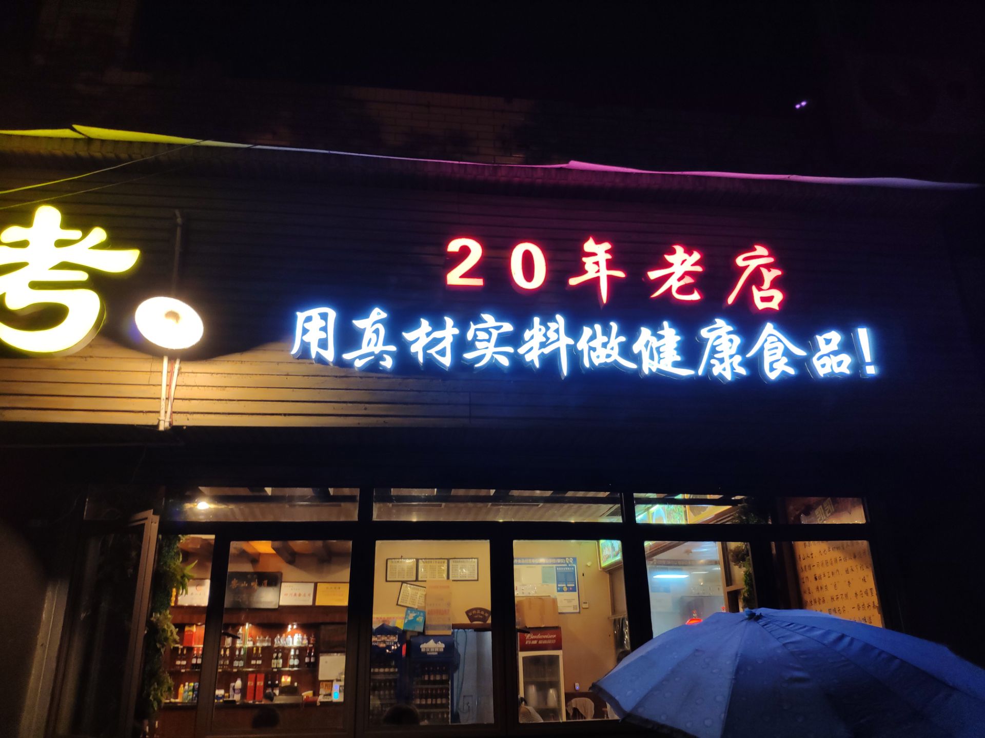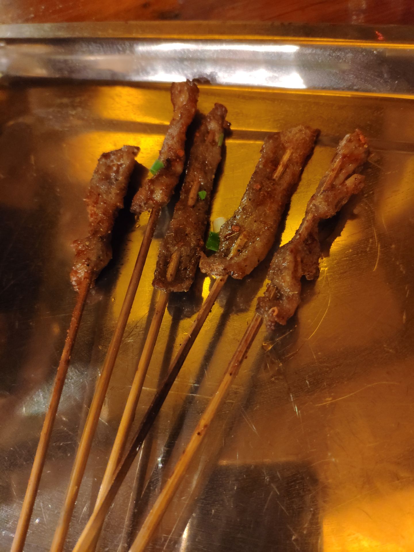 晚上12点想出来觅食,搜到附近这家烧烤似乎评价不错就走路过去。 [环境]店铺还是比较大,装修普通。 [服务]服务还行,就是烧烤必须五串起点 看网上说是多年老店,由于不饿就点了五串五花肉,五串排骨,五串韭菜。五花肉一股说不出来的味道,不香,还带肉生味。排骨也是用的肉不知道是什么肉,味道怪怪的。韭菜也是硬邦邦的,让他们再烤一下拿上来还是硬硬的。就这么几串烧烤两个人都没有吃完。 唯一可以吃的就是醪糟粉子,分量比较小。 很久没有吃过这么难吃的烧烤,有点出乎意料。建议喜欢吃烧烤的还是换一家,不要来这家踩雷。