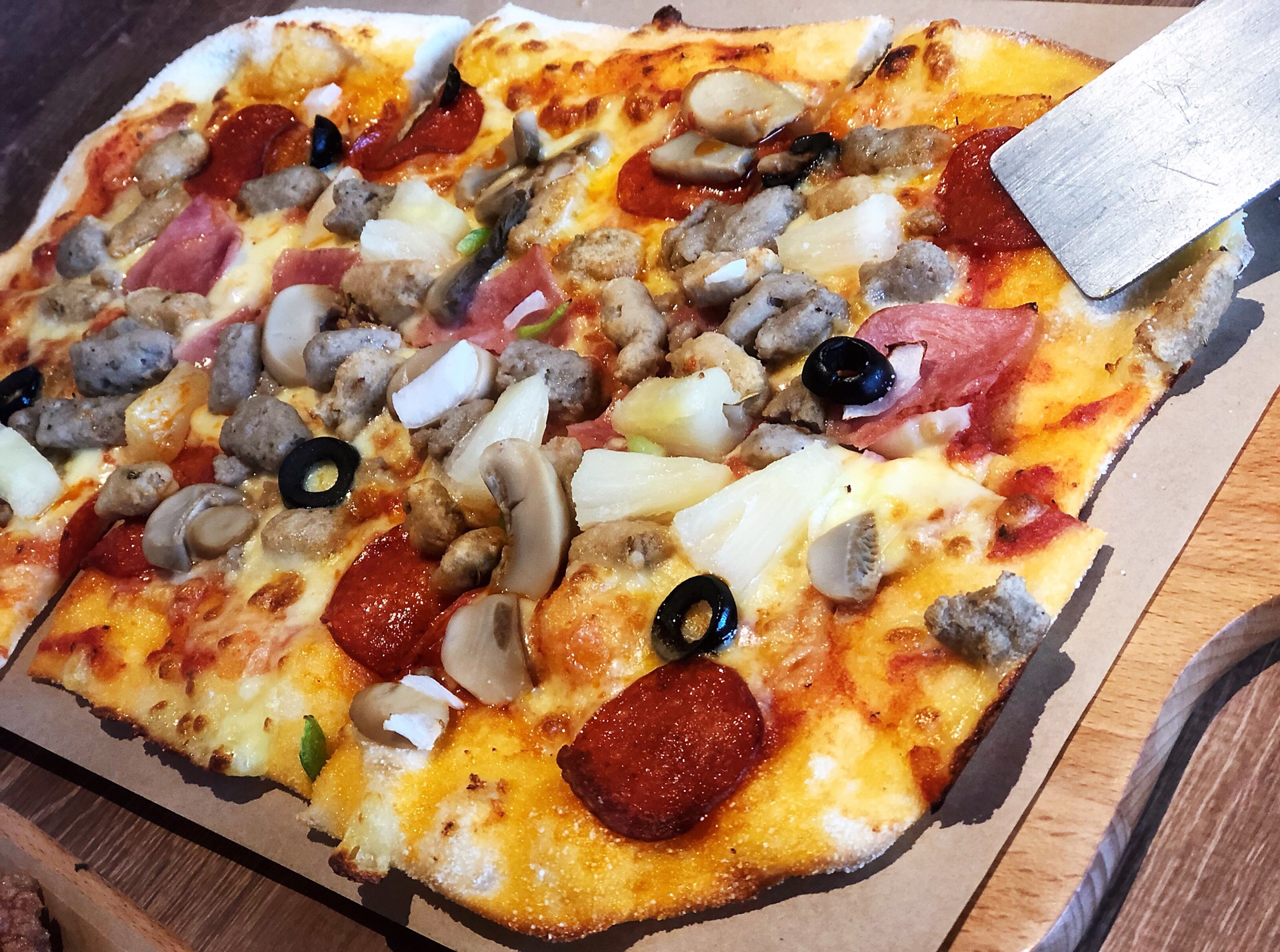 上一次去必胜客已经遥遥不知何日 那时候我应该还有学生证5折优惠呢... 印象里的必胜客并不好吃 披萨是厚厚的面皮 没有多少食材 所以对于宣传大于实际体验的必胜客 本以为一生都不会回购了呢 最近好像出了很多的新品 还时不时的有工作日优惠午餐 小伙伴说最近的必胜客变好吃了 所以一起去吃一下 周末的西安路全是带娃出行的 整个餐厅 只有一两桌没有宝宝 其余的至少一个宝宝是标配 披萨确实好吃了不少 试手拍披萨那种 面很薄 食材也挺丰富的 小吃拼盘39 感觉性价比还蛮高的 新出的饮品第二杯半价 没有图片好看 但是味道不错 蛋糕也很好吃 奶油很足 不算太腻 总体感觉必胜客的餐品有了很大的改善 以后还会继续关注的