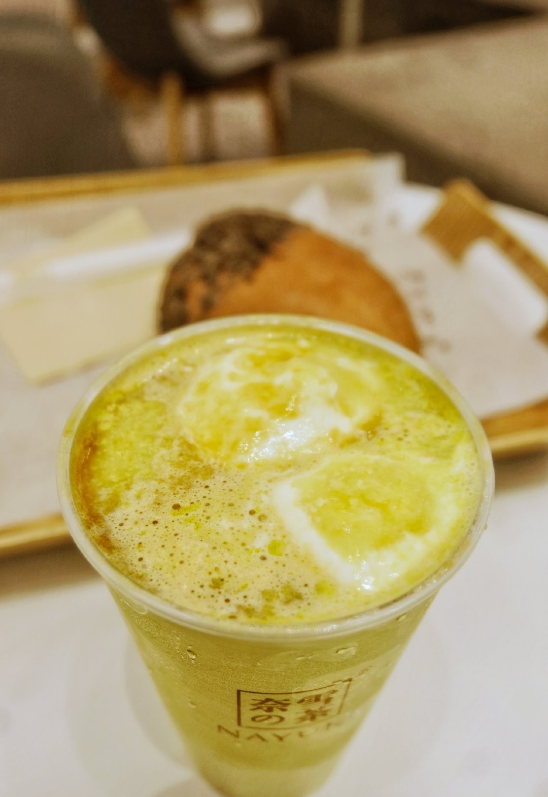 主角牛油果富含丰富蛋白质,超适合在健身的我。 两杯新品都收入囊中。【霸气冰淇淋牛油果】和春天一样,明亮又清新~新鲜嫩绿牛油果搭配茉莉毛尖茶底,淡淡茶香融入牛油果中,更加清爽。加入一颗椰子味冰淇淋,和牛油果一样绵密细腻。椰香和牛油果香气也很搭。杯底的Q弹水晶冻,滋溜一口就能吸上来。 【大咖牛油果】超吸睛的金杯,非常高级。入口先是牛油果独有的清新,再是咖啡的香醇,最后还有茉莉毛尖的缠绵。咖啡+茶+牛油果的搭配实在是妙不可言。 看到可爱的【芝士金菠萝】就挪不开眼了,菠萝果肉提升咀嚼感,芝士酱滋润果肉,清新中带有奶香。 奈雪の茶 南京东路830号第一百货商业中心B馆1楼