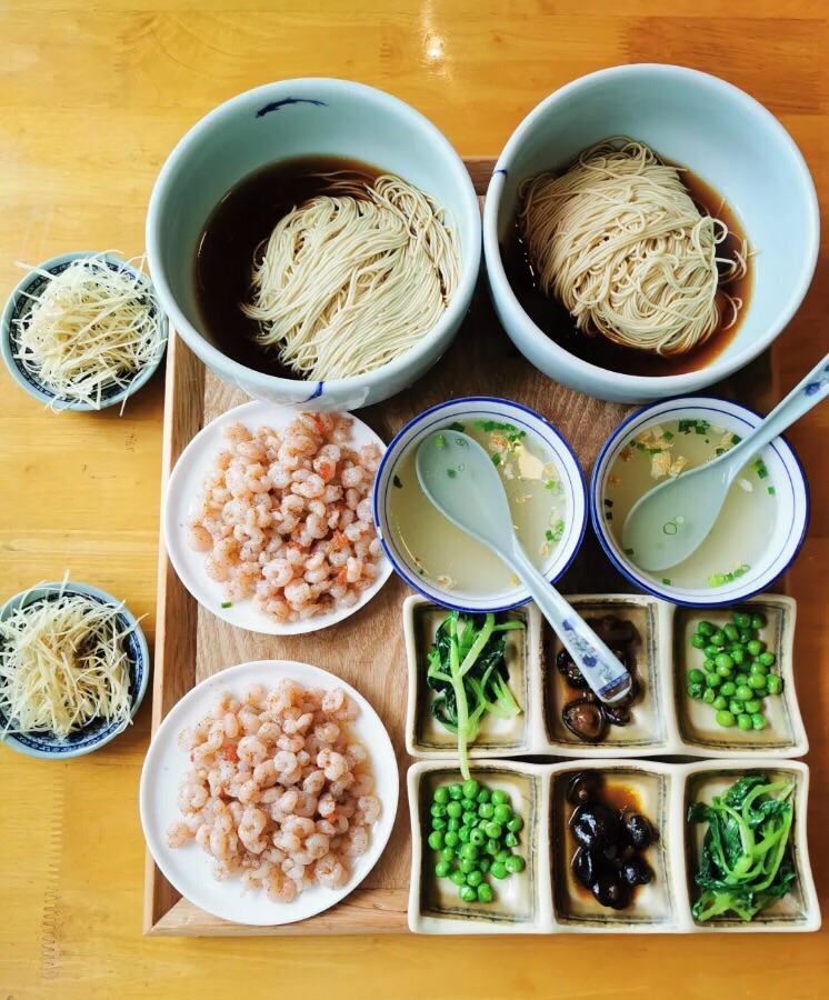这家最有名的就是三虾面了。紧汤拌面,既不会冲淡虾的鲜美,也不会因为少了汤而使面不够顺滑这家最有名的就是三虾面了。满满当当一份三虾浇头,虾仁嫩、虾籽鲜;虾脑香;紧汤拌面,既不会冲淡虾的鲜美,也不会因为少了汤而使面不够顺滑;一盞素茶,一碟姜丝,三样清爽小菜,