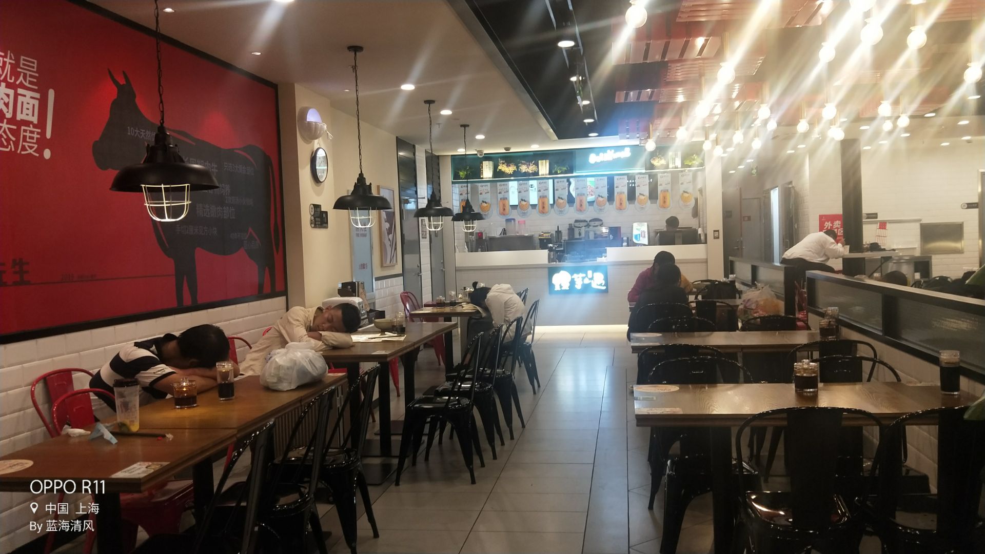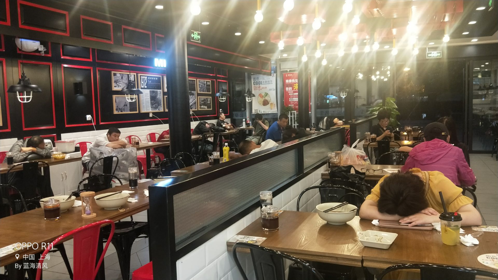 里面可以充电比较方便,晚上赶火车的也有在这趴着休息或者给手机充电的,夜里点餐等开锅大概需要1个小时