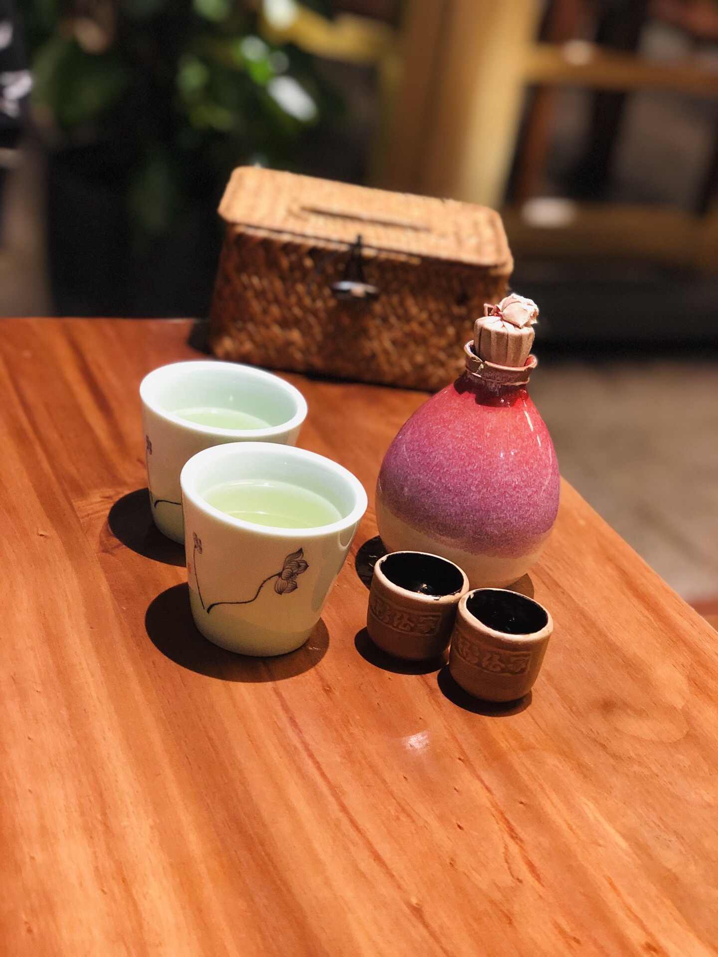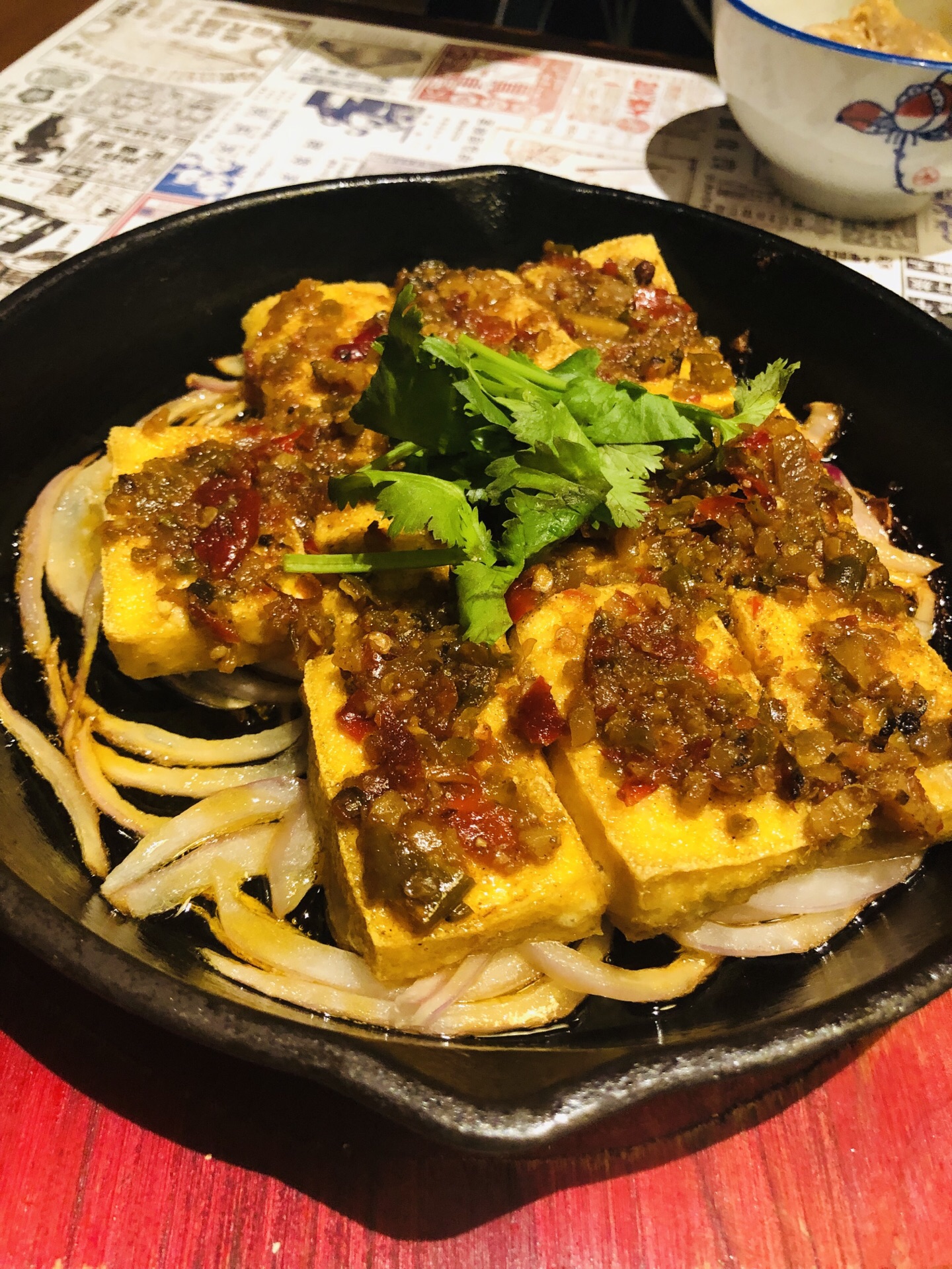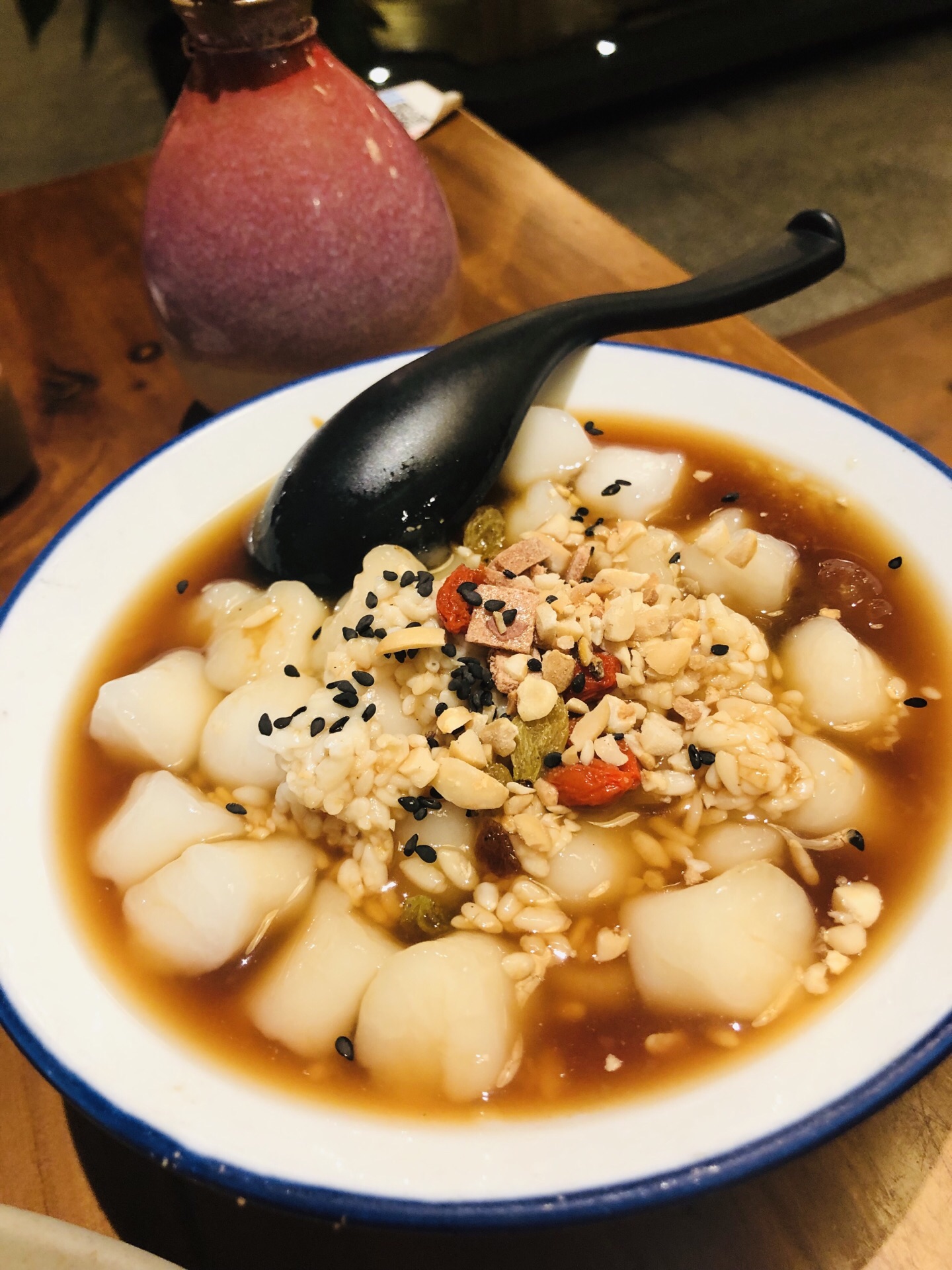 去的太早了,店门刚开,服务员还在备菜,店内空调冻人,会主动提供wifi密码,店内音乐很喜欢,抒情为主,中式装修带有些许江湖气息,环境还算挺别致的。 【桃花酿】带有一点点酒味的饮料吧,味道很香,杯子小小只,适合劈情操,口味的话还真的不能算是酒类。 【冰汤圆】自从前一天吃了冰汤圆之后,变得不可自拔,哪儿哪儿就要点上一份。冰冰甜甜非常解油腻。 【面香新喉】黄喉炒的很入味,虽然满盆子都是配料,底部都是面条,但是味道是真的很好,面条也非常劲道,点了这道菜的人可以不用点主食,就是底部的油了一点。 【鲜椒蹄花】蹄花很糯,微微辣,因为自己去的时间比较早,如果晚些时候去蹄花应该味道更好,更酥烂。 【花蛤】最爱的一道菜,在上海真的吃不到这种口味的花蛤,原材料新鲜,各个几乎都没有沙,肉质爆满,炒的味道也刚刚好。 【淋汁豆腐】重庆的豆腐真的是味好美,豆香味十足,豆腐上面的佐料较多,会有些许的麻,但是完全不影响食用。 【红糖糍粑】糍粑很糯,外表面酥脆,价格非常便宜。 两个人吃这一桌子菜吃到撑,性价比很高,建议来食。