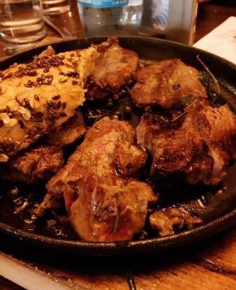我知道爸爸的客厅是什么样子的,那是一个按手风琴的按钮,还有一些威士忌,哈哈哈。这是一个非常好的小地方,藏在一个小院子里,不要犯我们所犯的错误,走到你面前,向左拐,走到街角,那是爸爸的招牌餐馆。你需要预订,如果你想晚点,但我们6点去了,他们给了我们一张桌子,让我们在晚上9点之前放弃,但那是很多时间,但确实很忙。食物是完全煮熟的,我有肋骨,如果我是诚实的,那只是一点点,但味道很好,很有趣。友好的服务,食物是很好的。